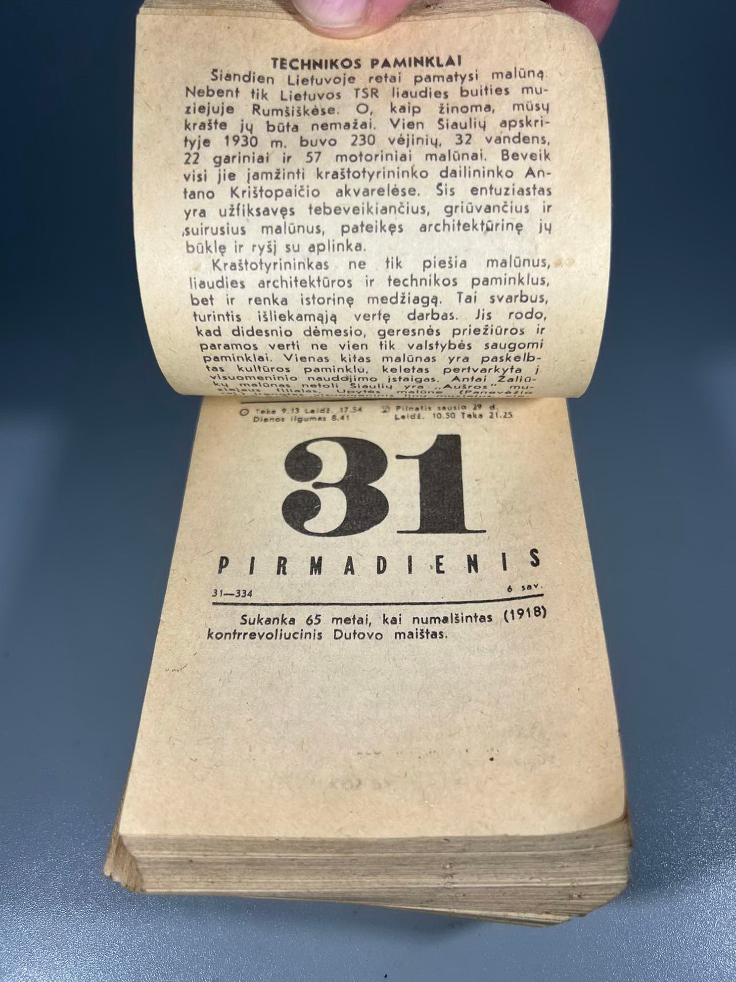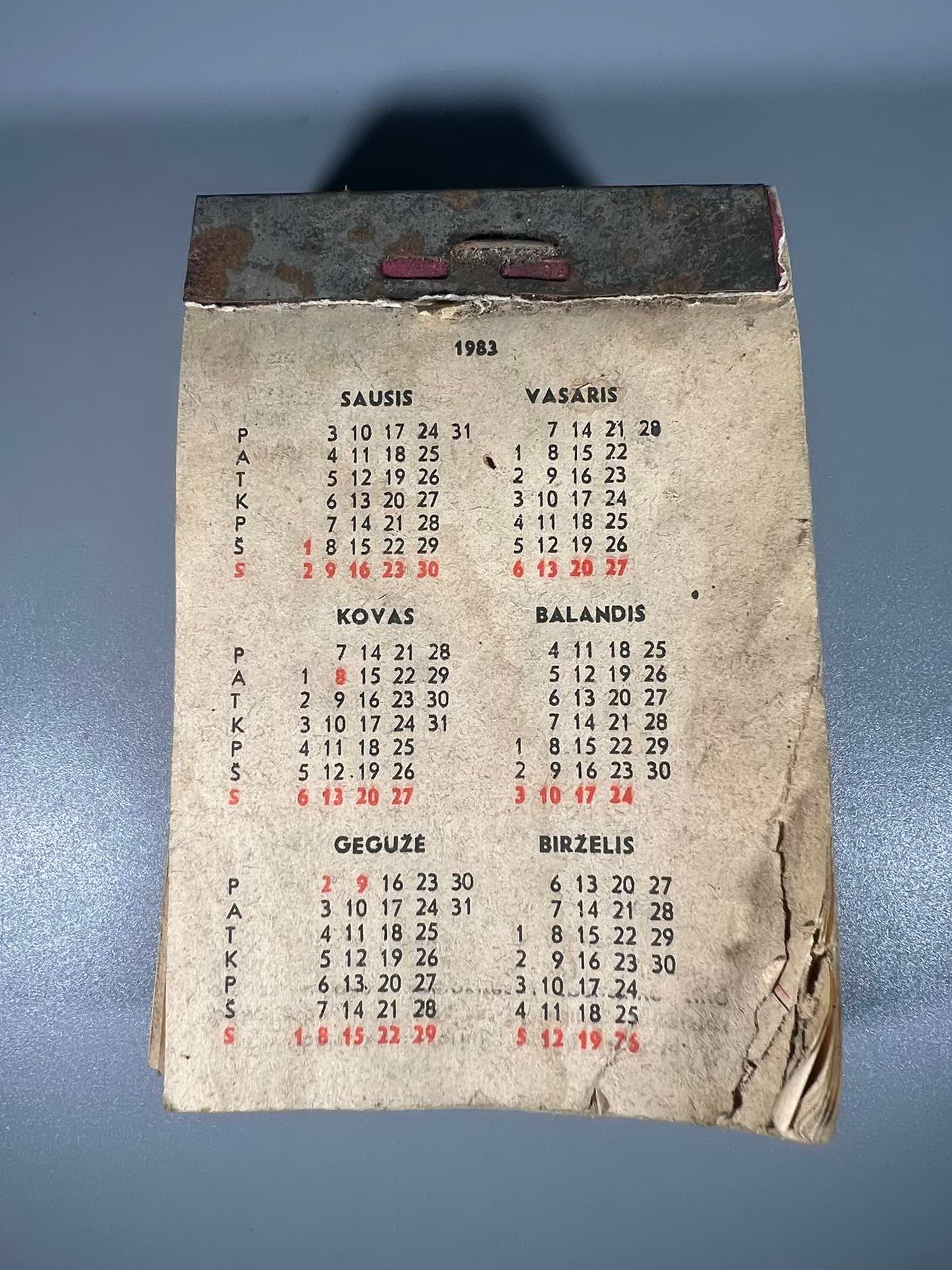 Kalendorius 1983 m. sieninis, pakabinamas, plėšomais lapeliais lietuviškas, sovietinis, tarybinių laikų. Kaina 16