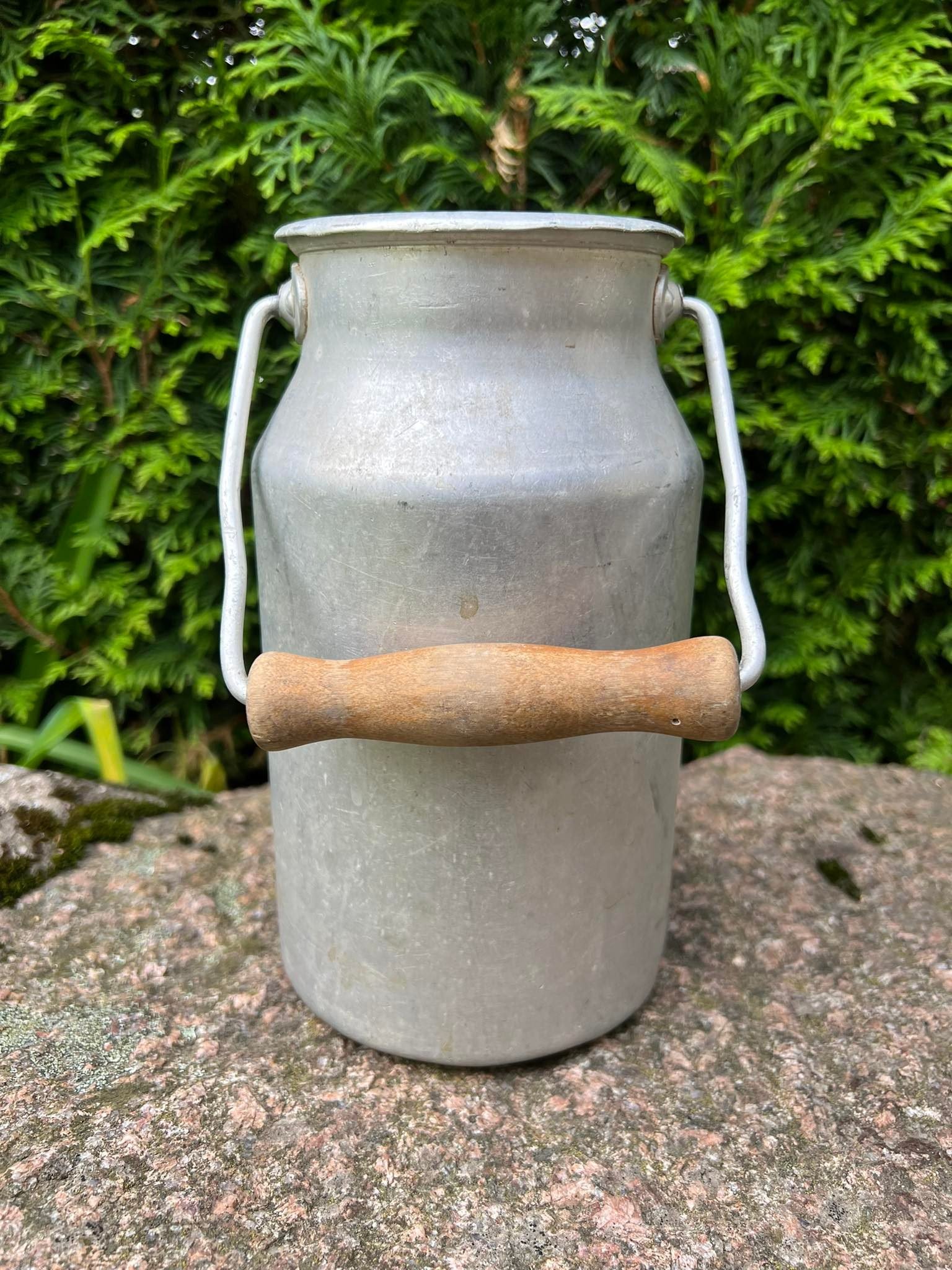 Kaniukas aliuminis nedidelis tarybinis, sovietinių laikų. Aukštis be rankenos 22 cm. Kaina 13