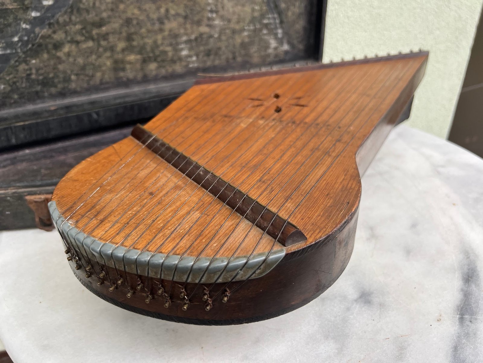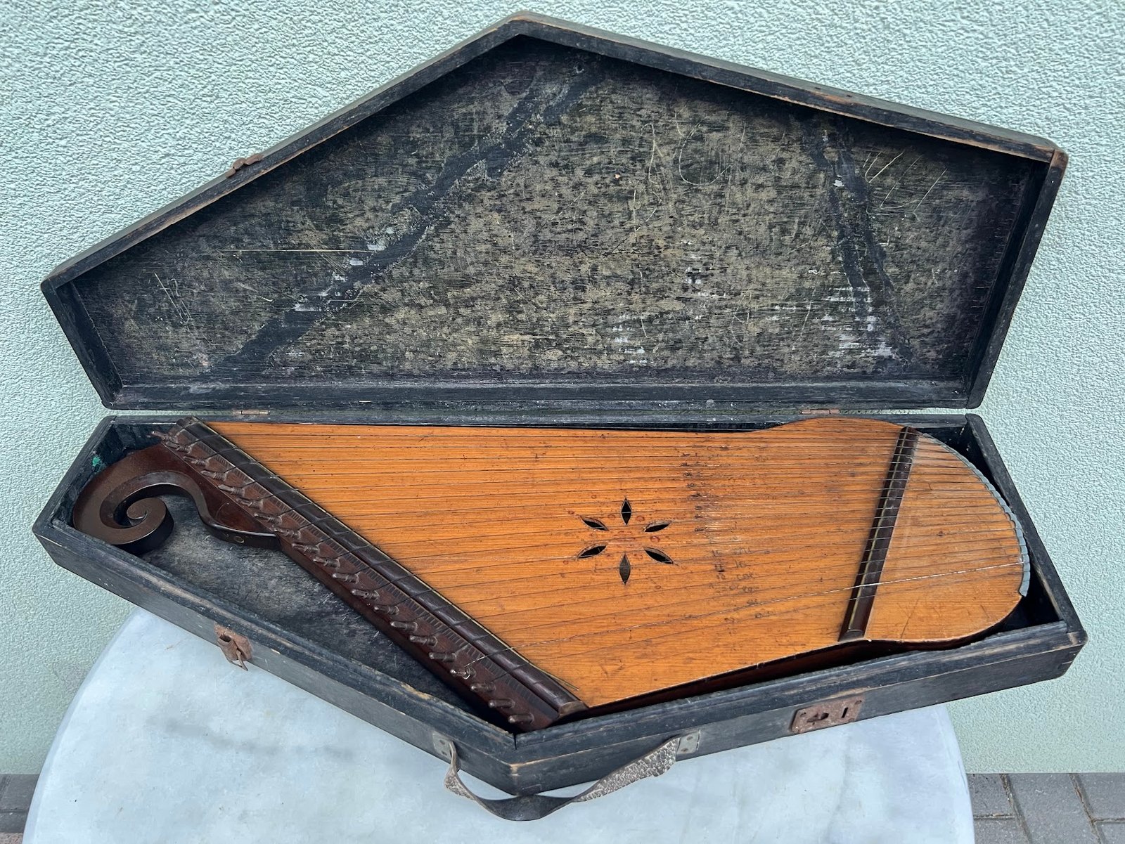 Kanklės su dėklu, antikvarinės, lietuviškos, žemaitiškos, tarpukario laikų. 1920-1940 m. Kaina 638