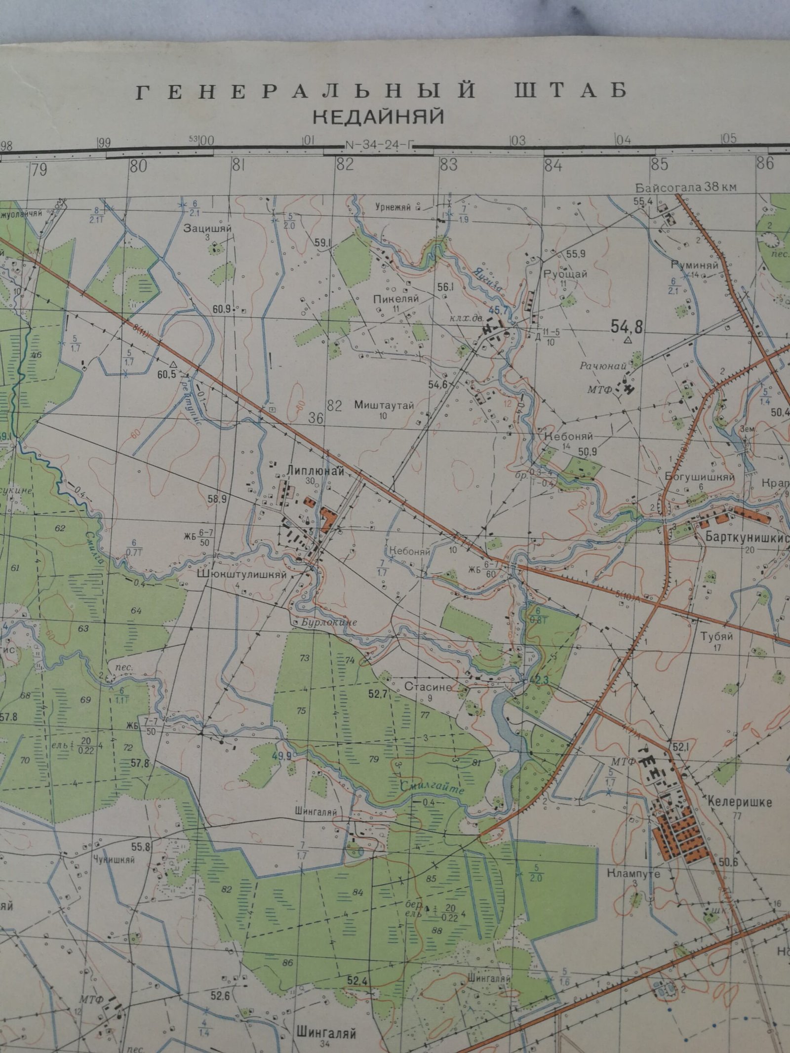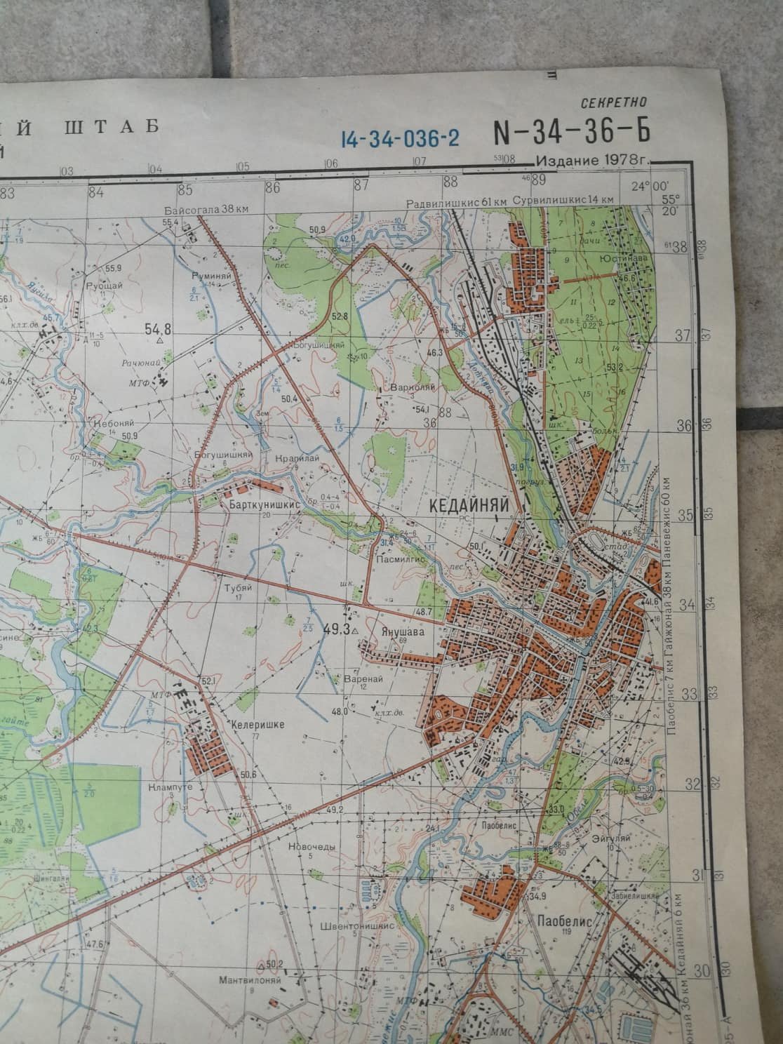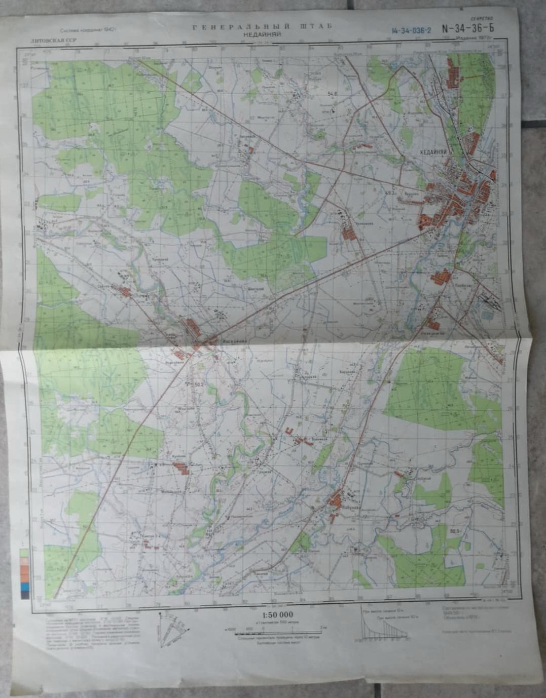 Kėdainiai (Lithuania), top secret edition 1978. Sheet size: 36 cm. x 44 cm., in Russian.