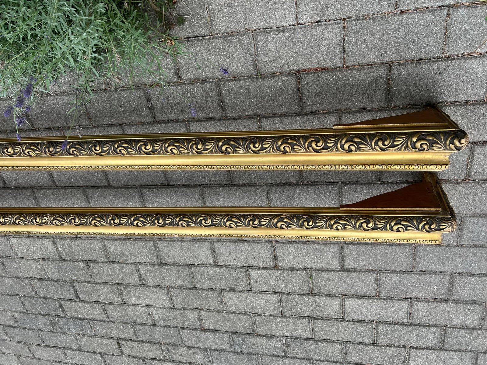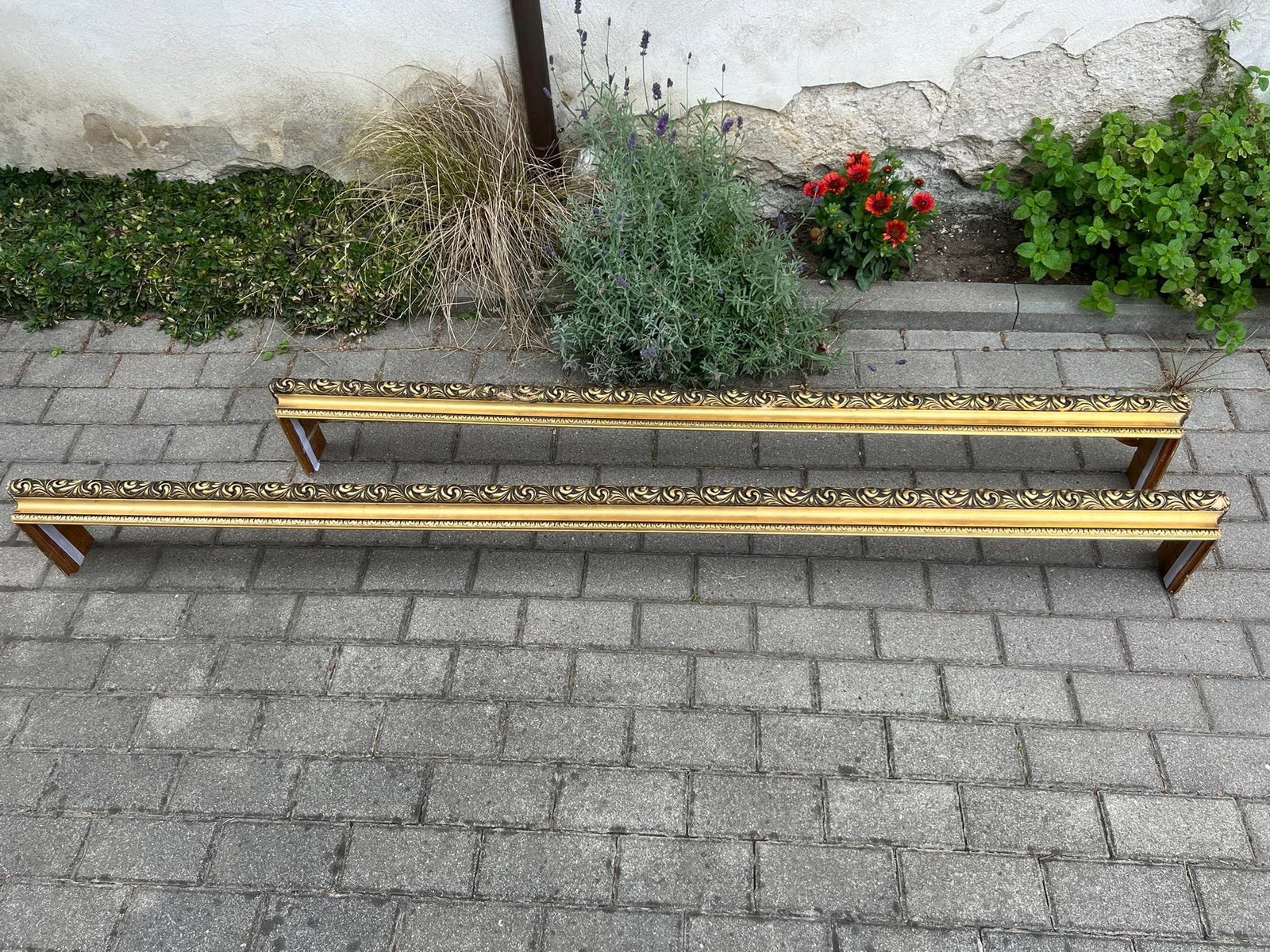 Karnizai mediniai puošti gipsu, auksavimu. 2 vnt. Kainos