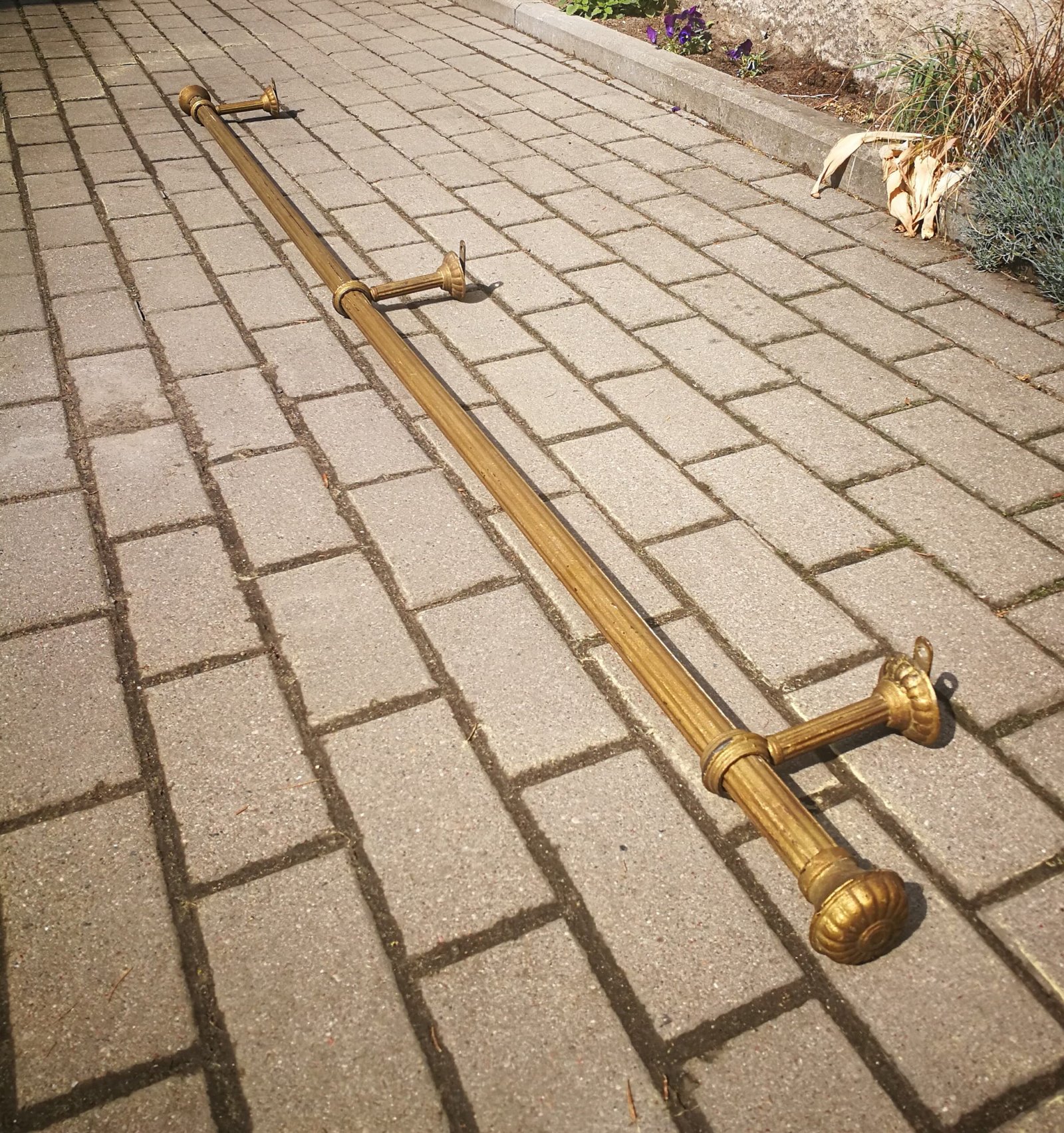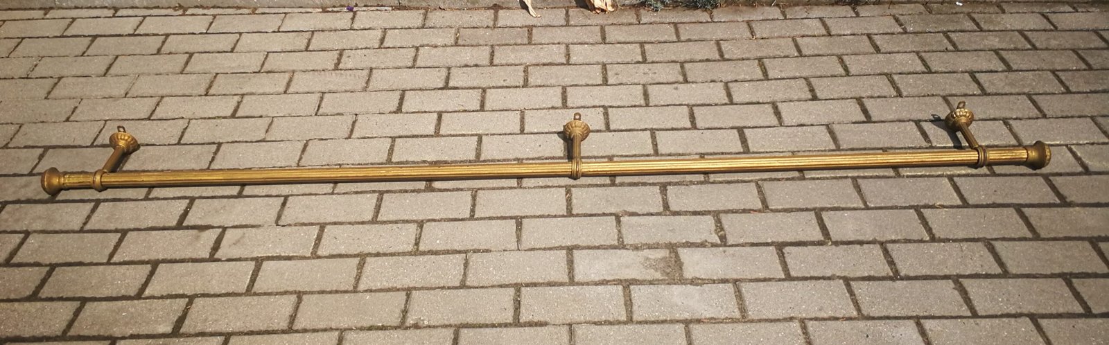 Karnizas užuolaidoms antikvarinis žalvarinis smetoniškas. Kaunas. Ilgis 215 cm. Kaina 122
