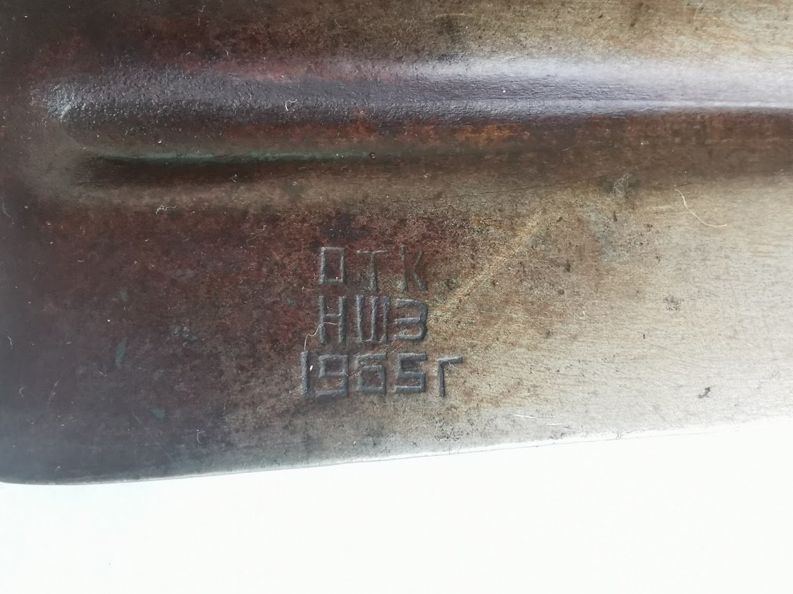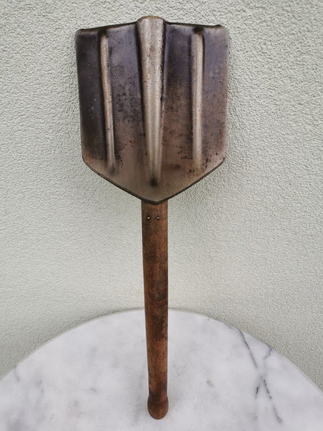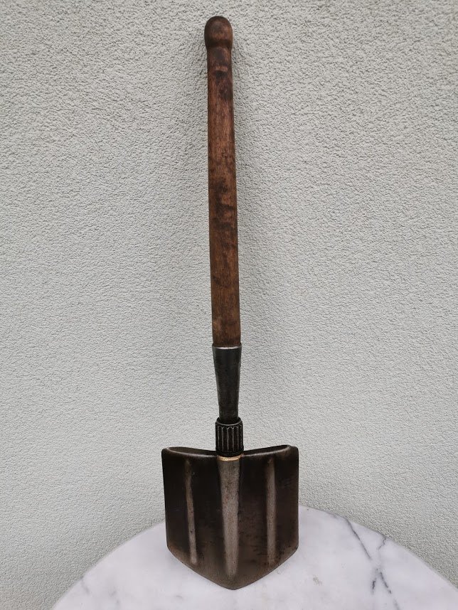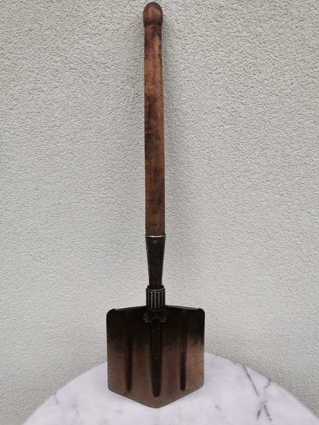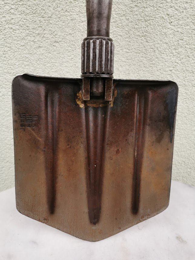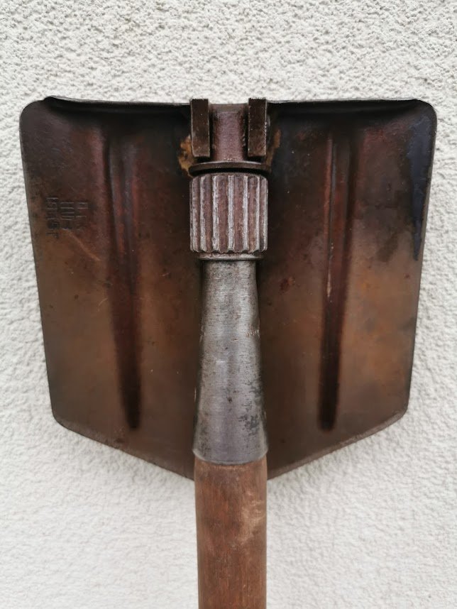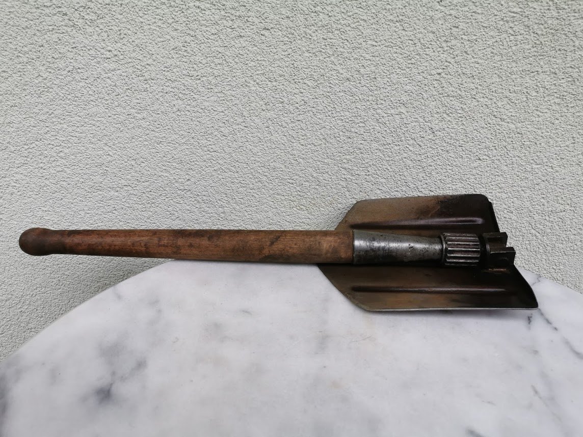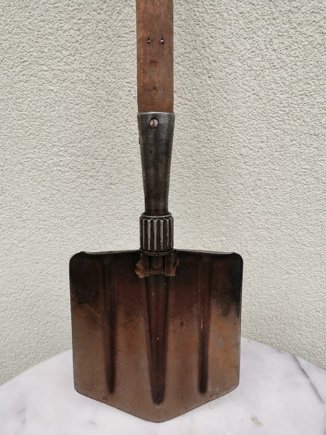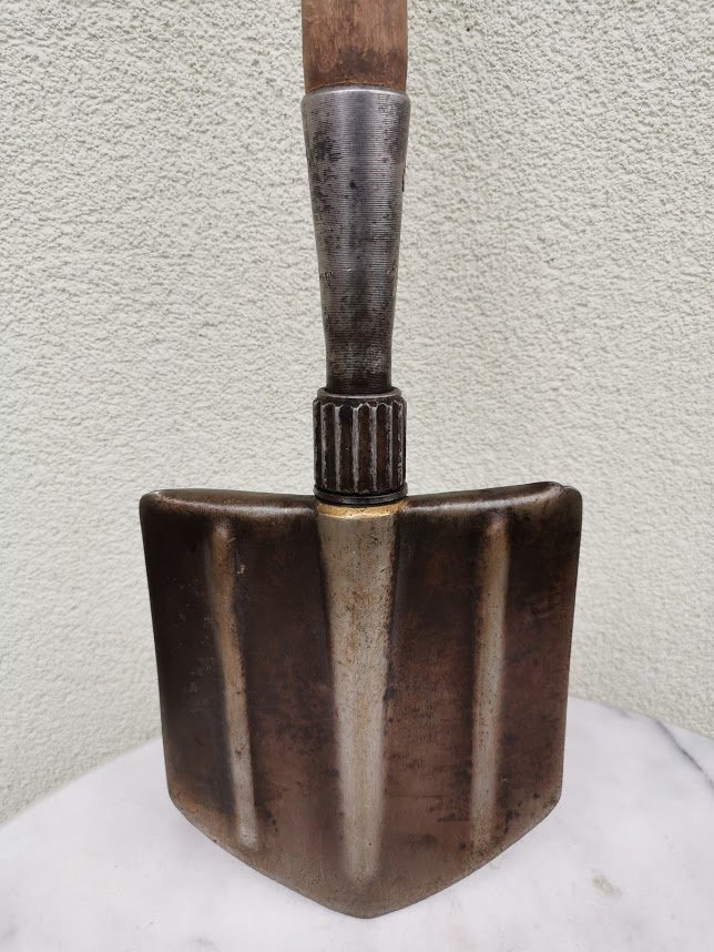 Kastuvėlis desantininkų sulankstomas, tarybinis, 1965 m. Visas ikgis 70 cm., sulenkto ilgis 50 cm. Kaina 52