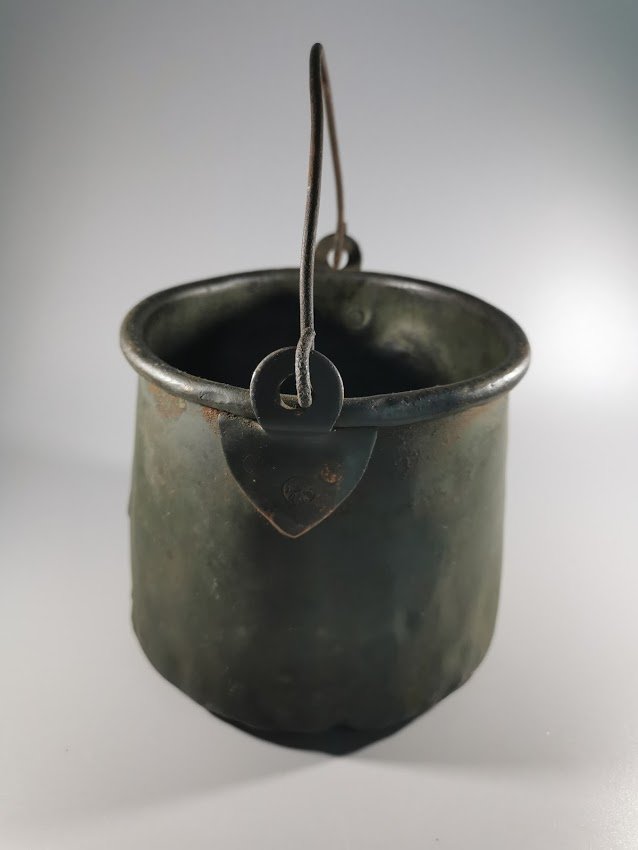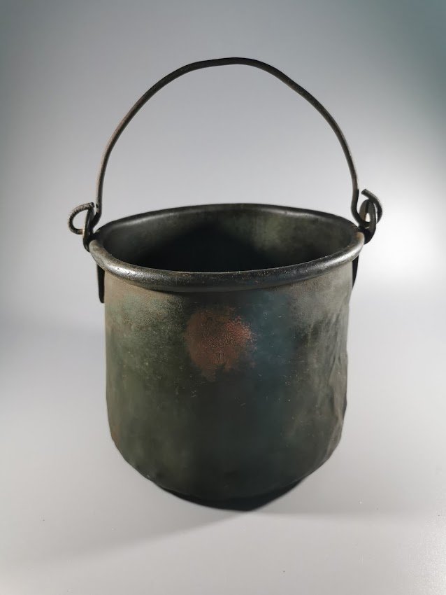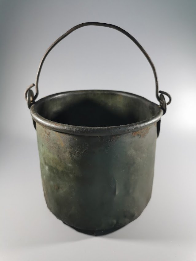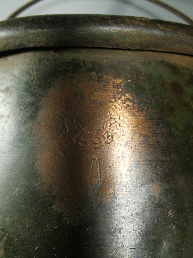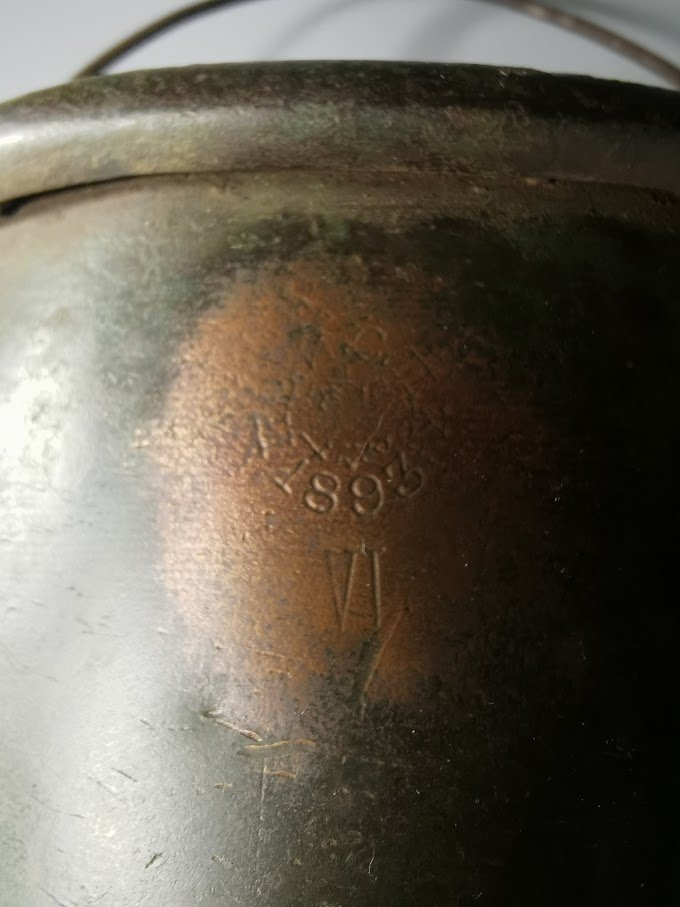 Katiliukas carinės Rusijos Imperijos laikų, varinis, kariškas. 1893 m. Aukštis 14, skersmuo 15 cm. Kiauras. Talpa 2 ltr. Kaina 153
