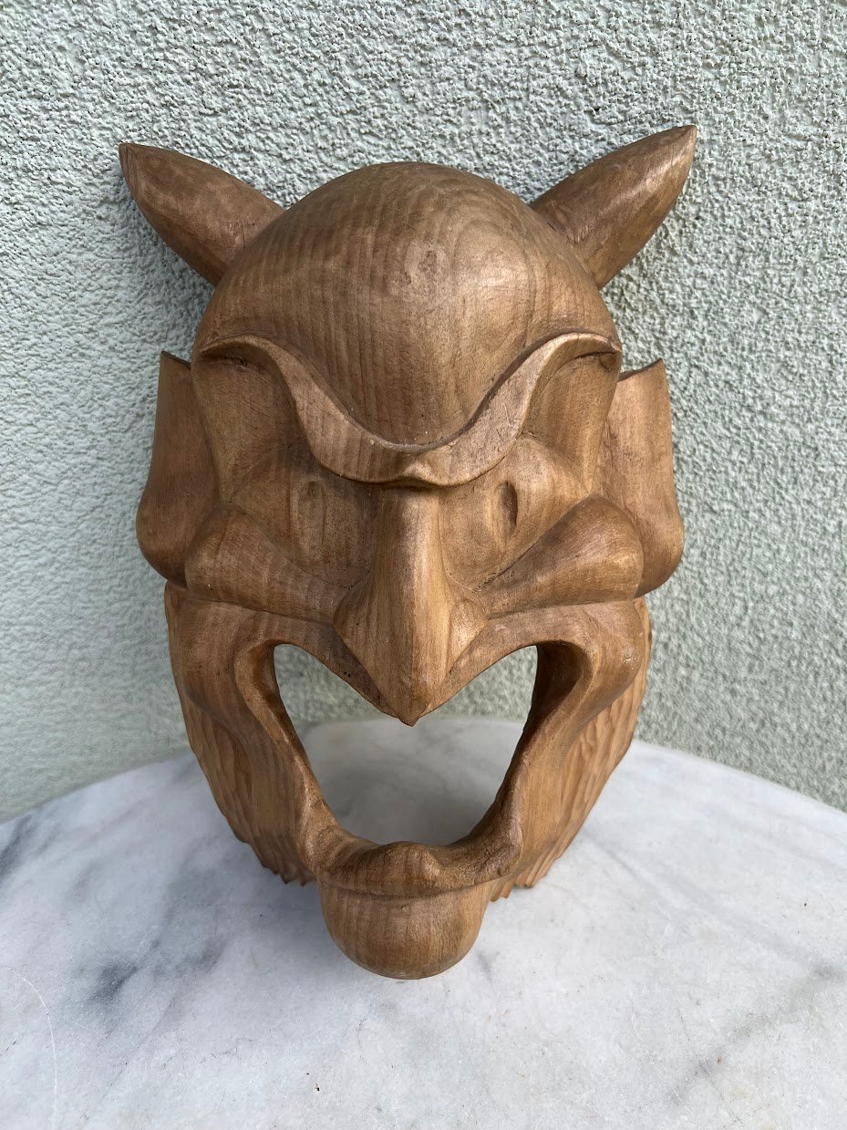 Kaukė Velnias, medinė, drožinėta, lietuviška. Kaina 63