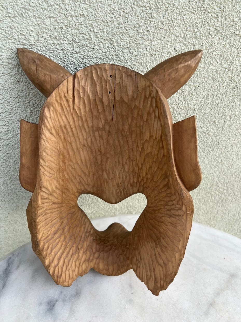 Kaukė Velnias, medinė, drožinėta, lietuviška. Aukštis 28, plotis 20 cm. Kaina 63