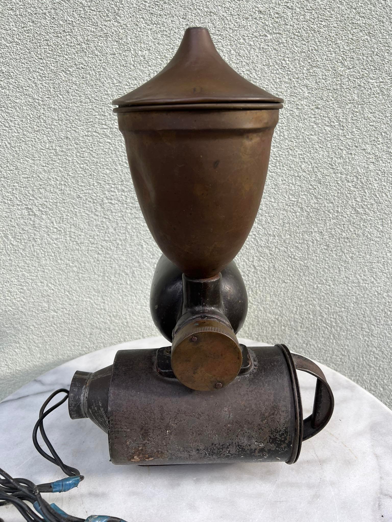 Kavamalė elektrinė, kavos malūnas Elka Werke Hamburg antikvarinis, tarpukario laikų iš Minties rato g. Žaliakalnyje. Svoris 9 kg. Aukštis 48, ilgis 30, plotis 3 cm. Kaina 528