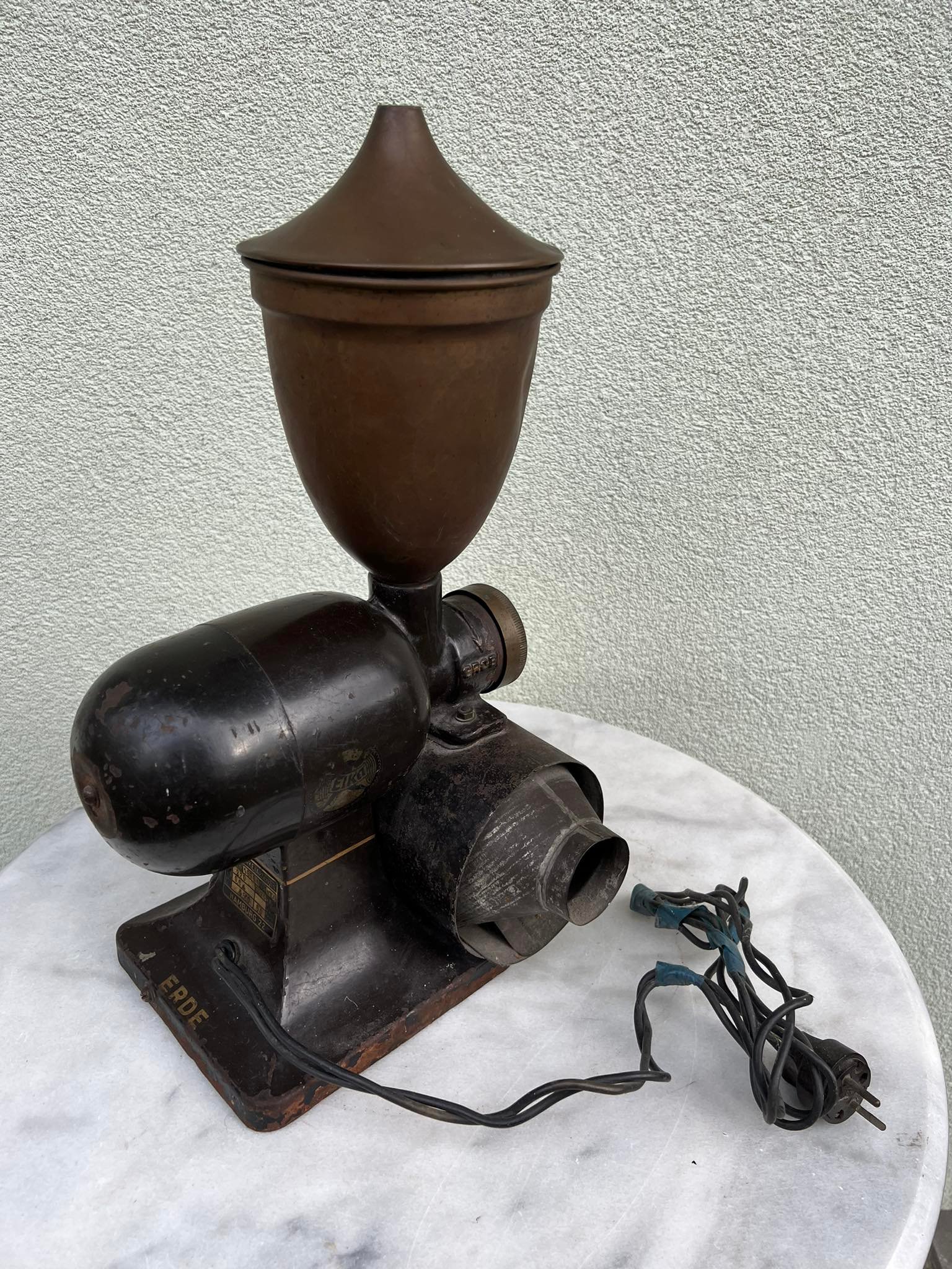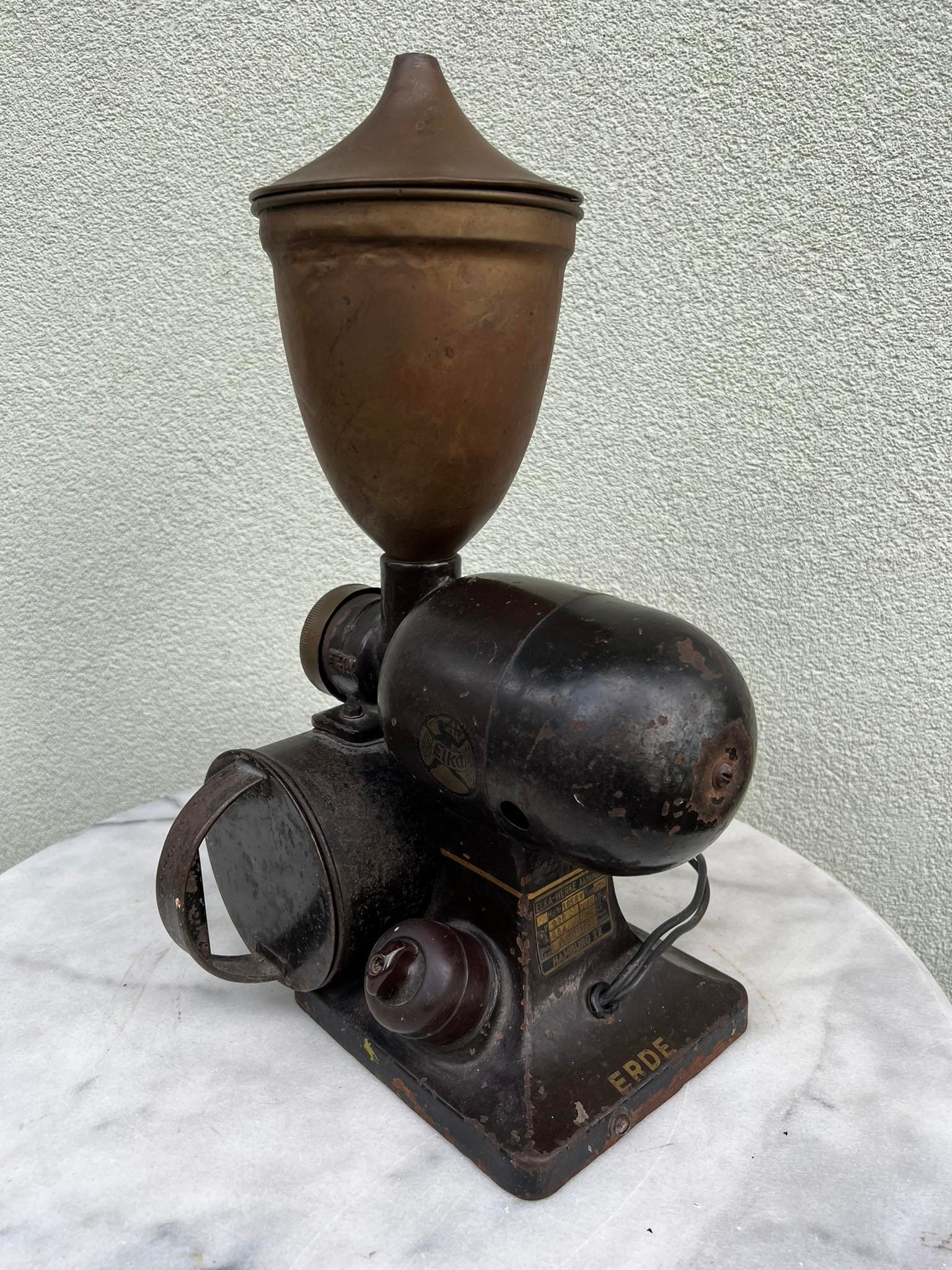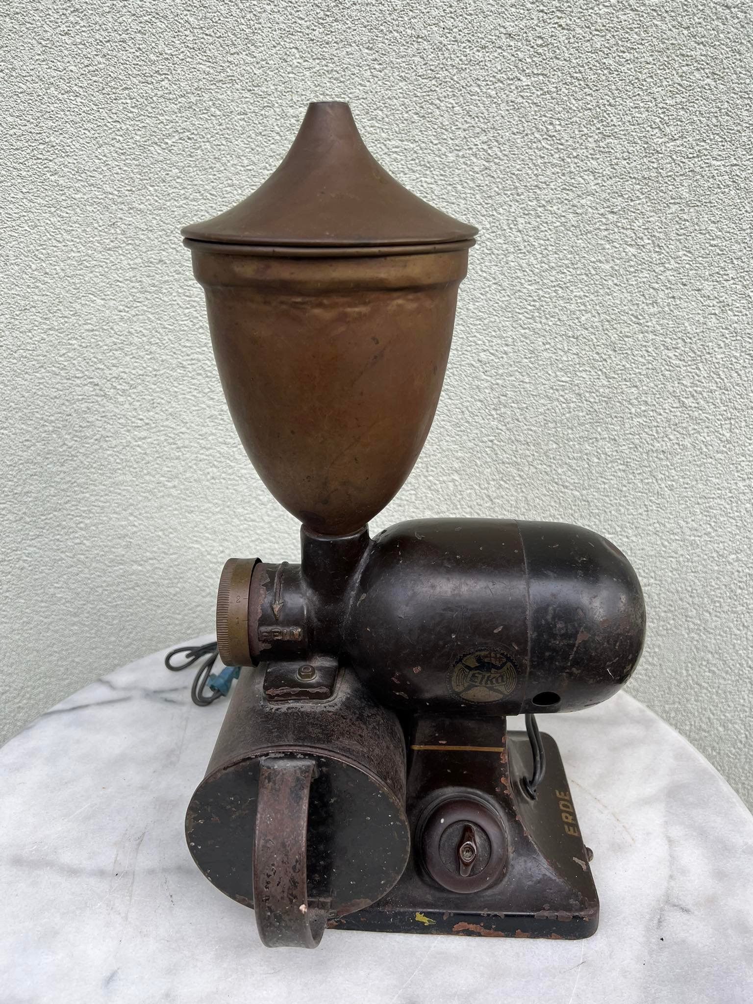 Kavamalė elektrinė, kavos malūnas Elka Werke Hamburg antikvarinis, tarpukario laikų iš Minties rato g. Žaliakalnyje. Svoris 9 kg. Kaina 528