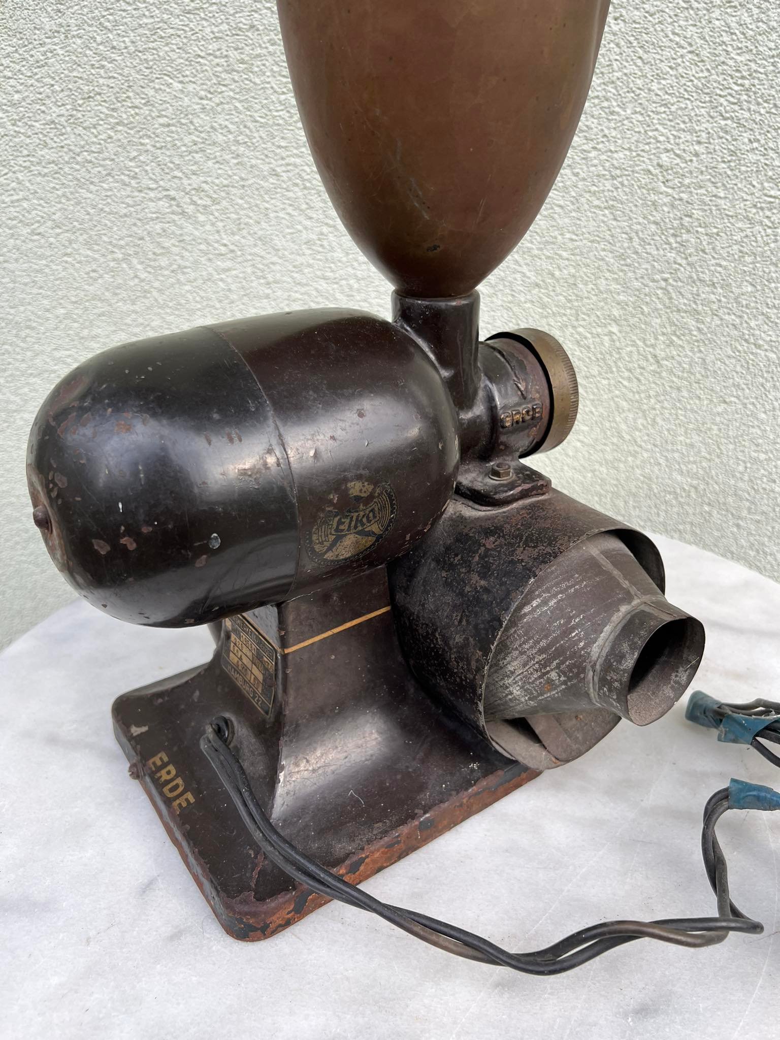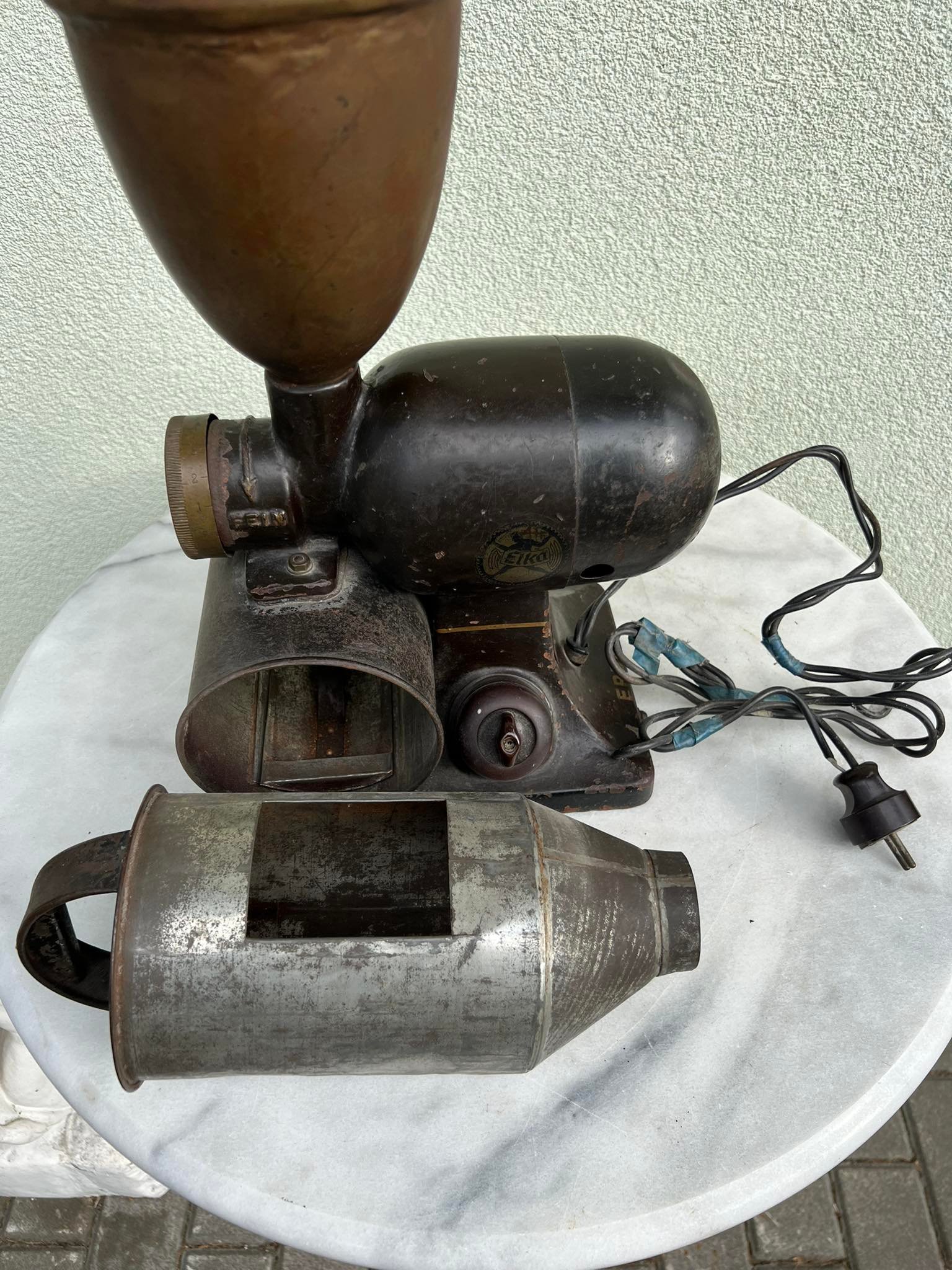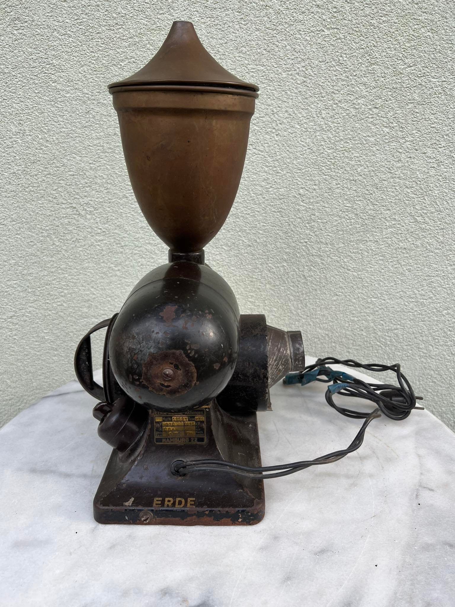Kavamalė elektrinė, kavos malūnas Elka Werke Hamburg antikvarinis, tarpukario laikų iš Minties rato g. Žaliakalnyje. Svoris 9 kg. Kaina 528