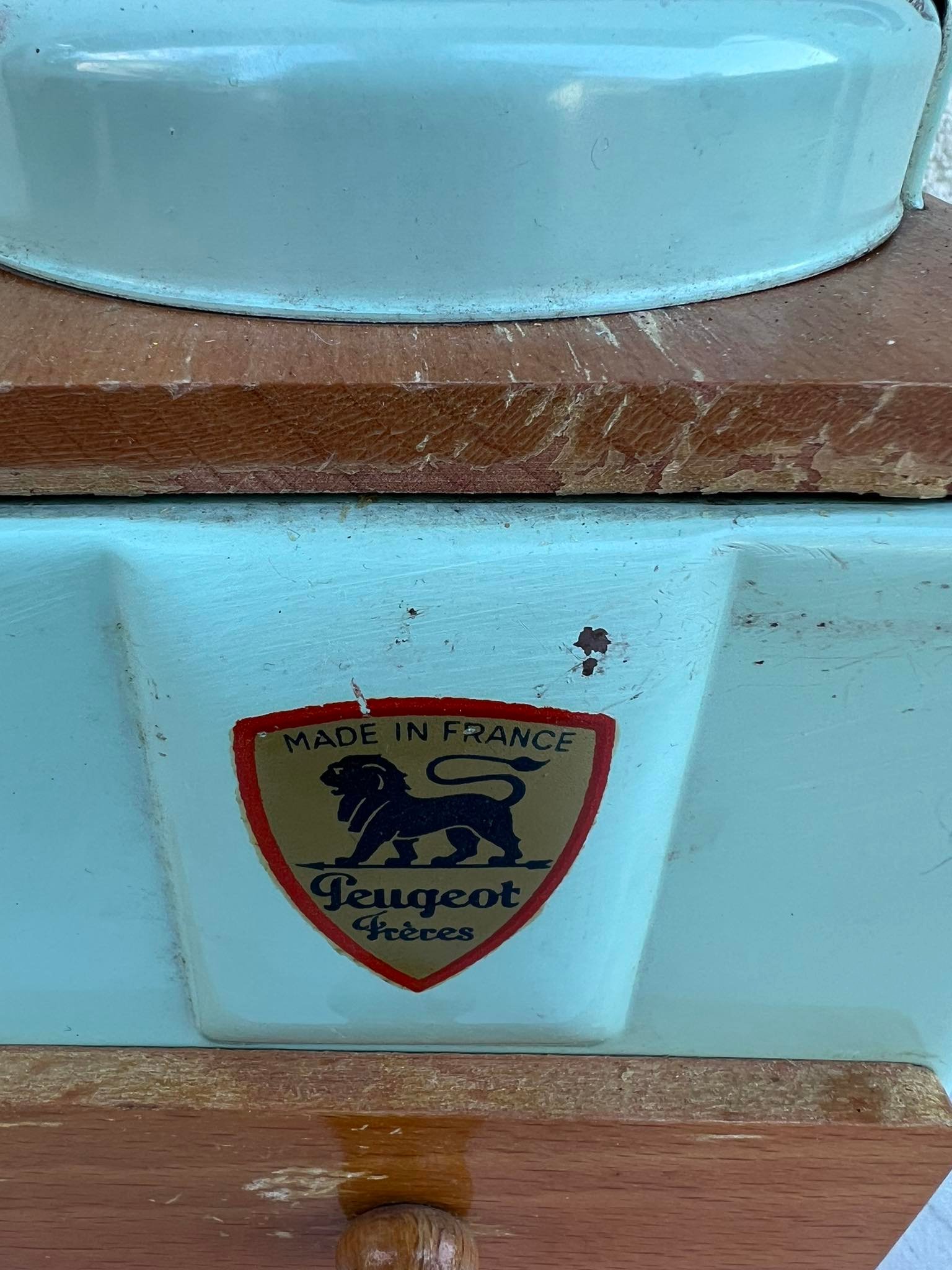Kavamalė PEUGEOT FRERES, vintažinė, skardinė, žalios spalvos, prancūziška. Kaina 68