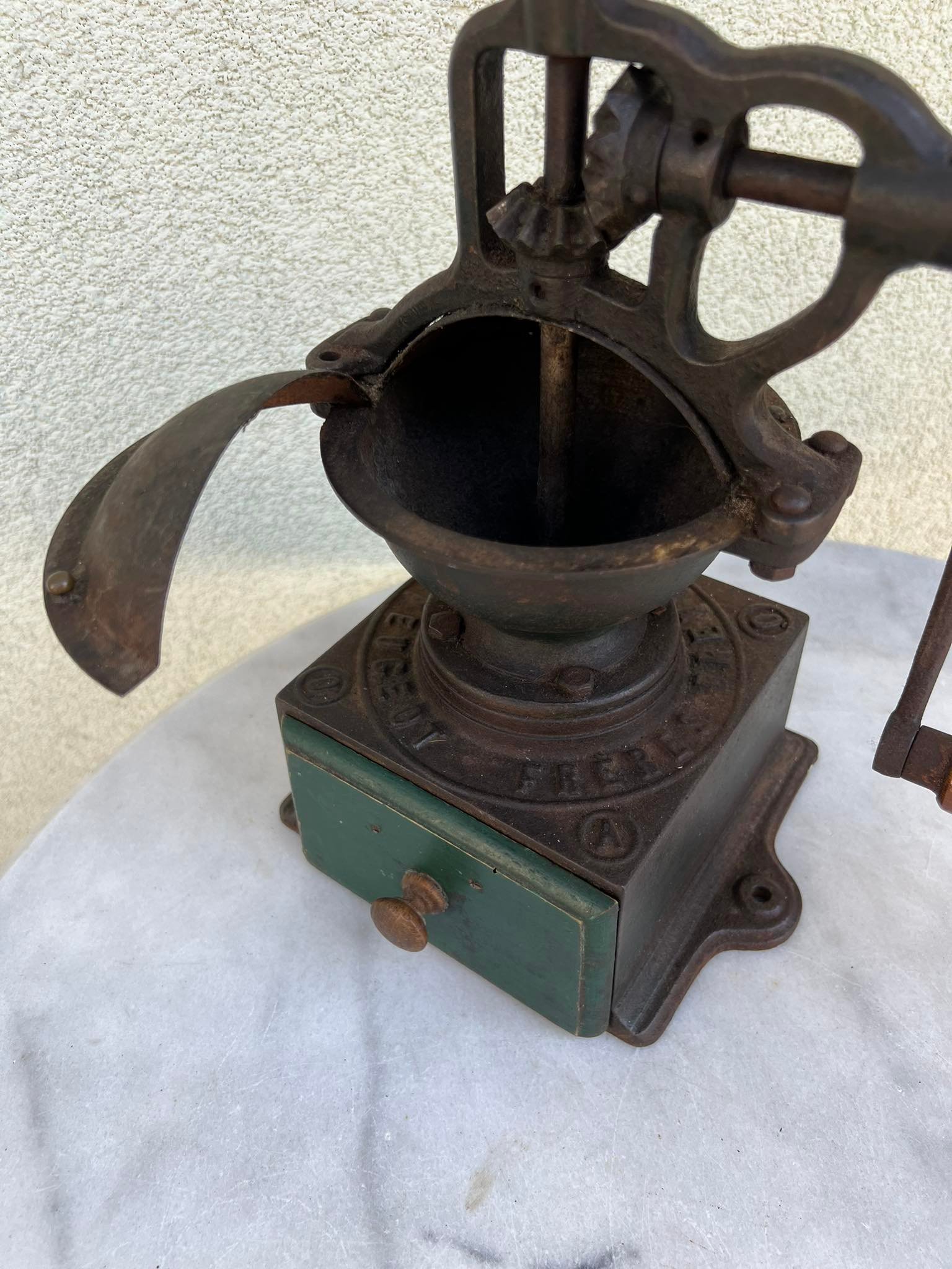Kavamalė PEUGEOT stambi antikvarinė ketaus, špižinė, prancūziška. Svoris 3,5 kg. Kaina 148