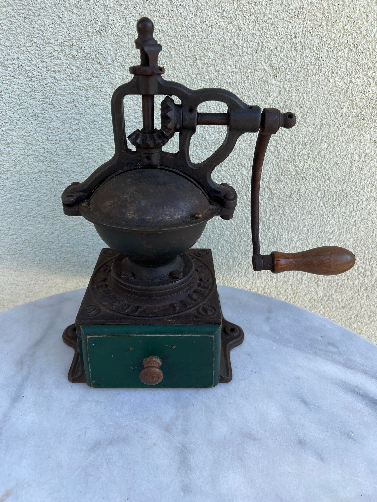 Kavamalė PEUGEOT stambi antikvarinė ketaus, špižinė, prancūziška. Svoris 3,5 kg. Aukštis 30 cm. Kaina 148