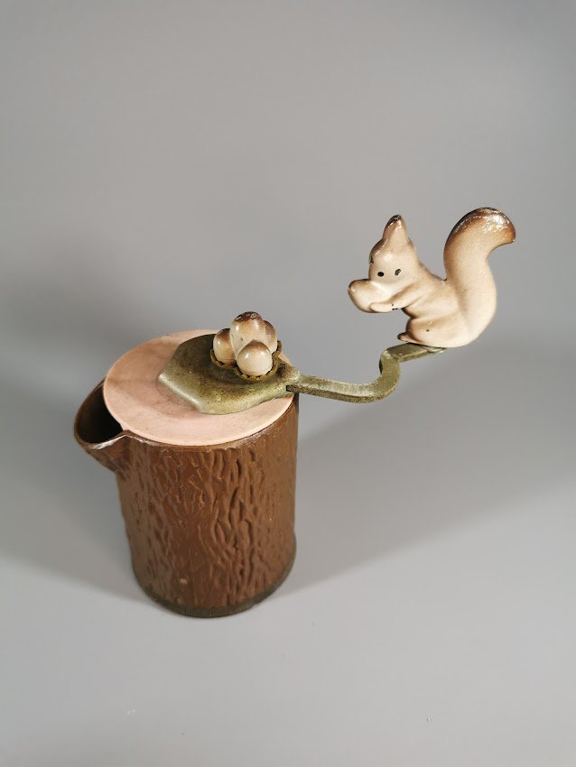 Kavamalė, pipirmalė, malūnėlis antikvarinis Voverė. Metalinė, atlenkiama rankena. Veikianti. Būklė labai gera. Aukštis 14, skersmuo 6,5 cm. Kaina 57