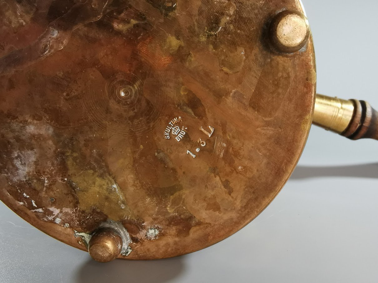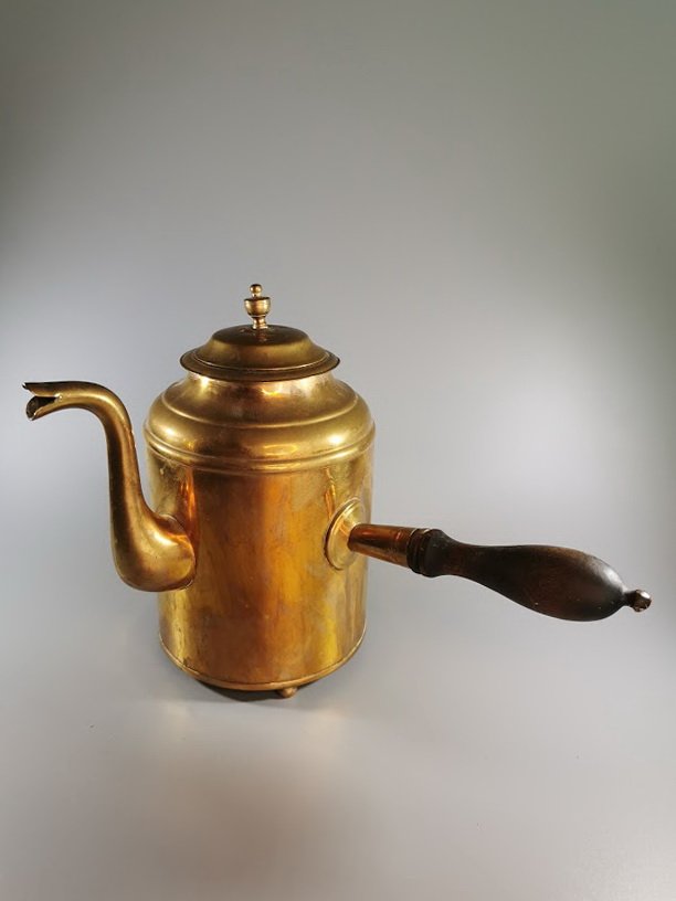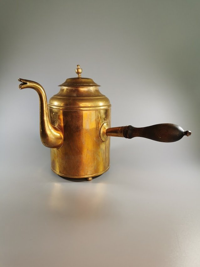 Kavinukas varinis su rankena, antikvarinis. Talpa 1,3 ltr. Aukštis 20 cm. Kaina 43
