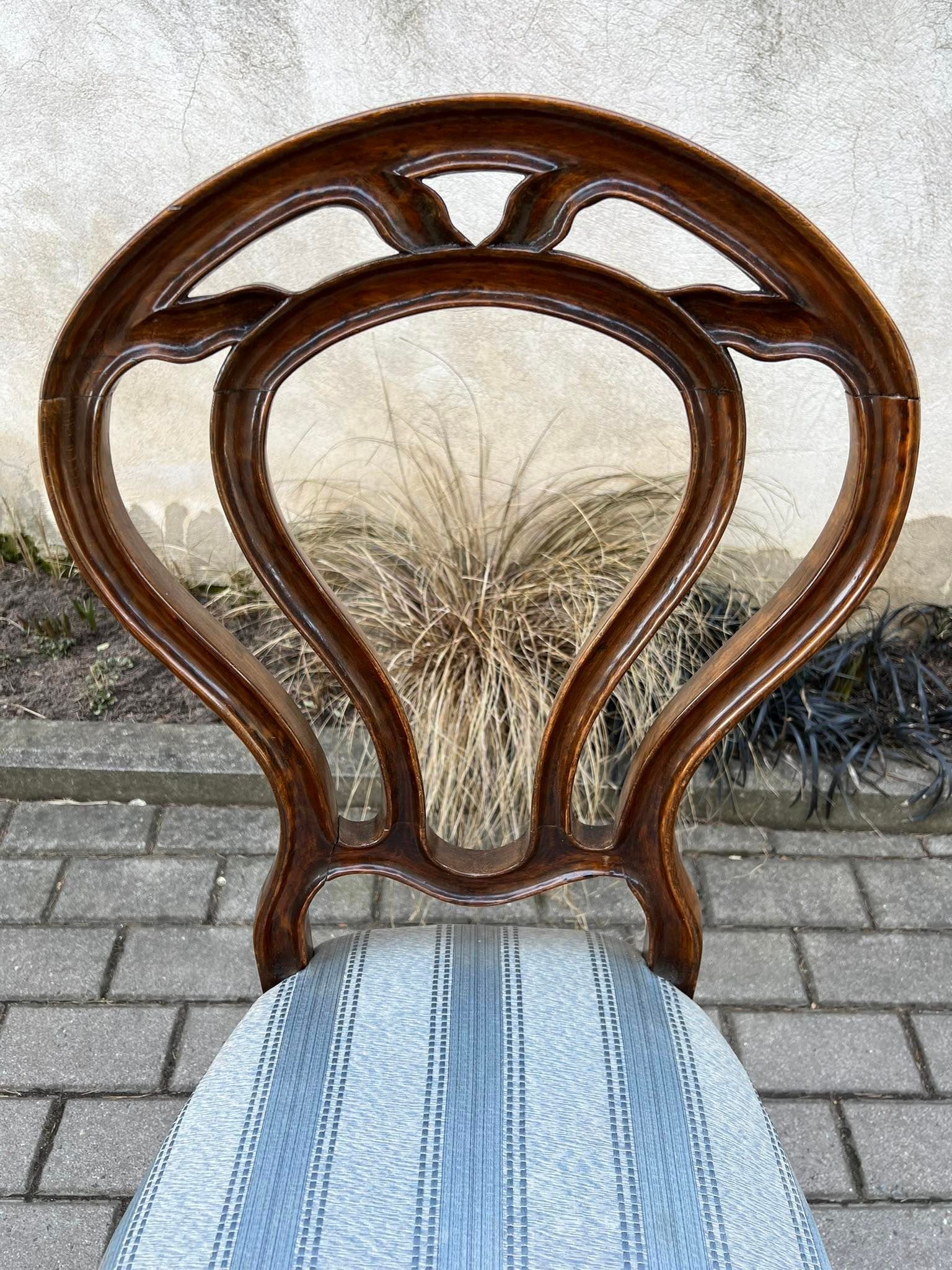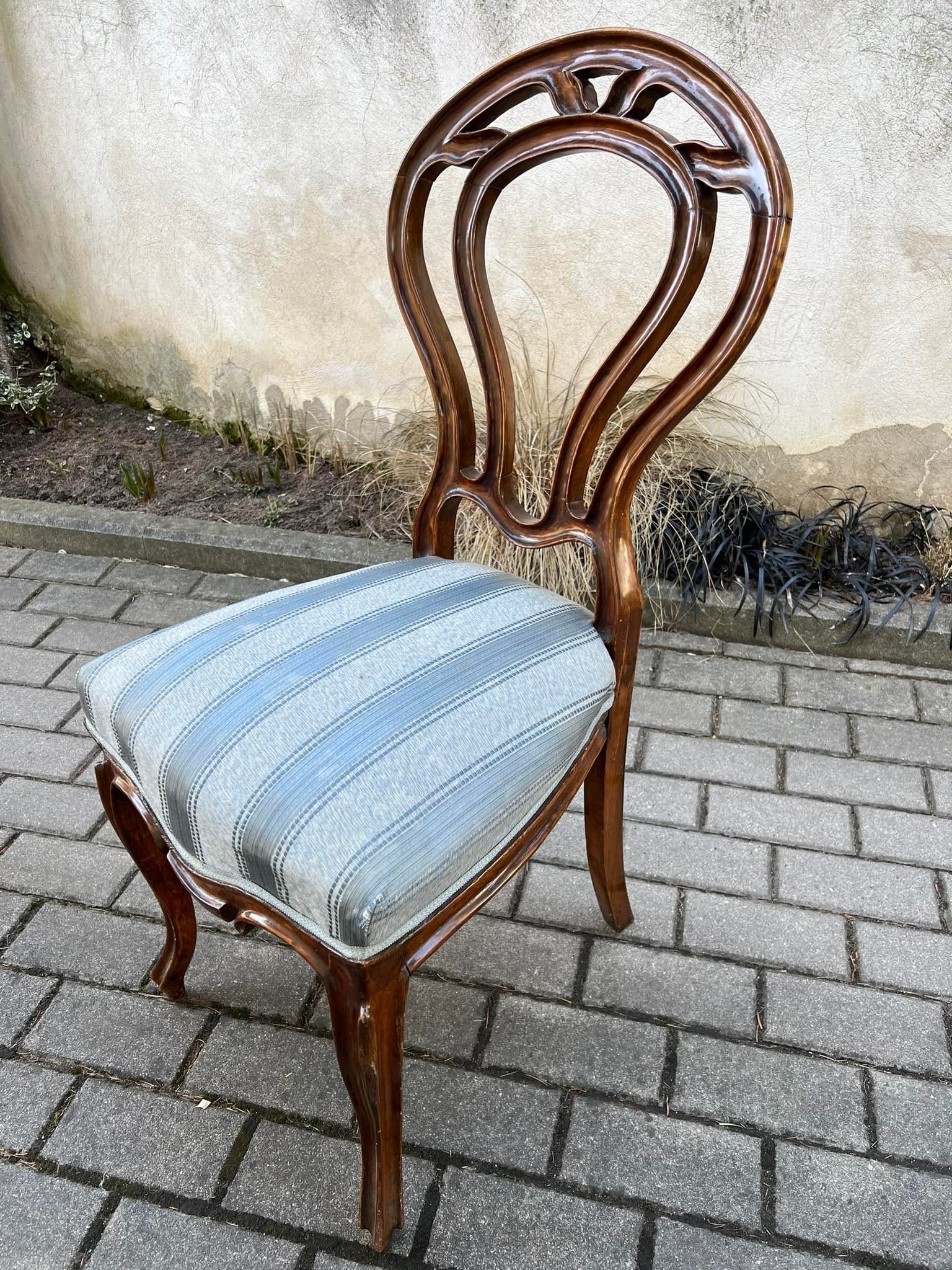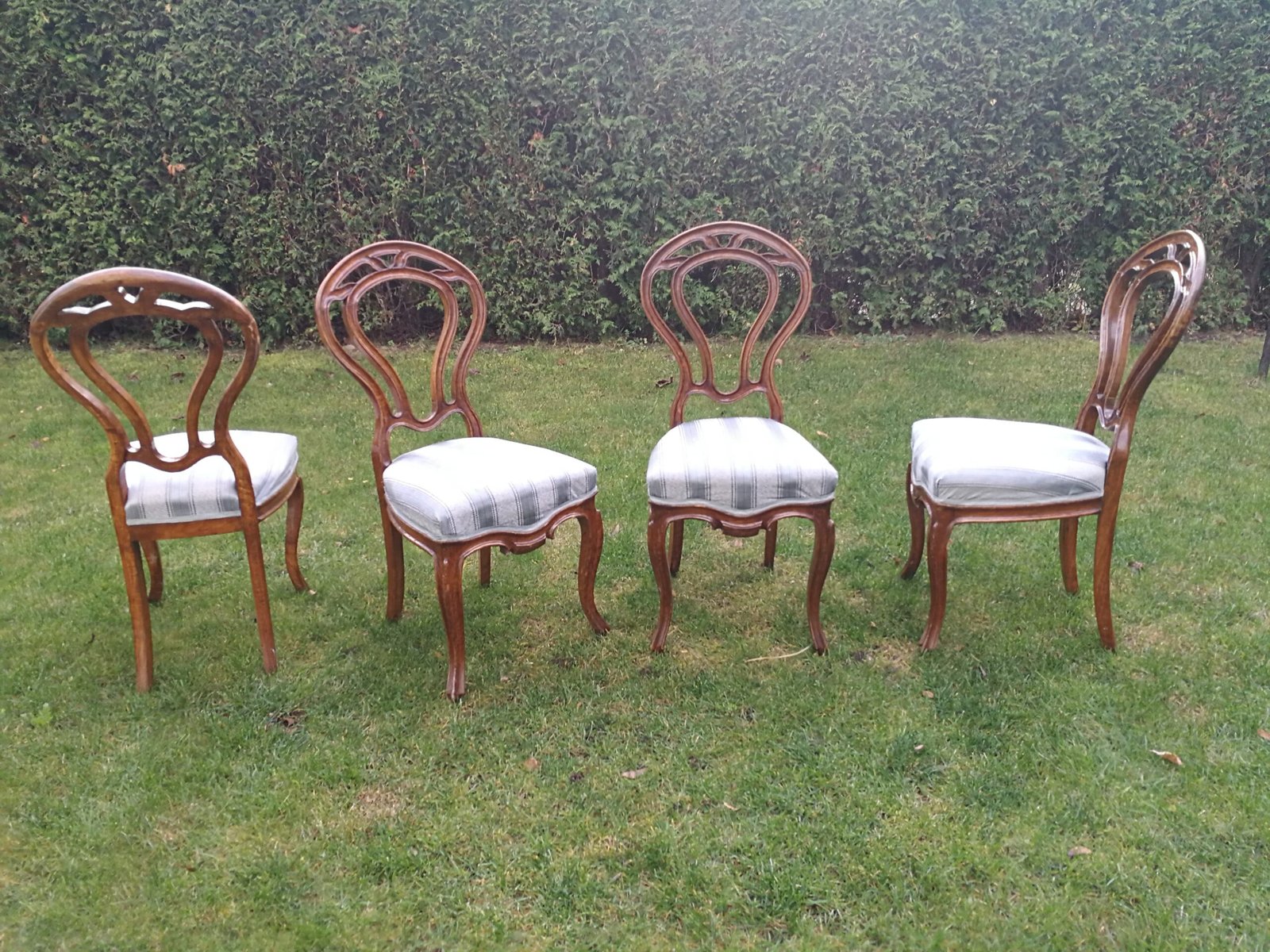 Antikvarinės riešutmedžio kėdės. 4 vnt. Parduodamas 4 kėdžių komplektas. Kaina po 48