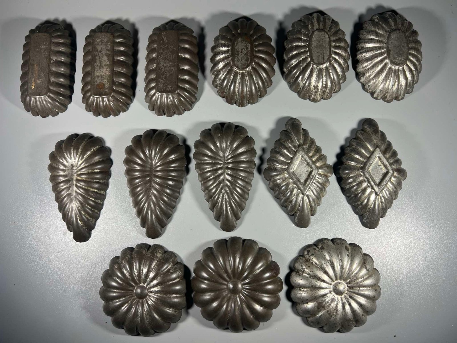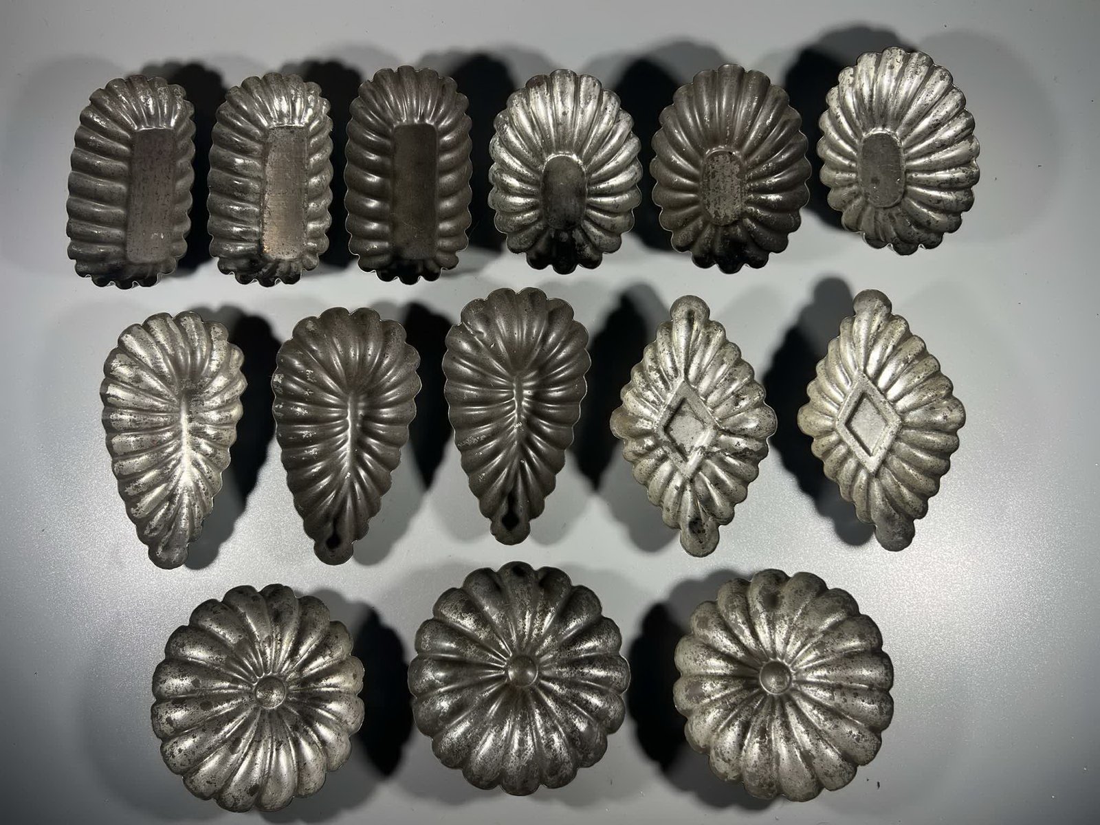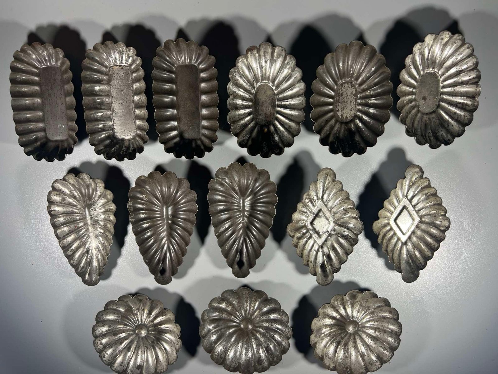 Kepimo, konditerinės formelės antikvarinės, skardinės, tvirtos, įvairių formų. 1900-1940 m. 14 vnt. Kaina po 8