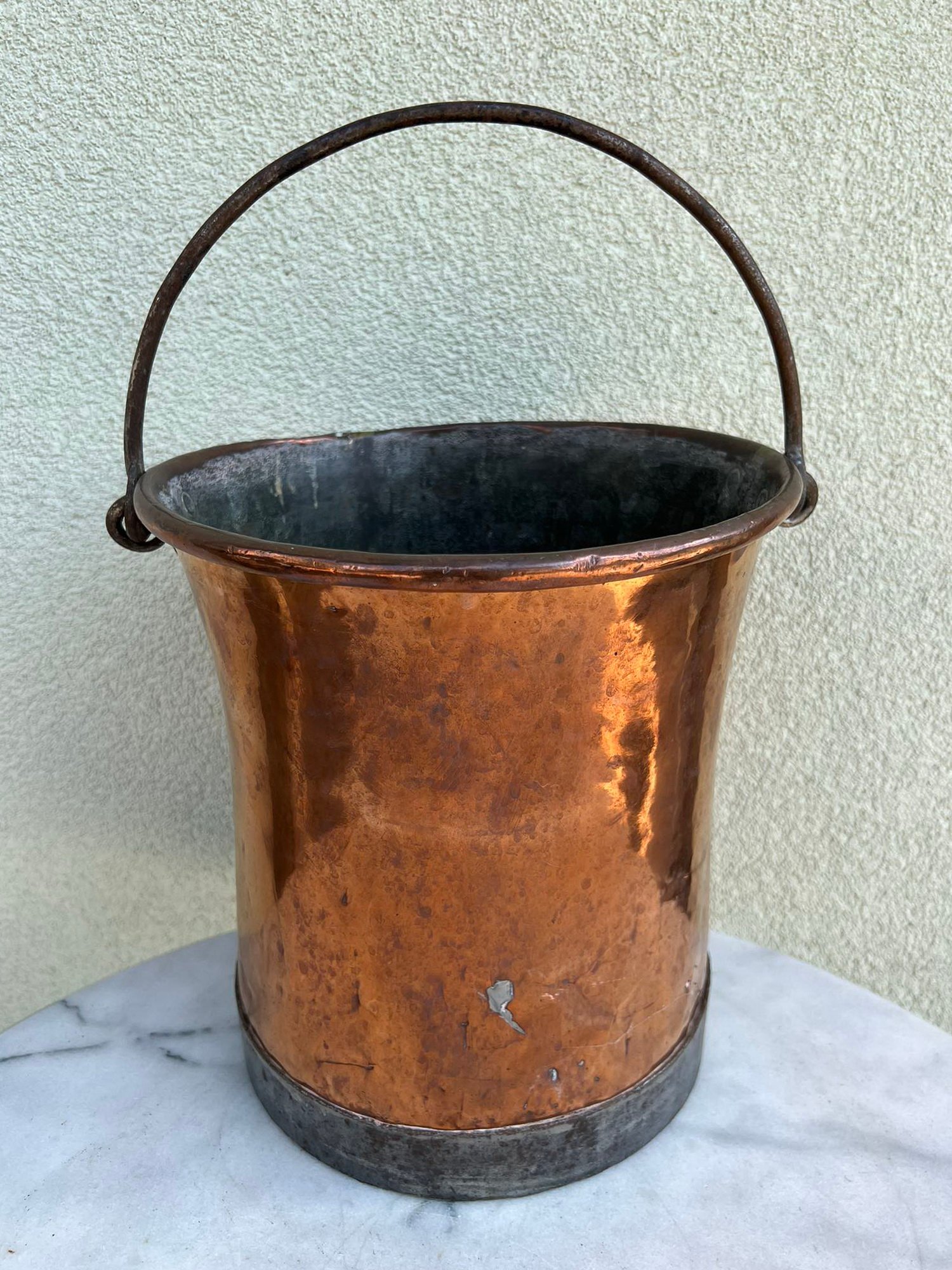 Kibiras su  rankena, varinis, kaltinis, antikvarinis. Yra skylučių. Aukštis 28, su rankena 48, skersmuo 25 cm. Kaina 63