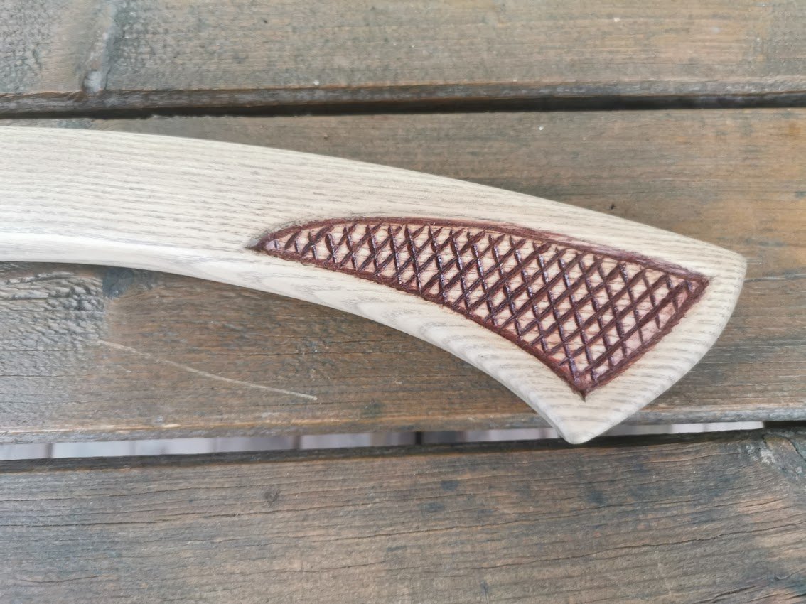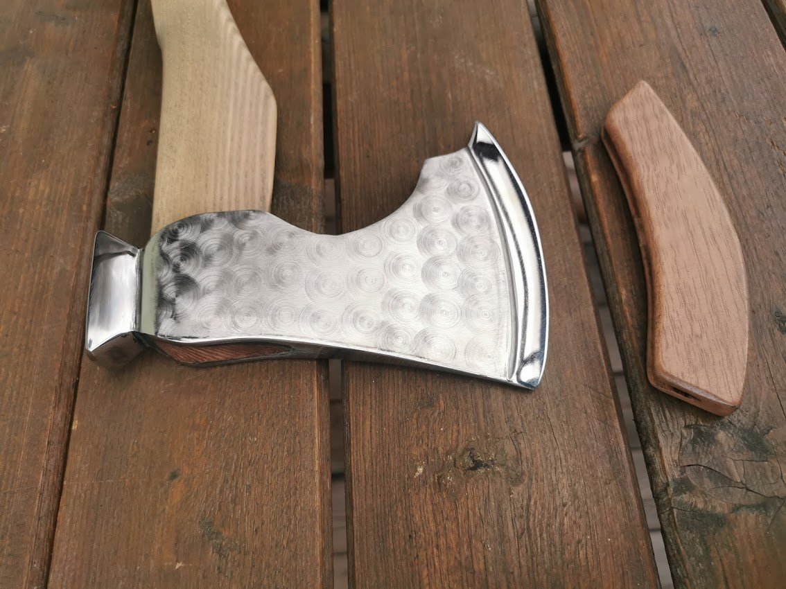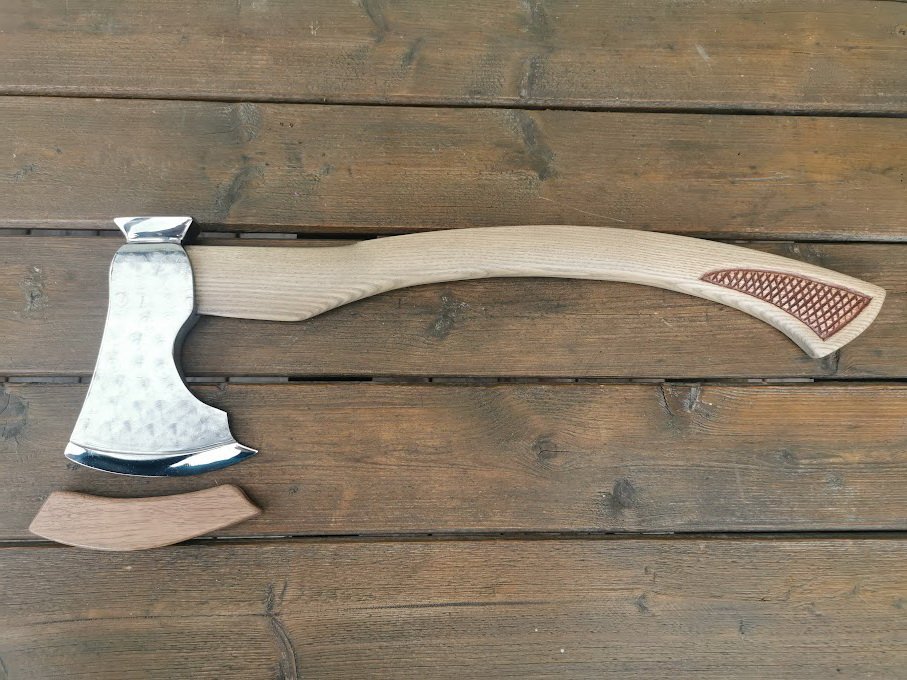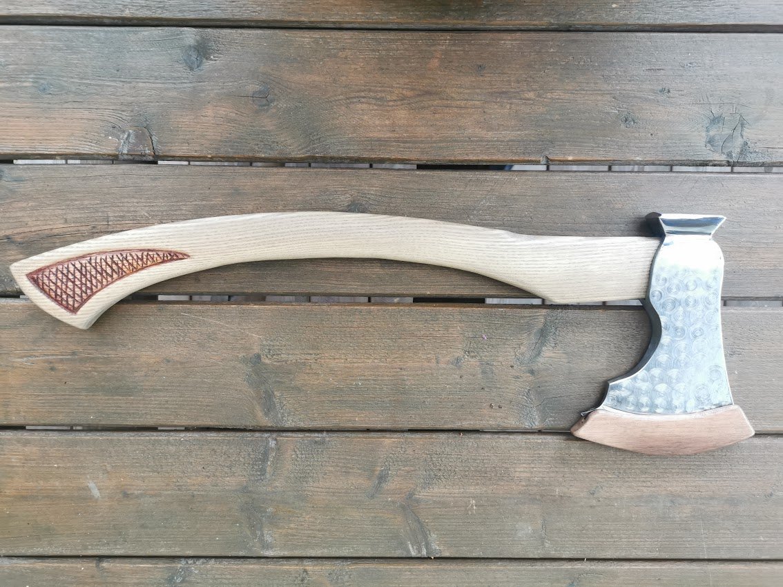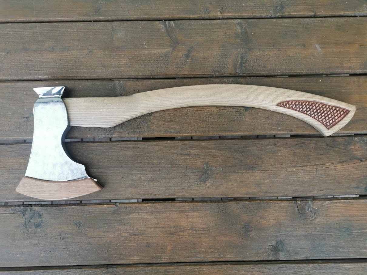 Kirvis drožinėta ąžuoline rankena. Rankų darbas. Kirvio galva antikvarinė, restauruota. Ypač aštrus. Kaina 187