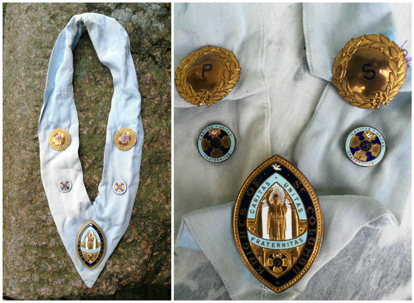 Knights of St. Columbia regalija. The Knights of St Columba is a Catholic fraternal service organisation. Founded in Glasgow in 1919. north. Zenklai dengti spalvota emale. Kaina 82