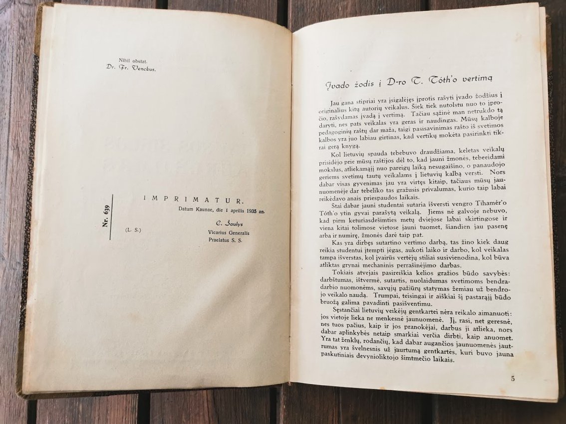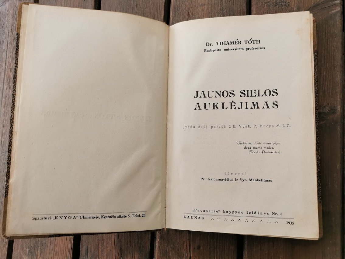 Knyga Jaunos sielos auklėjimas. 1935 m. Kaina 21