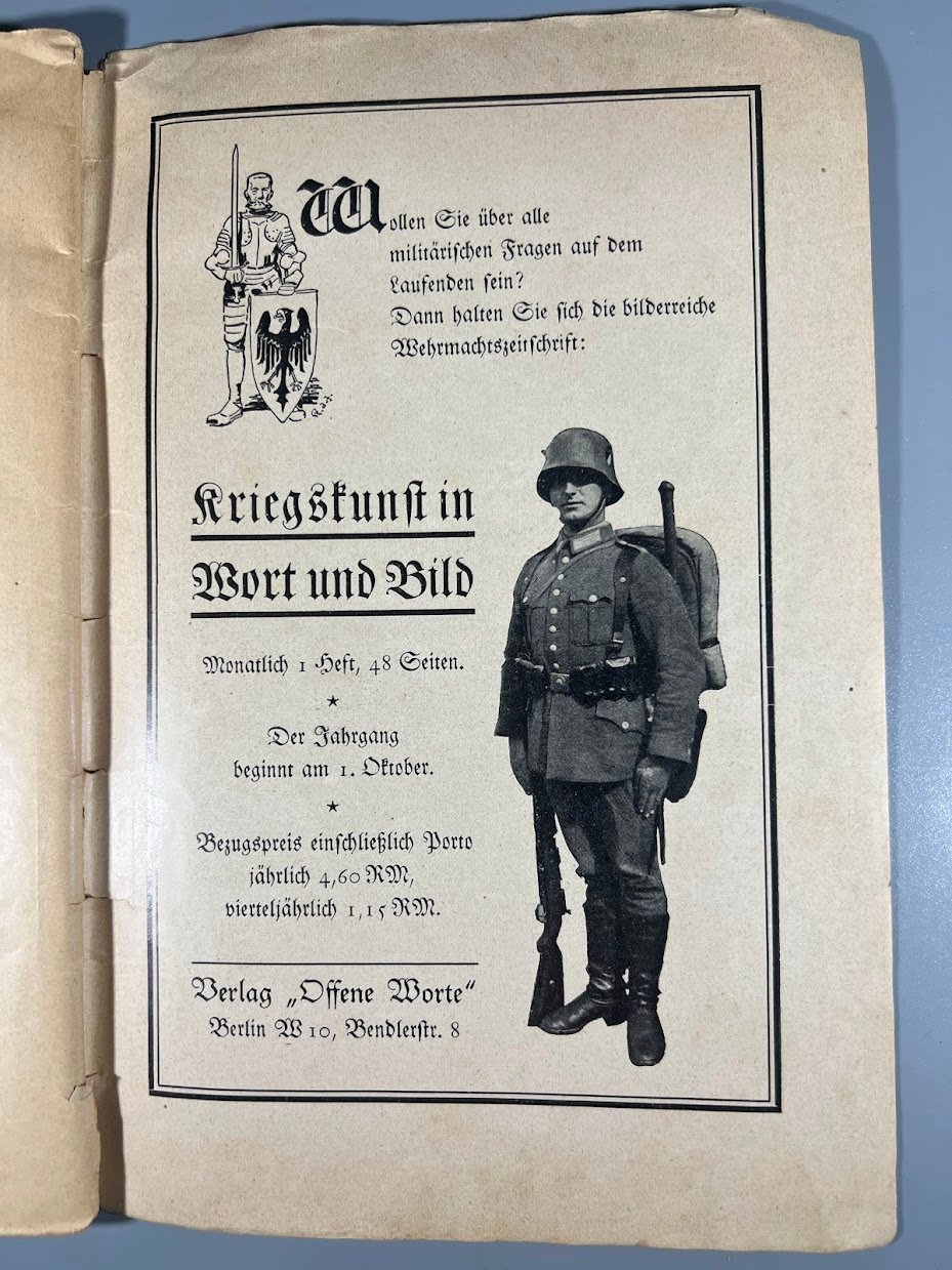 Knyga Kriegskunst in Wort und Bild. Karo menas žodžiais ir paveikslėliais. 1931 m. Kaina 18
