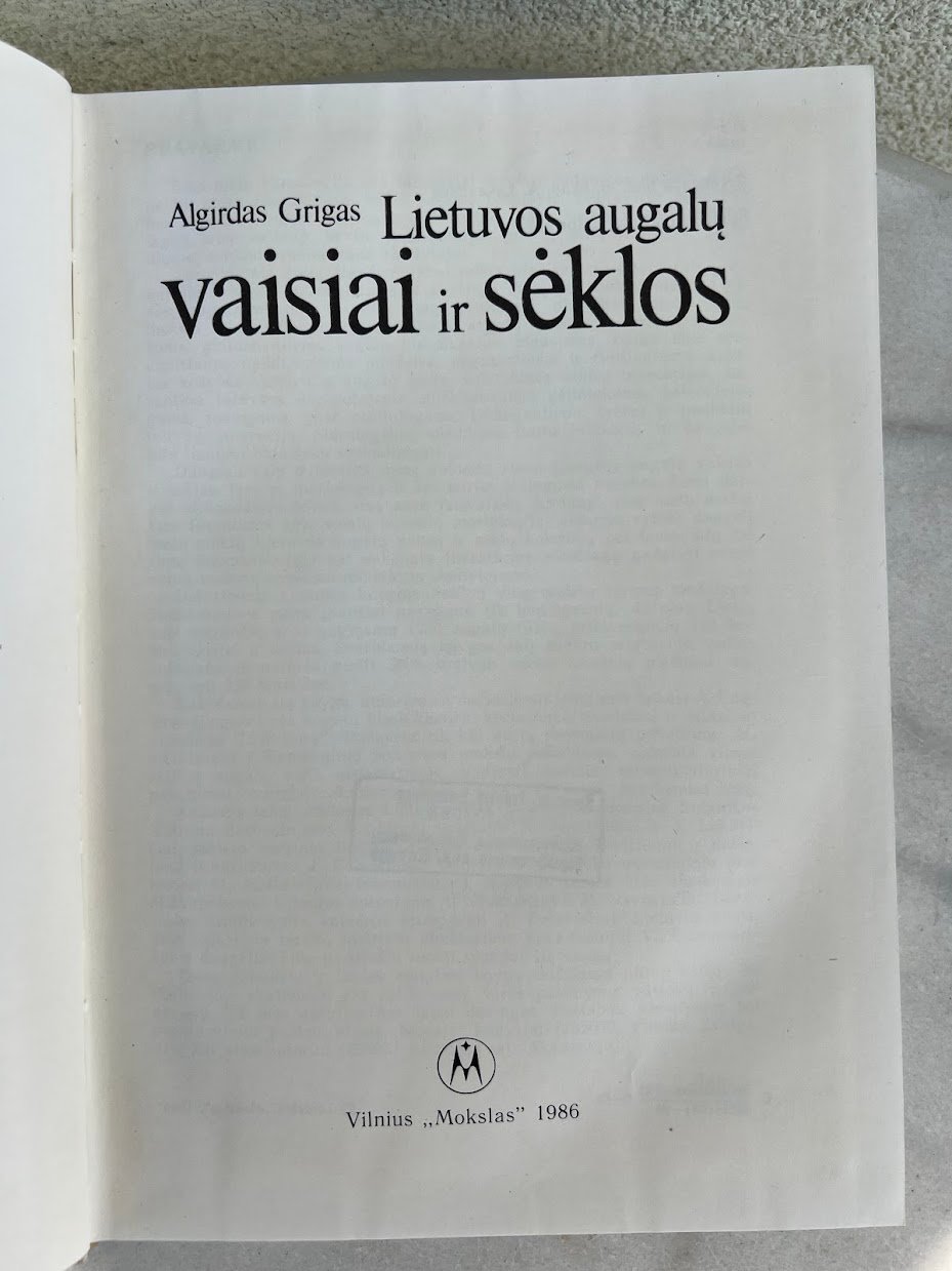 Knyga Lietuvos augalų vaisiai ir sėklos, A. Grigas, 1986 m. Kaina 23