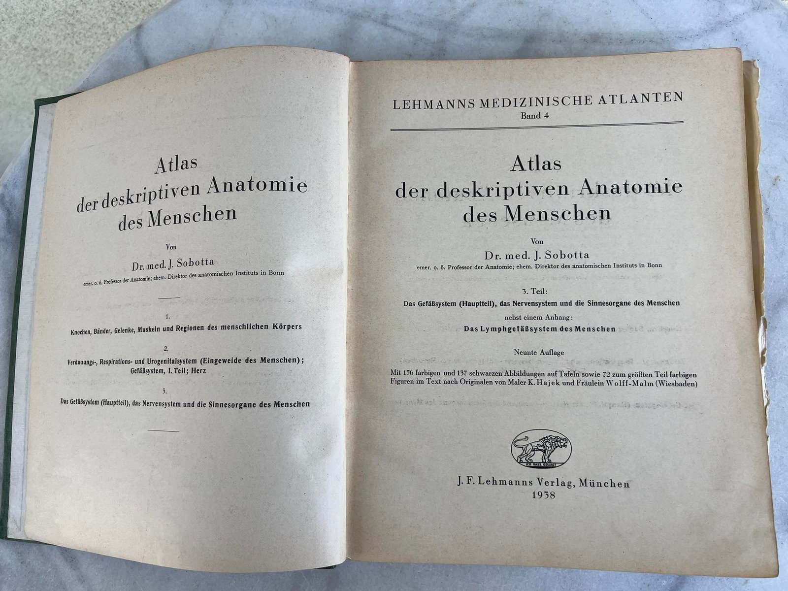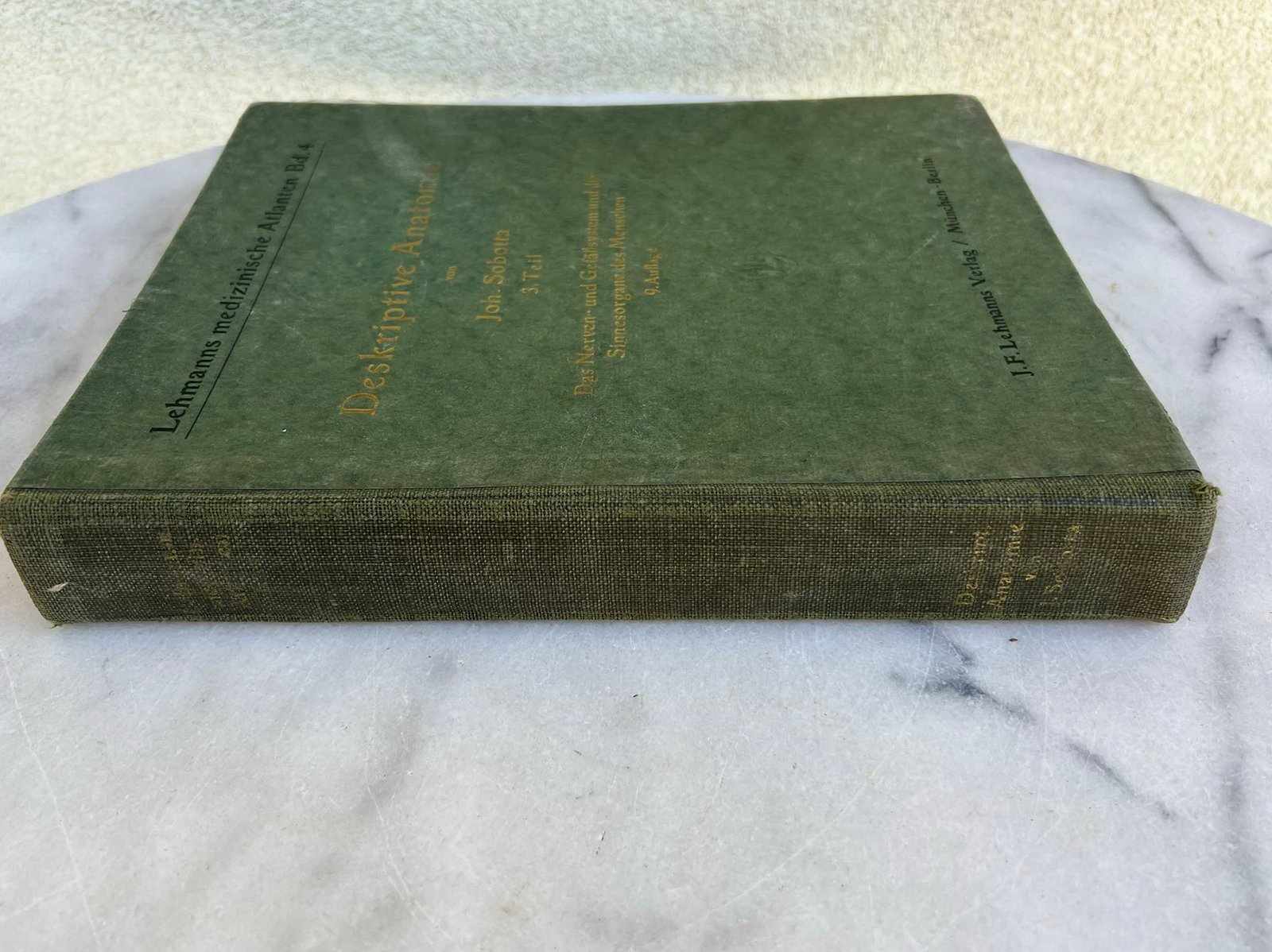Knyga medicininė, antikvarinė Deskriptive Anatomie – Lehmanns medizinische Atlanten. Joh. Sobotta. Aprašomoji anatomija – Lehmanno medicinos atlasai. 1937 m. Kaina 23