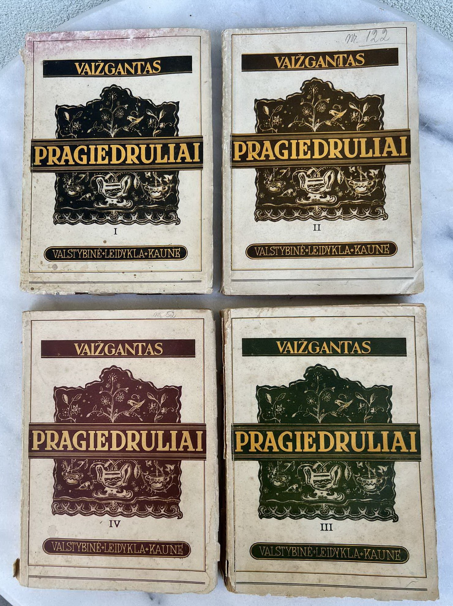 Knyga Pragiedruliai. Visi 4 tomai. Vaižgantas. 1942 m. Kaina 38 už visus.