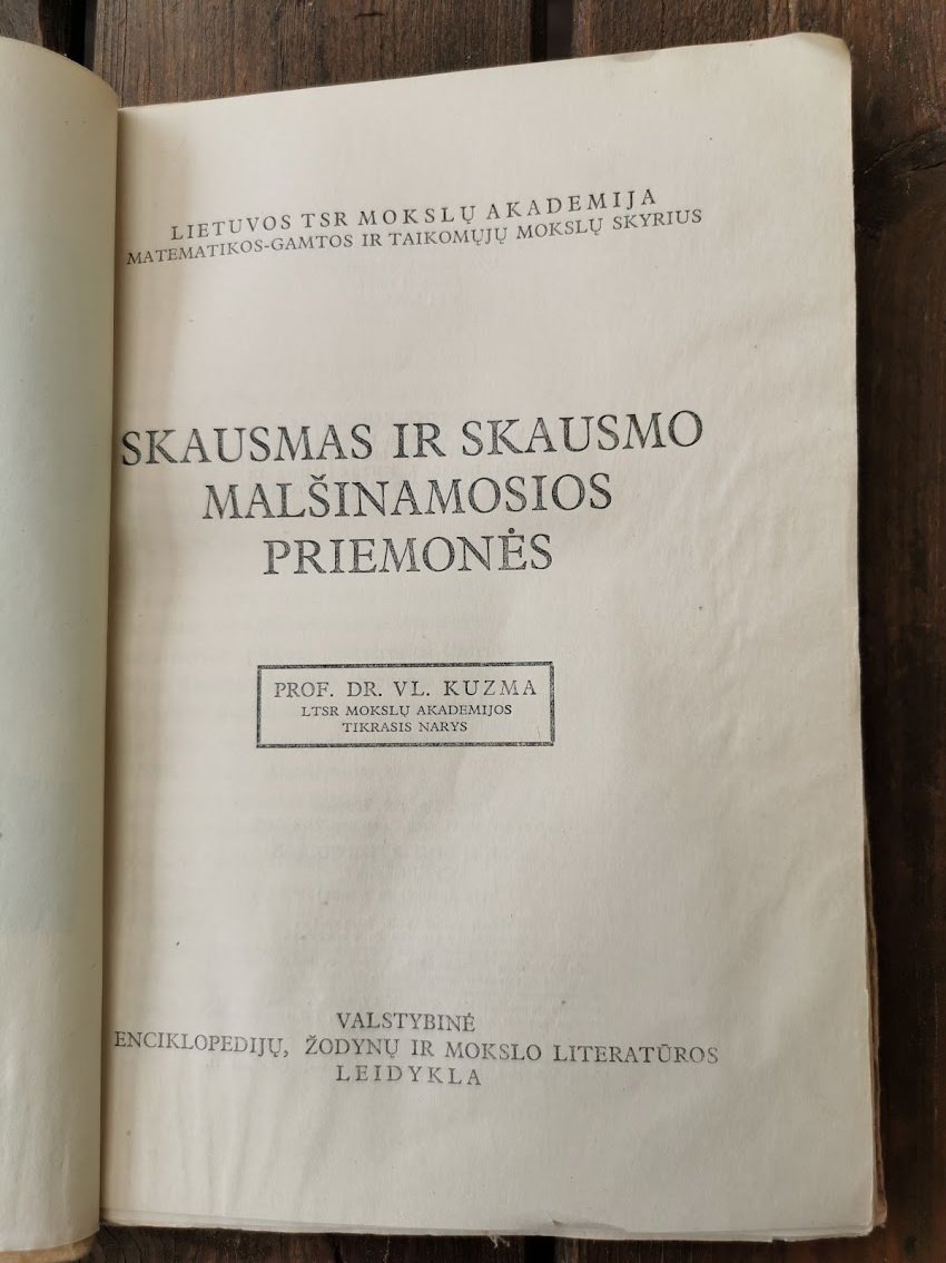 Knyga Skausmas ir skausmą malšinamosios priemonės. Prof. Vl. Kuzma. 1947 m. Viršelis dailininko K. Šimonies. Tiražas 3200 egz. Neskaityta. Kaina 32