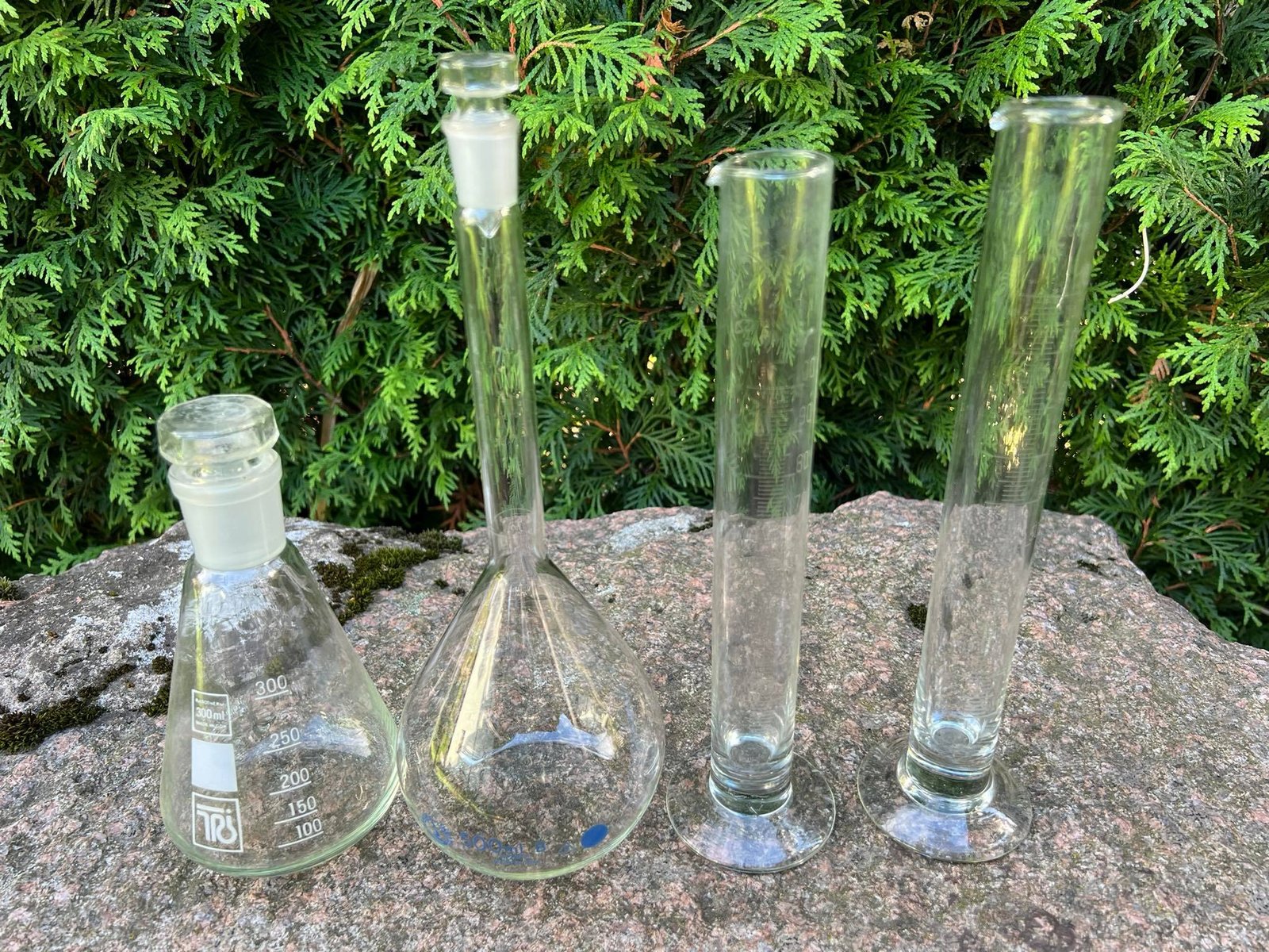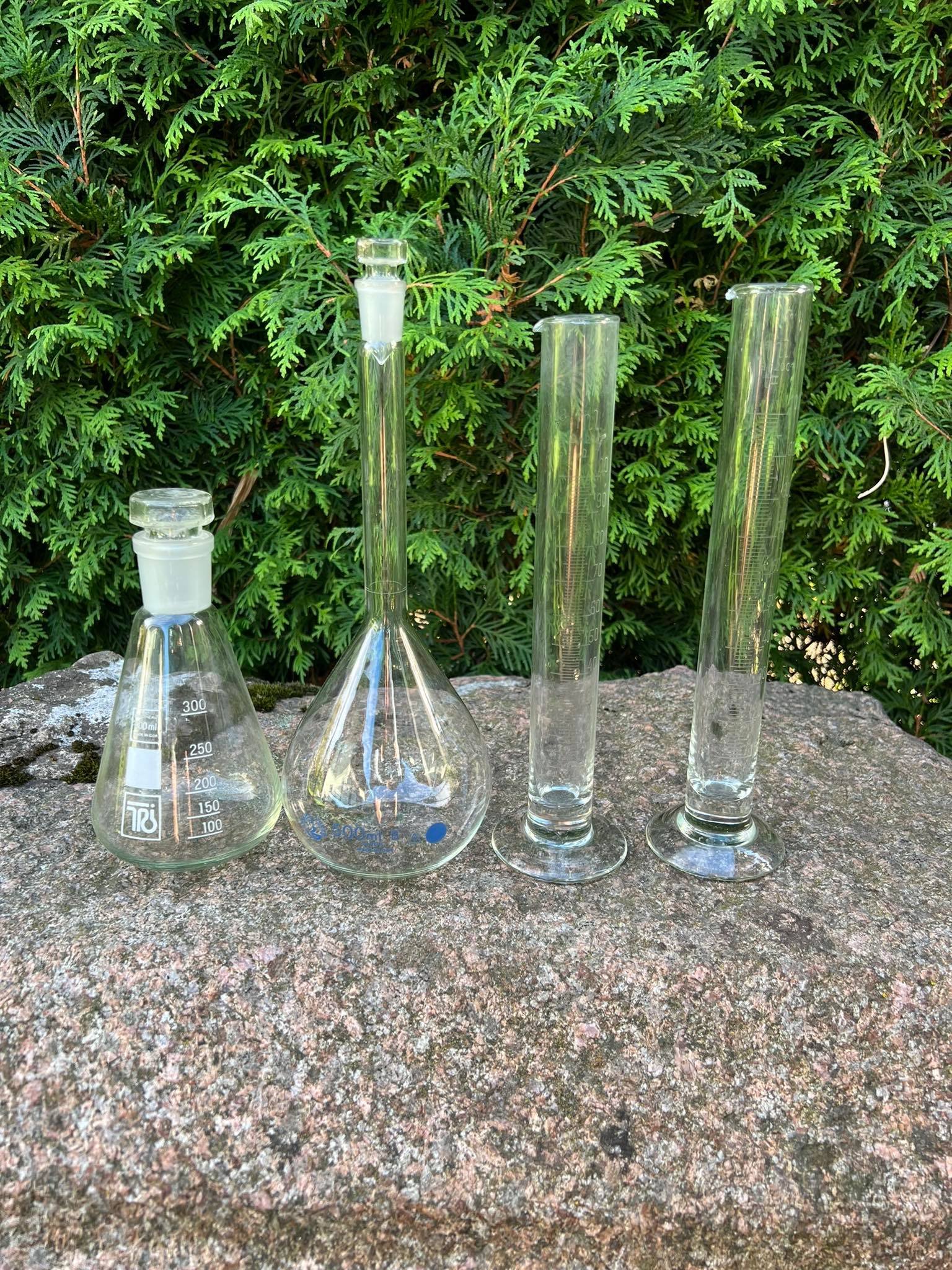 Indai laboratoriniai, medicininiai, graduoti. Menzūros graduotos. Aukštis 25 cm. Kaina po 18