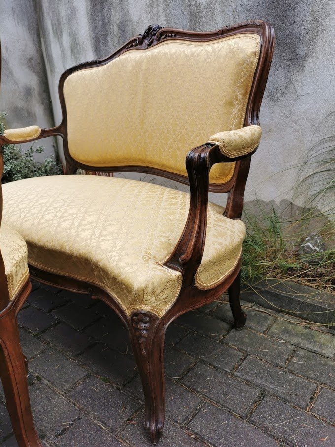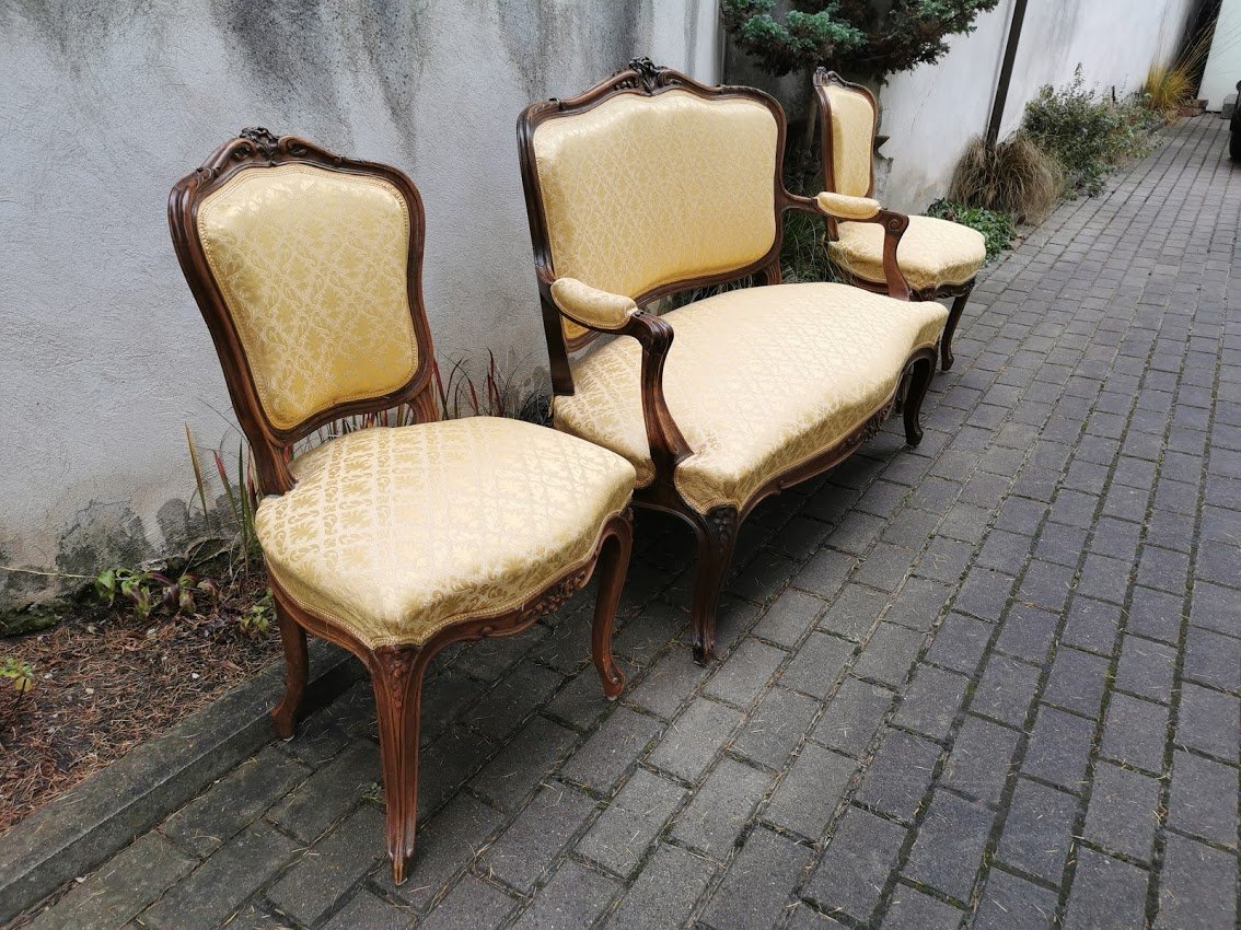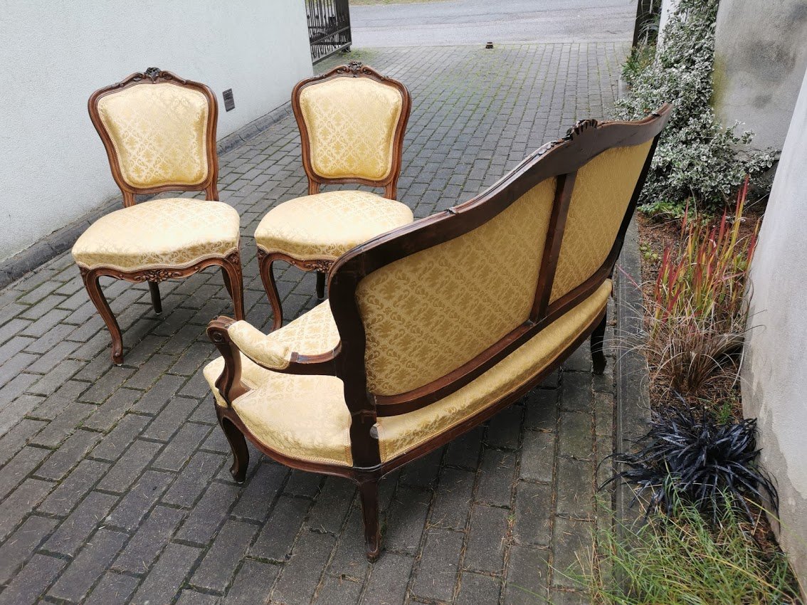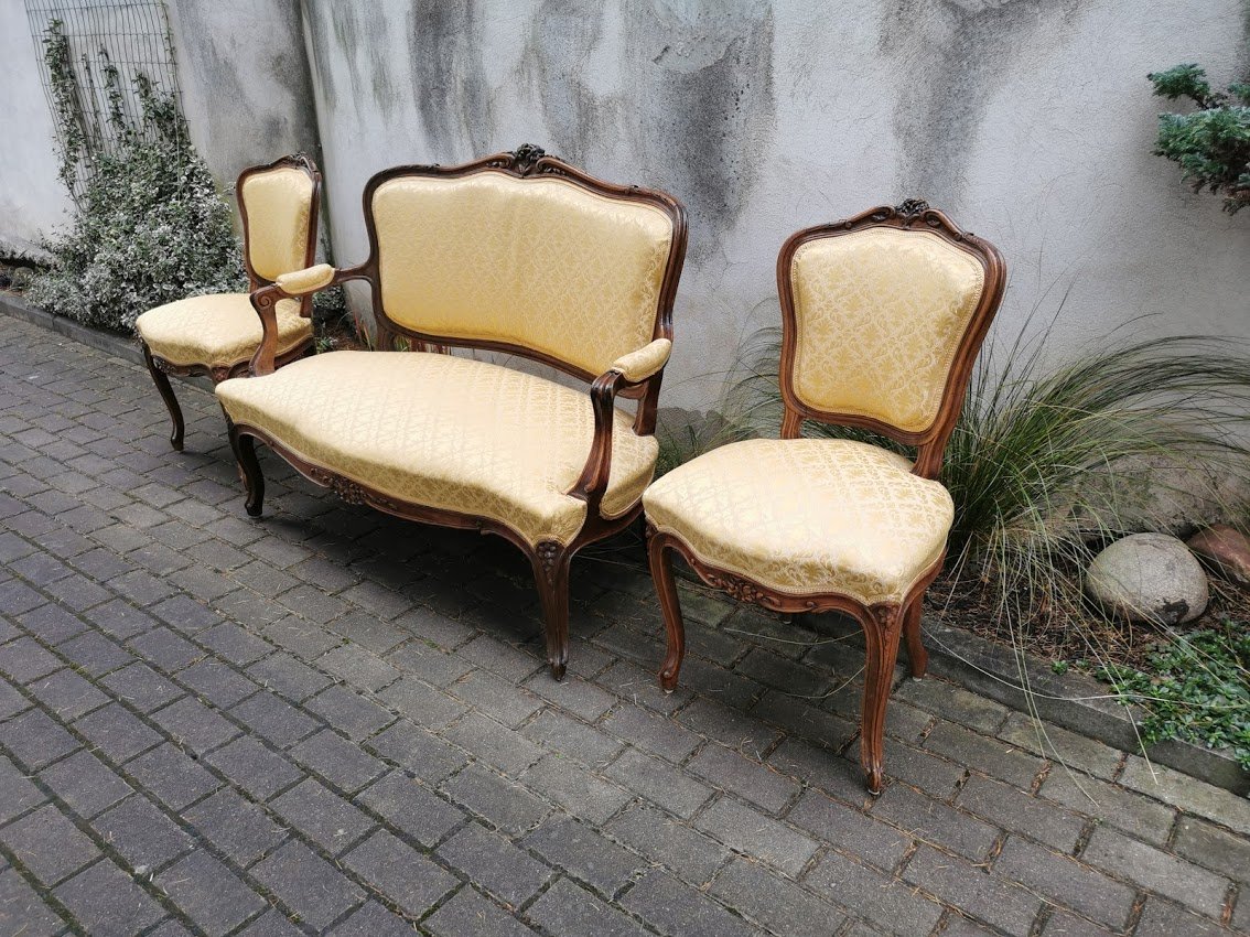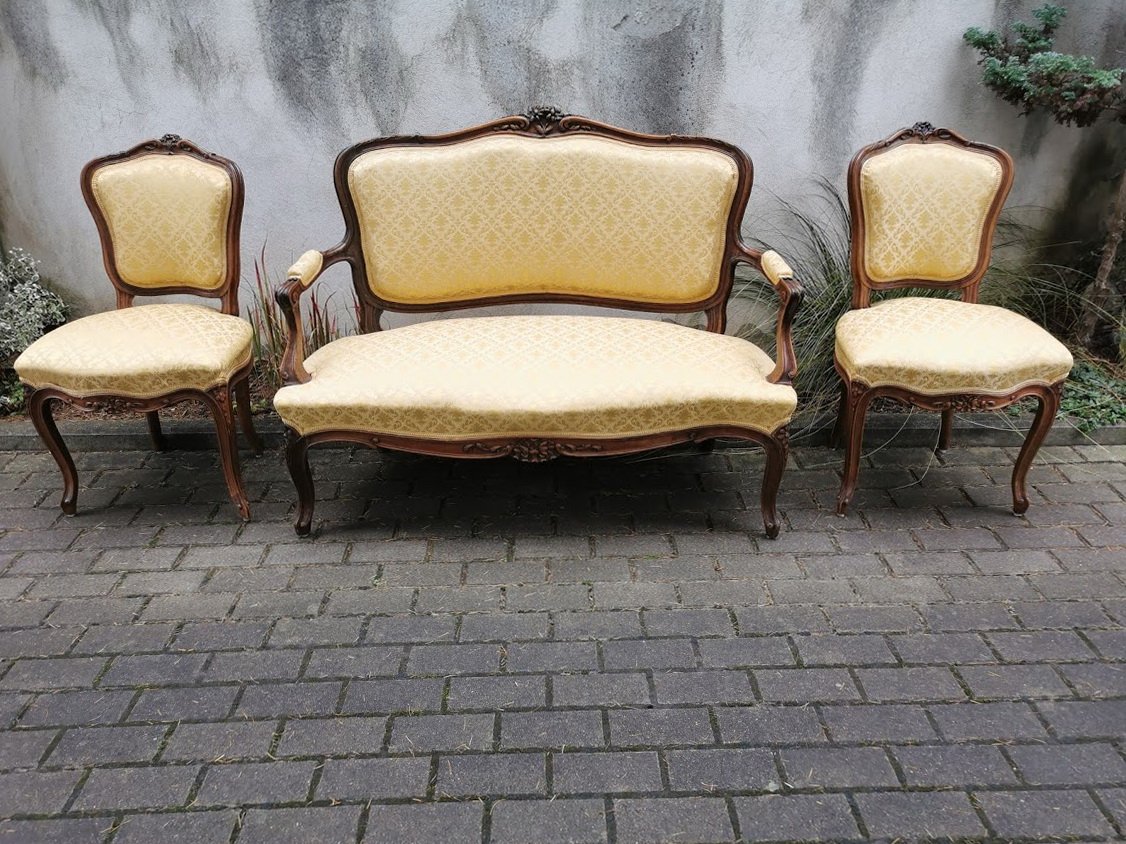 Komplektas antikvarinis: dvisėdis, kanapa, minkštasuolis ir dvi kėdės. Komplekto kaina 498, perkant atskirai kėdės po 123, dvisėdis 298