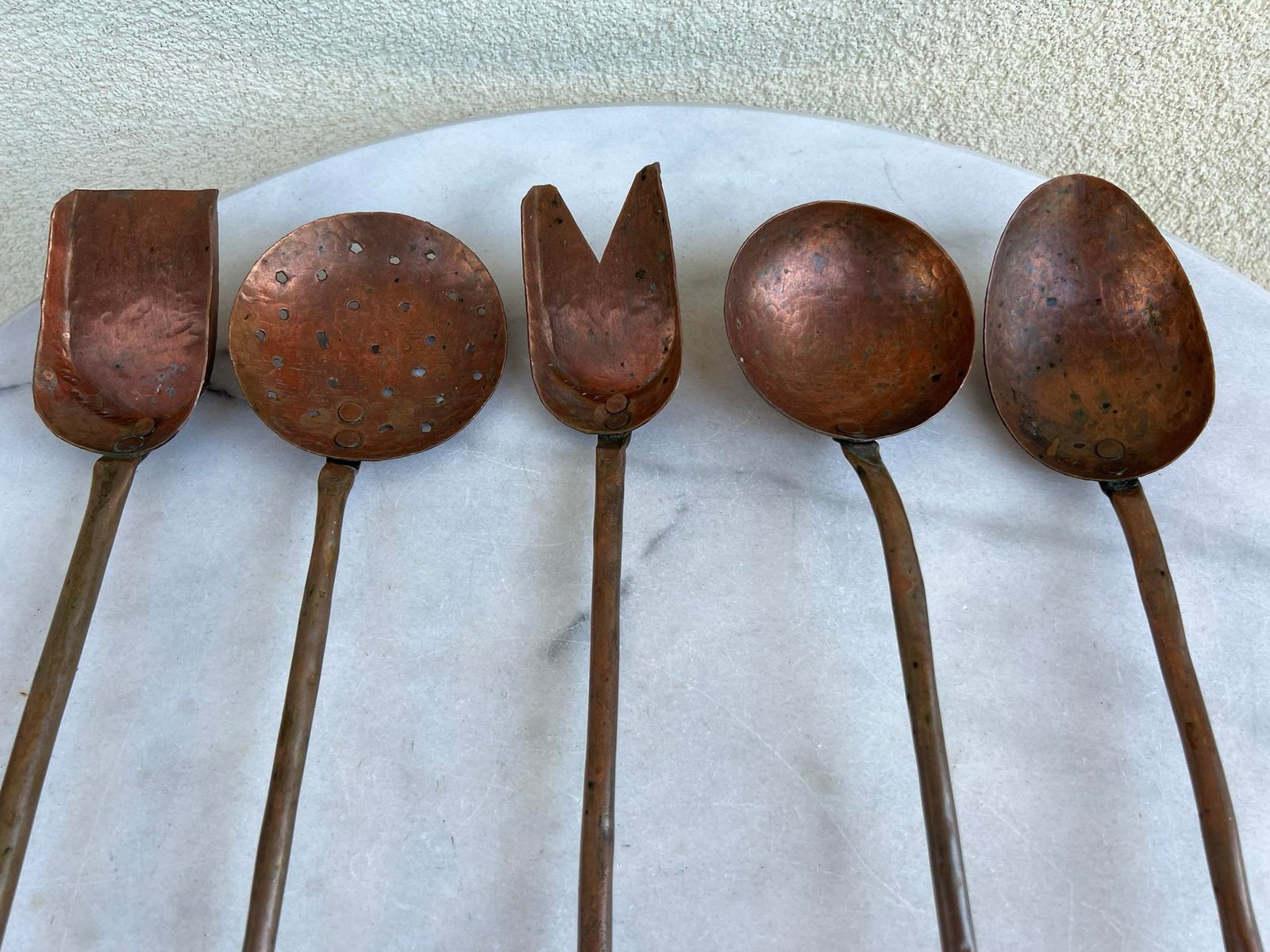 Komplektas antikvarinių varinių samčių. 5 vnt. Kaina 63 už visus.