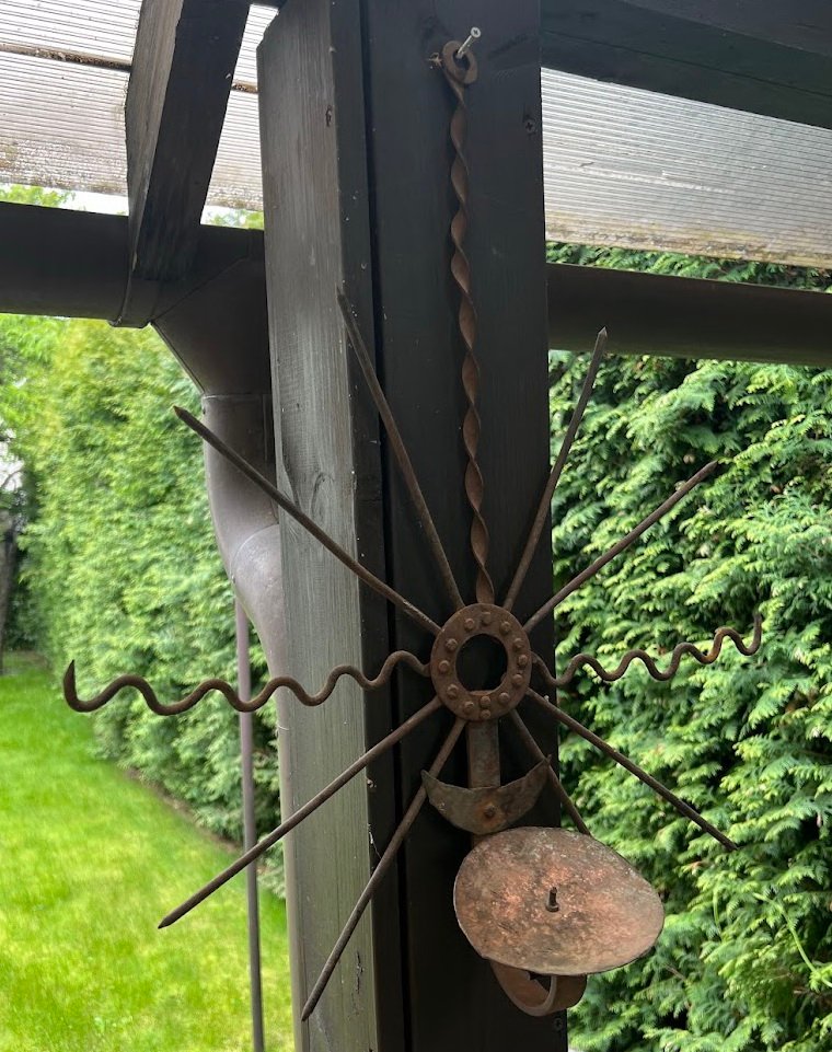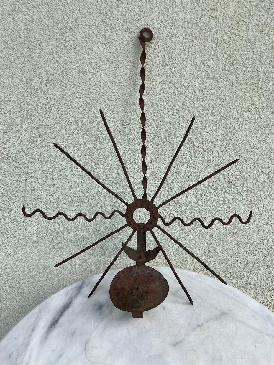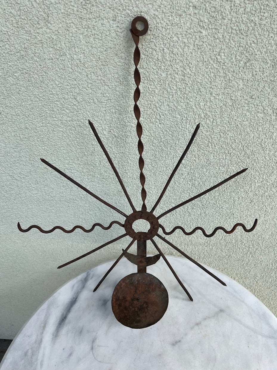 Kryžius, saulutė, žvakidė, antikvarinė, lietuviška. Aukštis 54 cm. Skersmuo 47 cm. Kaina 53