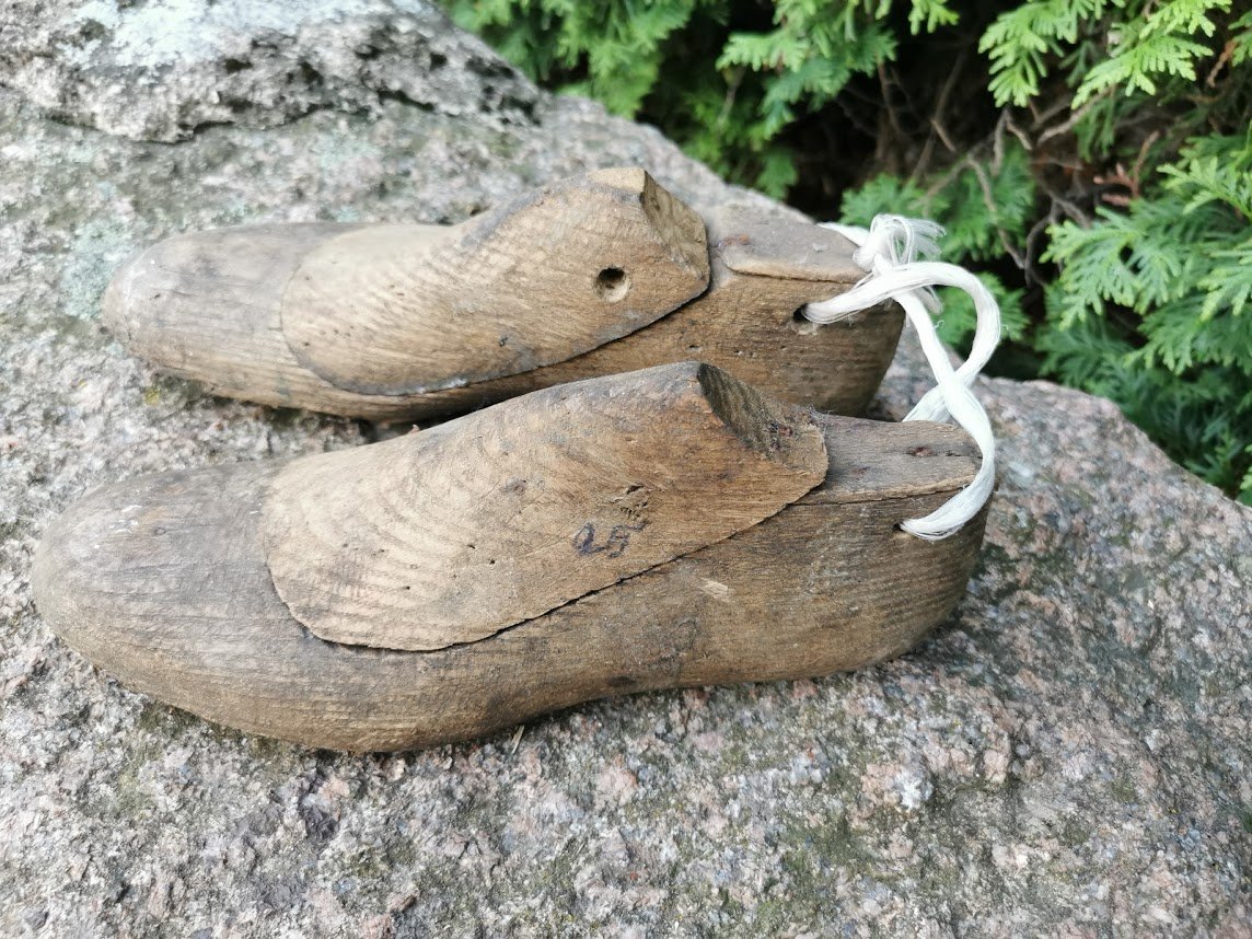 Kurpaliai mediniai, antikvariniai. Kaina 21 už abu.