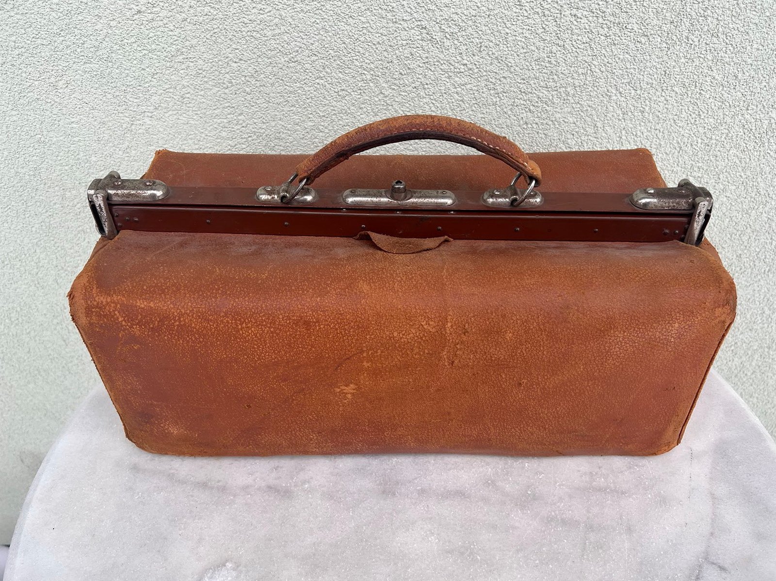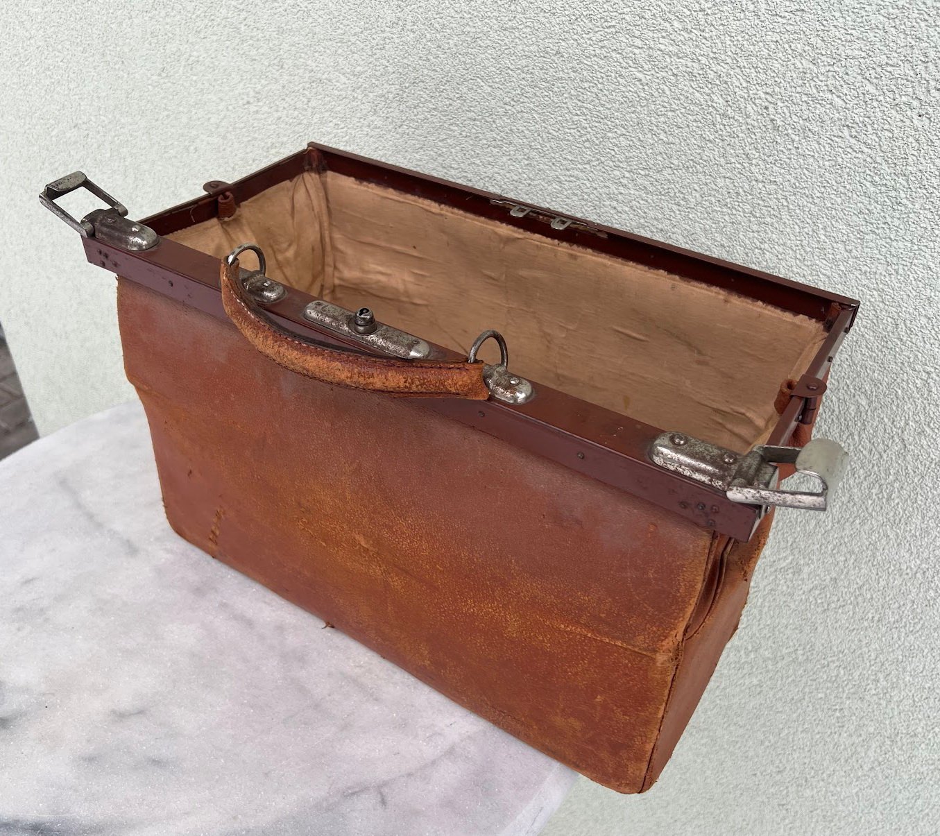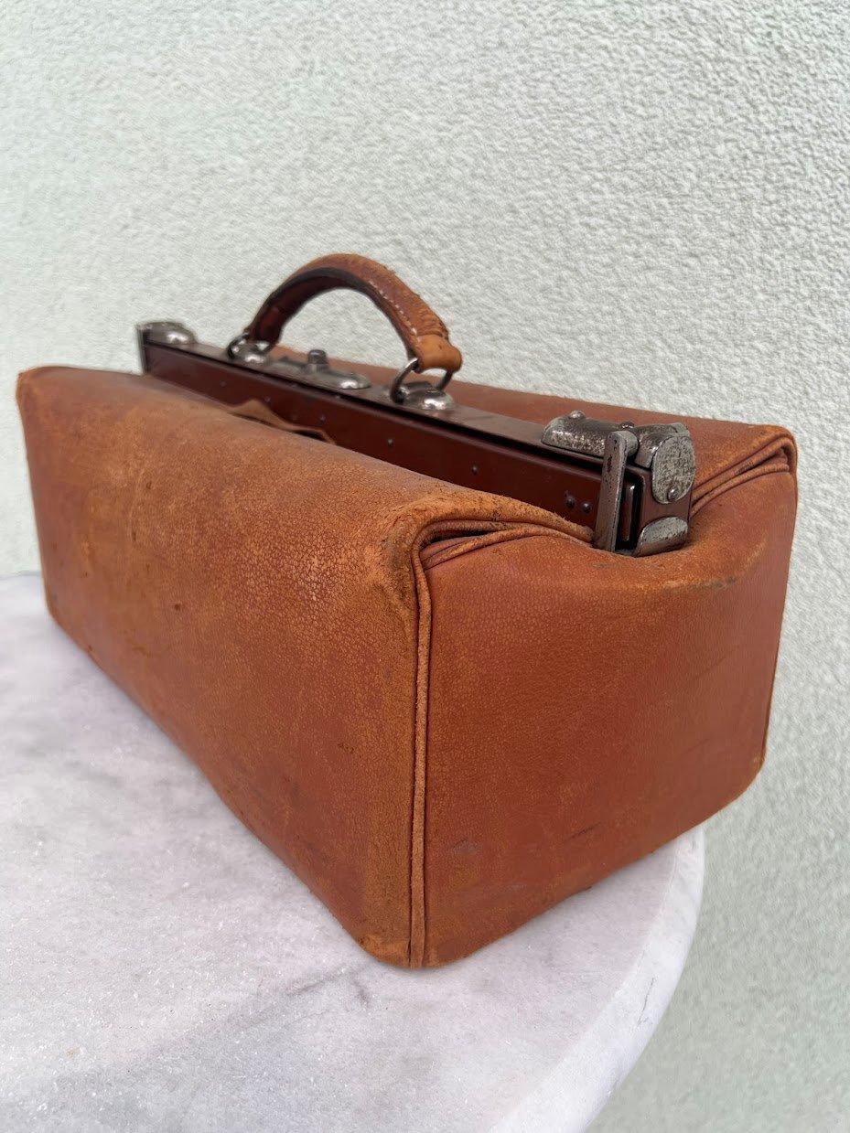 Lagaminas odinis daktaro, kelioninis, antikvarinis. Kaina 126