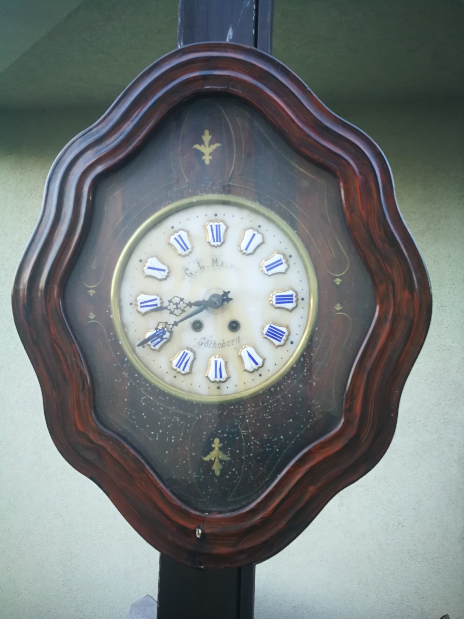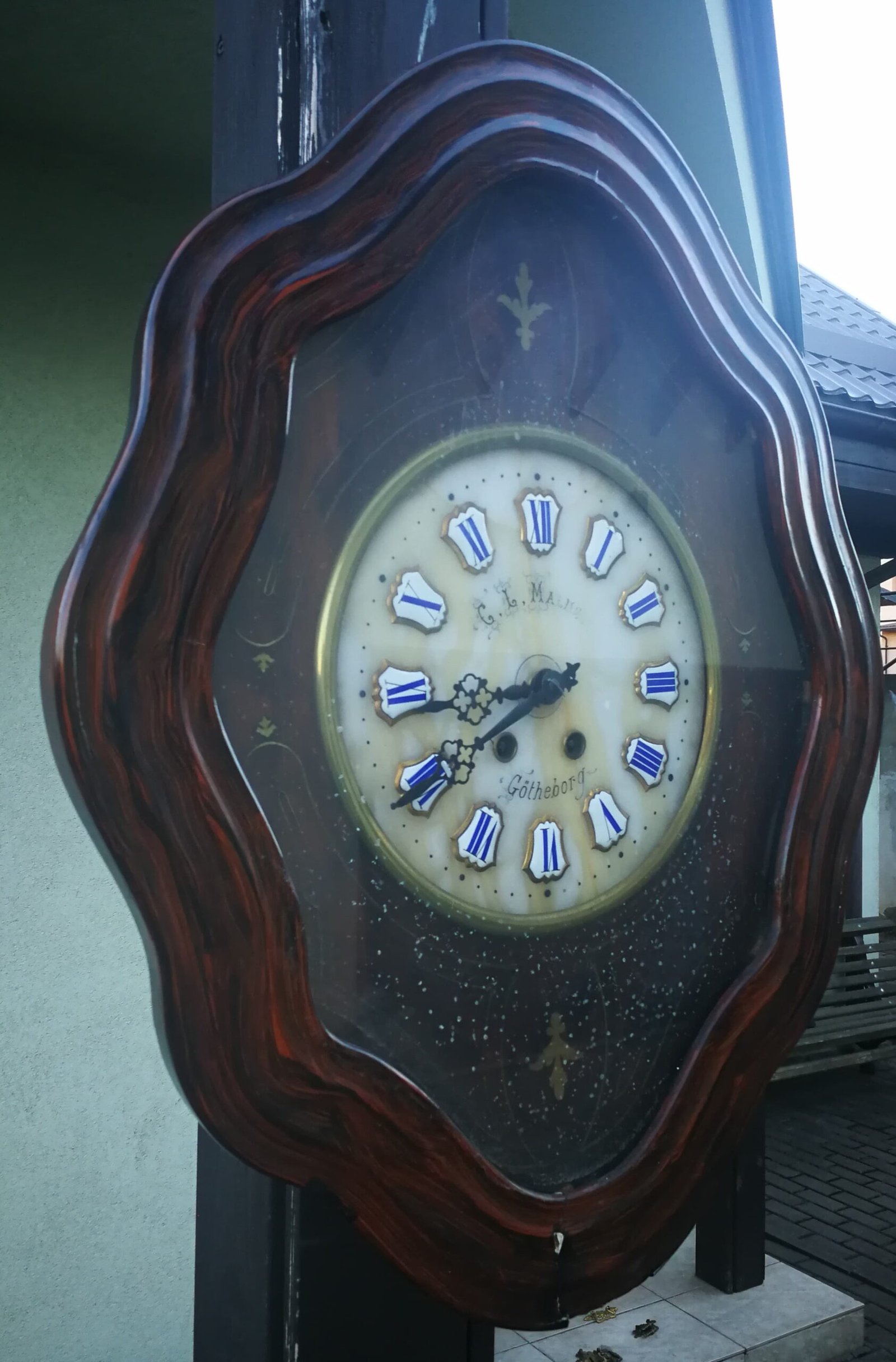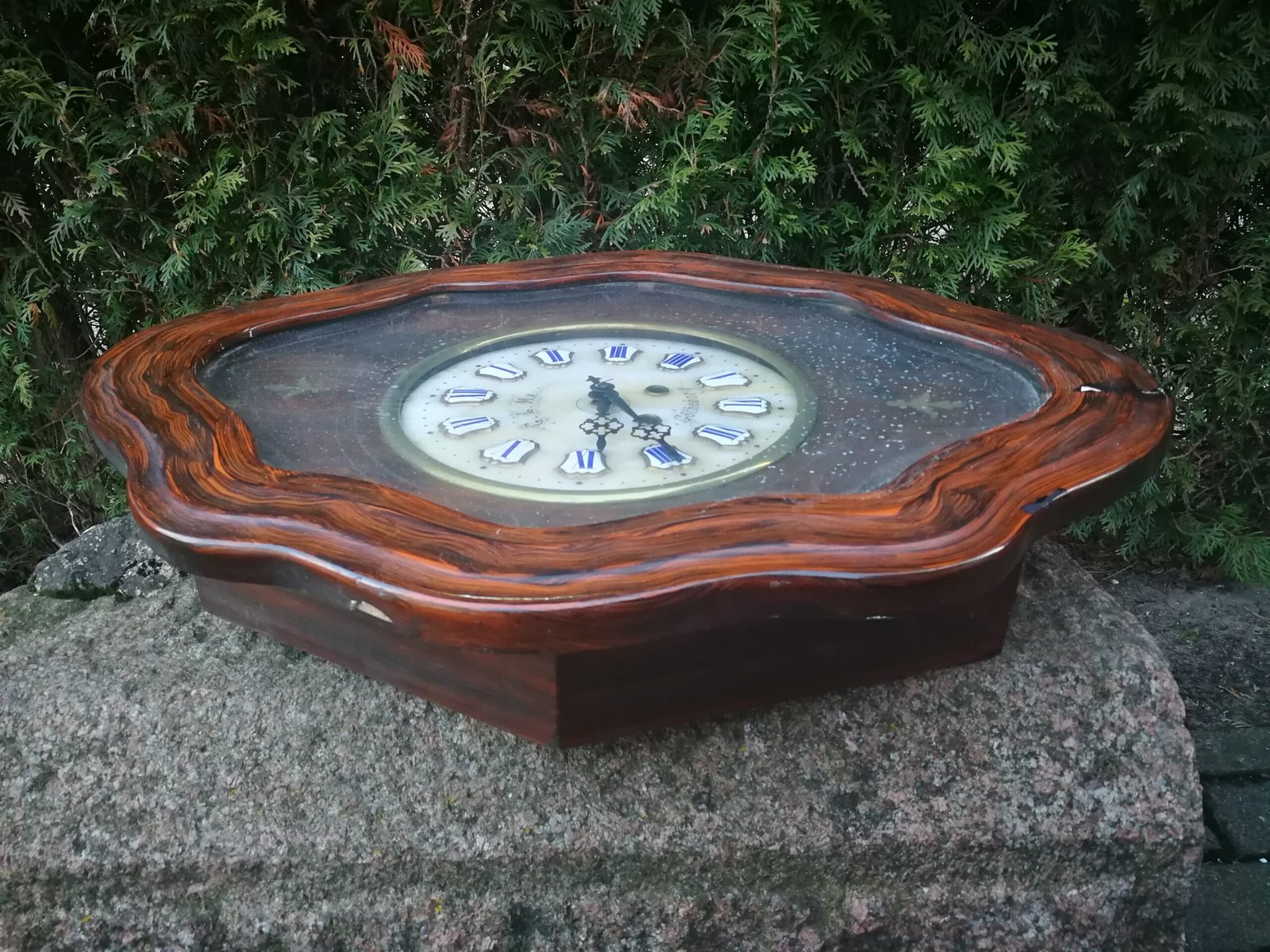 Laikrodis antikvarinis, apie 1890 m. Dydis: 63 x 50 x 13 cm. Netikrintas laikrodininko. Kaina 157