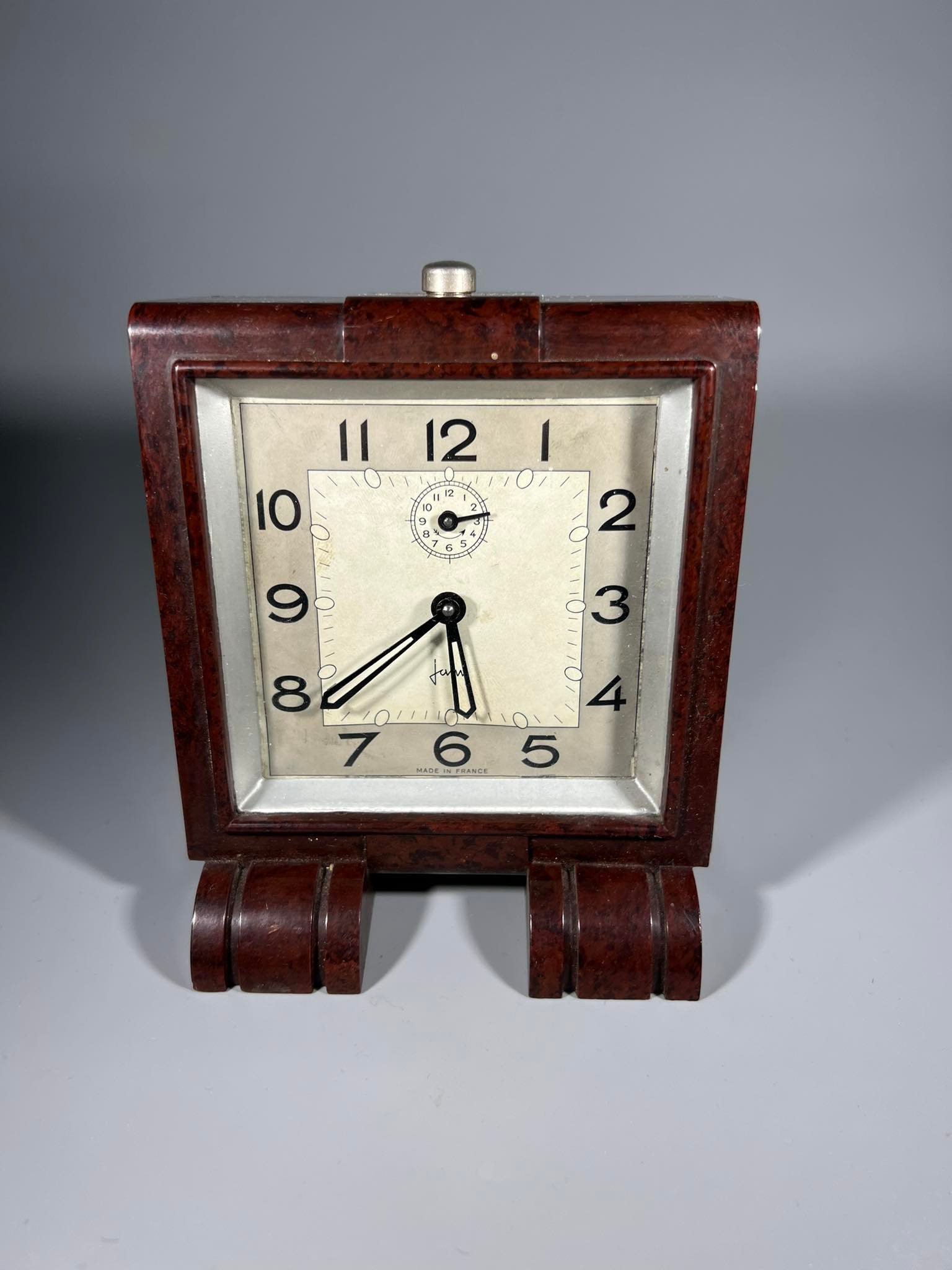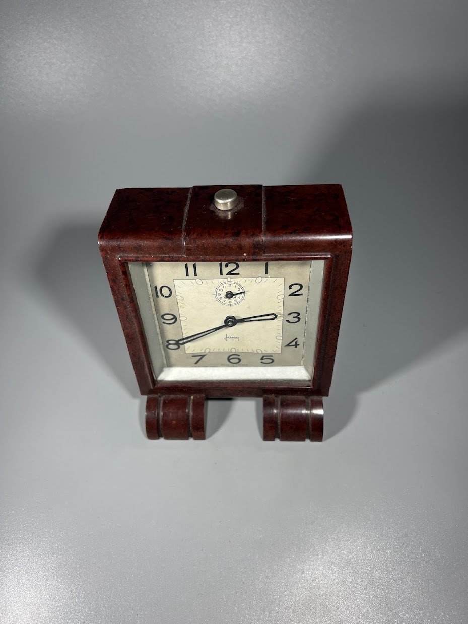 Laikrodis antikvarinis, stalinis žadintuvas, Art Deco stiliaus, tarpukario laikų, Jupy, prancūziškas, bakelitinis. Veikiantis, patikrintas laikrodininko. 1930 m. Kaina 168