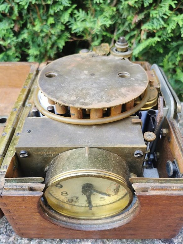 Laikrodis balandžių lenktynių skrydžio laikui paskaičiuoti. Vokietija. Benzing. 1950-60 m. Dydis: 20 x 13 x 17 cm. Kaina 92