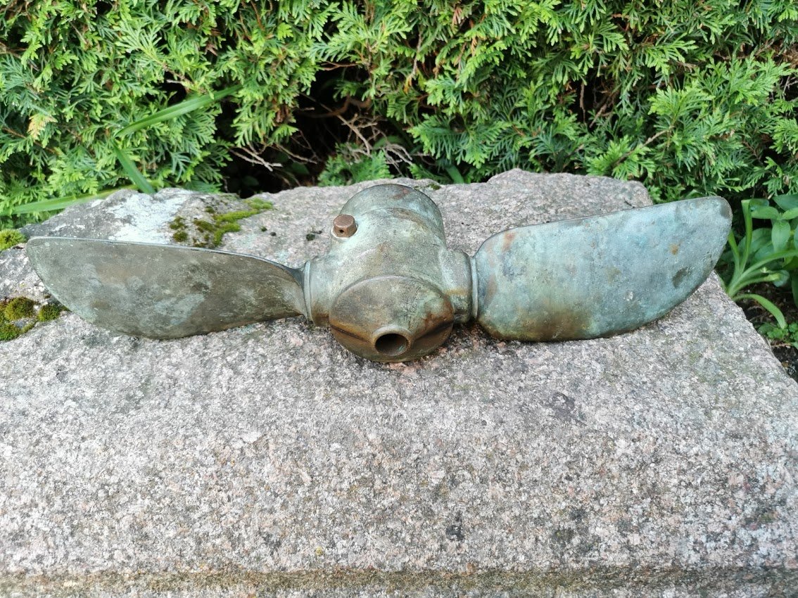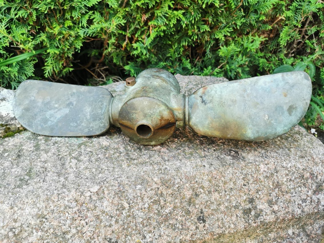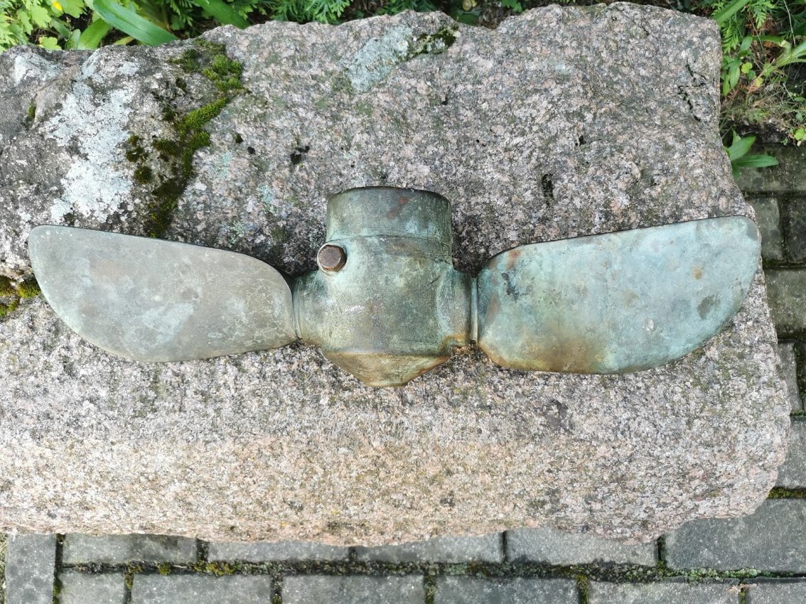Laivo (buksyro) sraigtas. Tarpukario Kaunas. Bronzinis, svoris 6,2 kg. Ilgis 51 cm. Sukiojami sparnai. Kaina 187