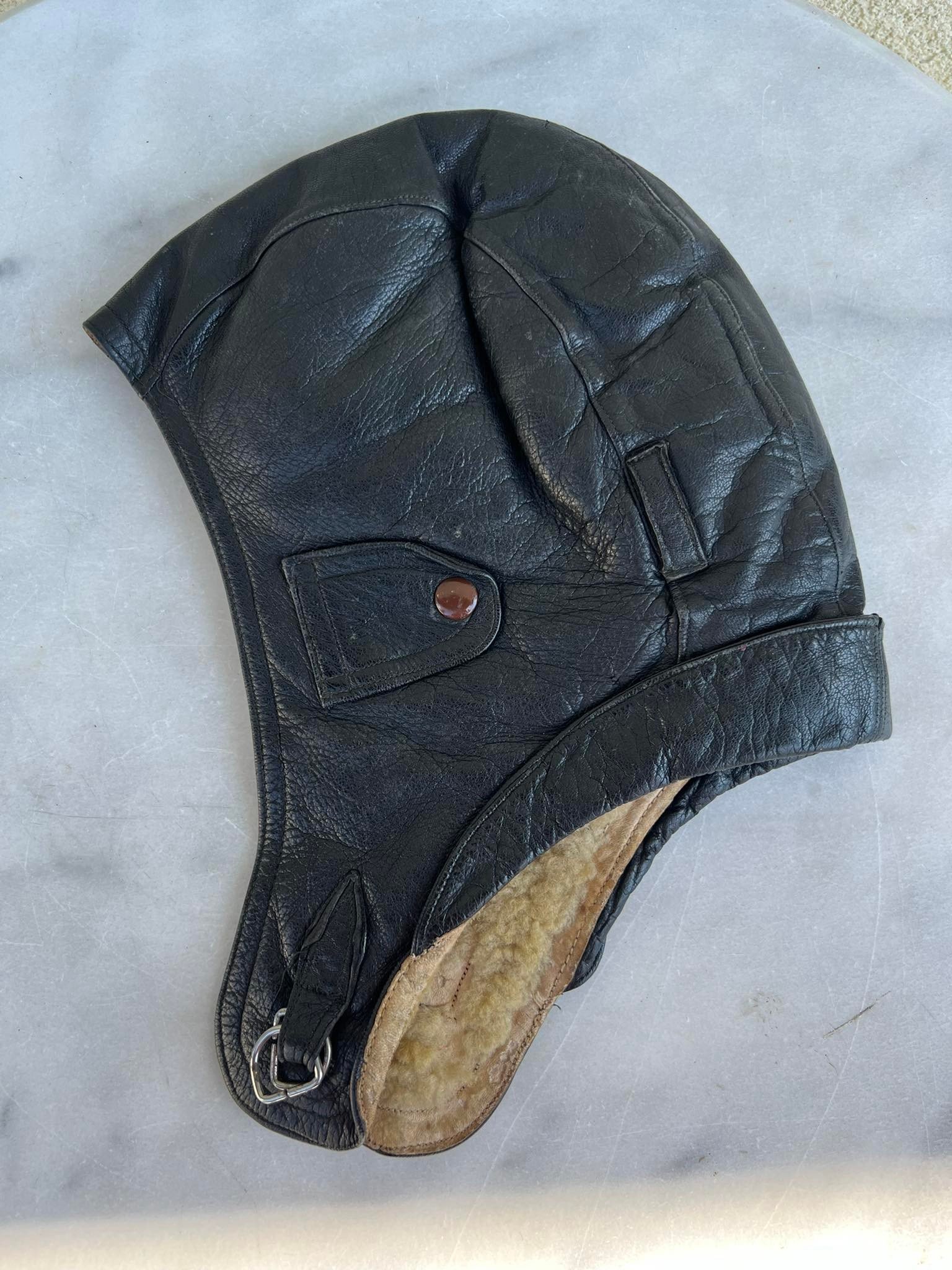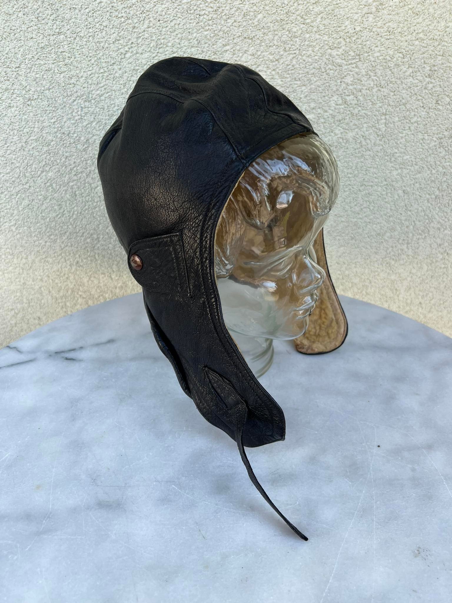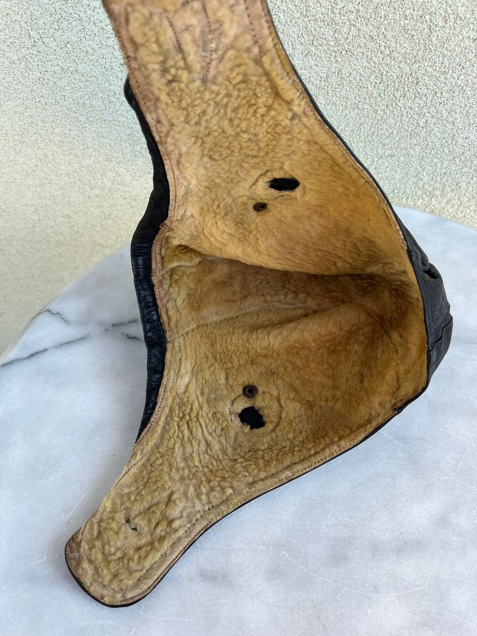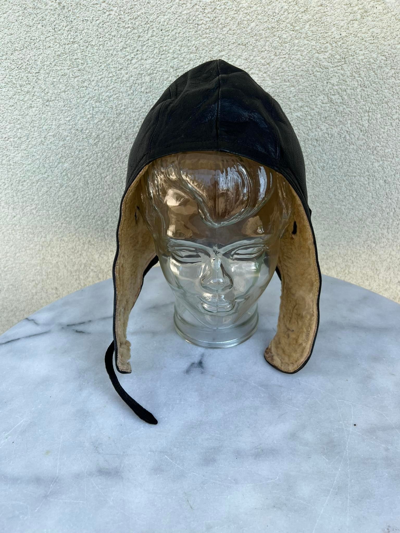 Lakūno, piloto, motociklisto, motociklininko odinė su kailiu, žieminė, originali, antikvarinė, kepurė. Kaina 78