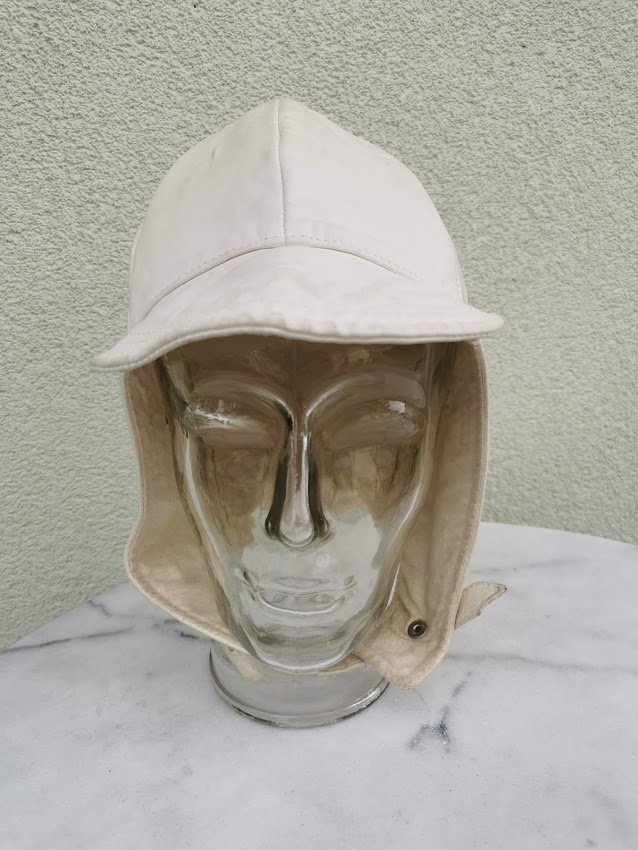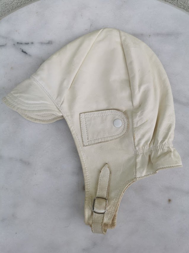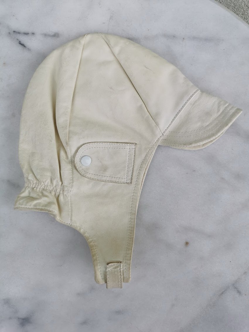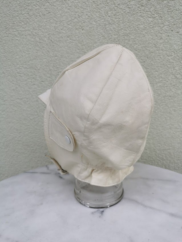 Lakūno, piloto, motociklisto, motociklininko, originali, odinė, baltos spalvos kepurė. Kaina 63