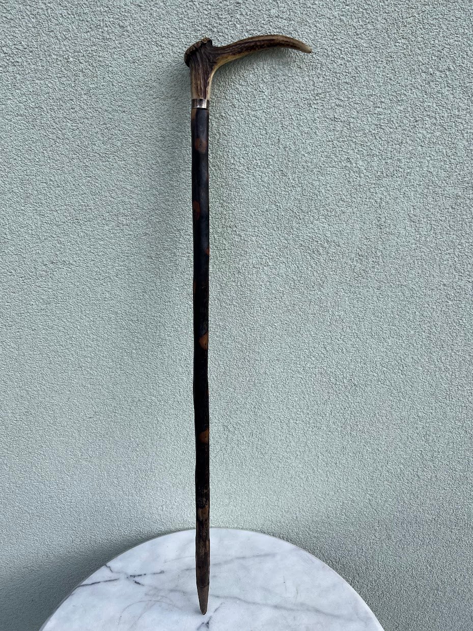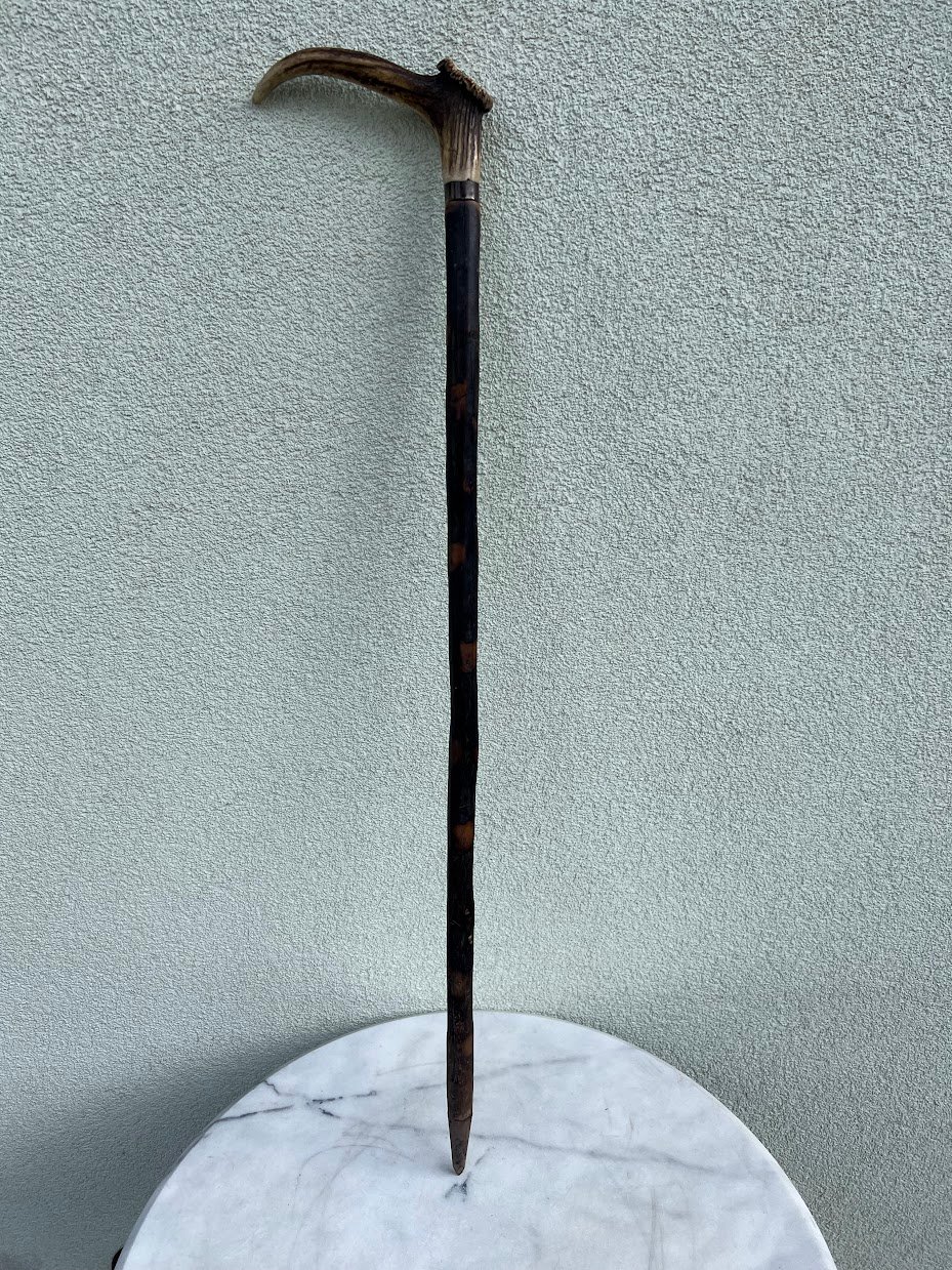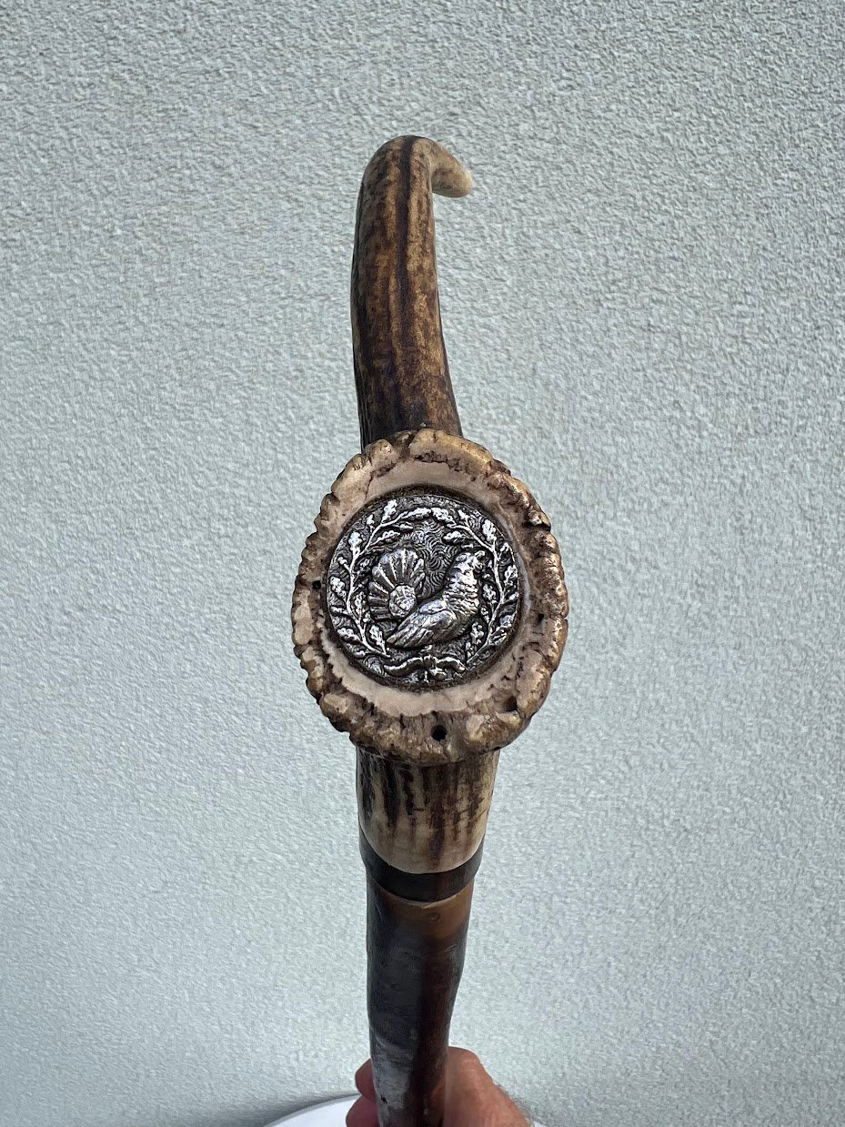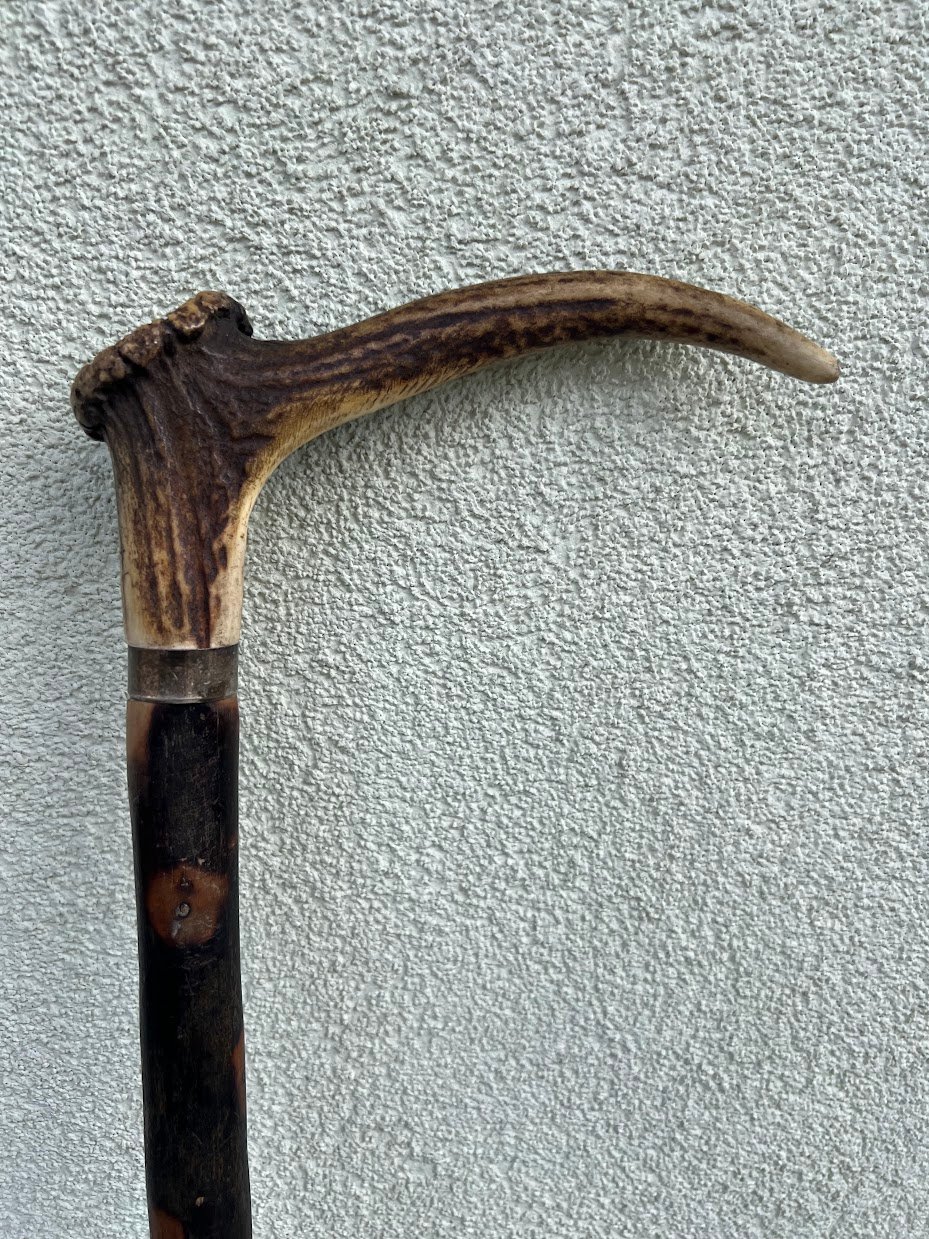 Lazda, lazdelė antikvarinė, rankena pagaminta iš rago, tvirta, medžioklės tema. Tinkama naudojimui. Kaina 108