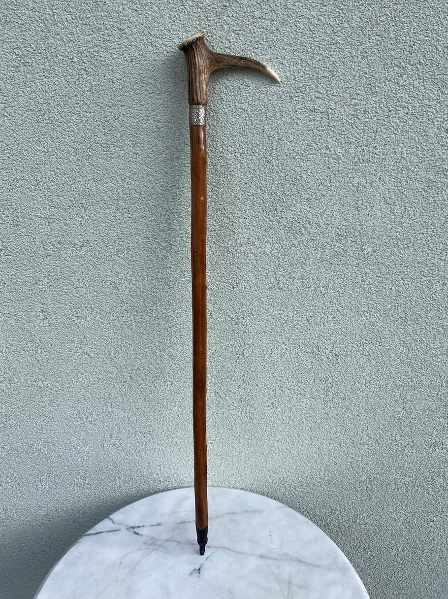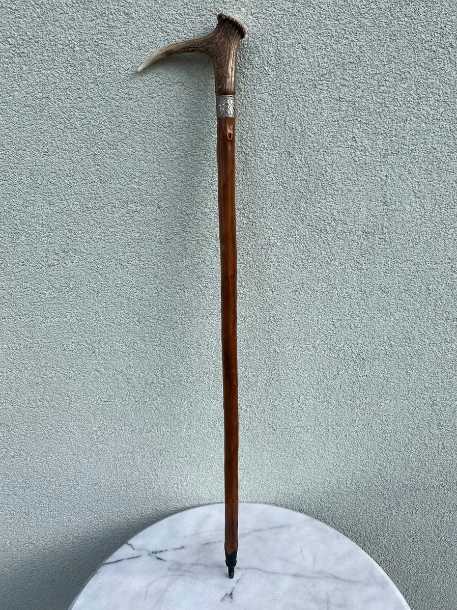 Lazda, lazdelė antikvarinė, rankena pagaminta iš rago, tvirta, medžioklės tema. Tinkama naudojimui. Kaina 88