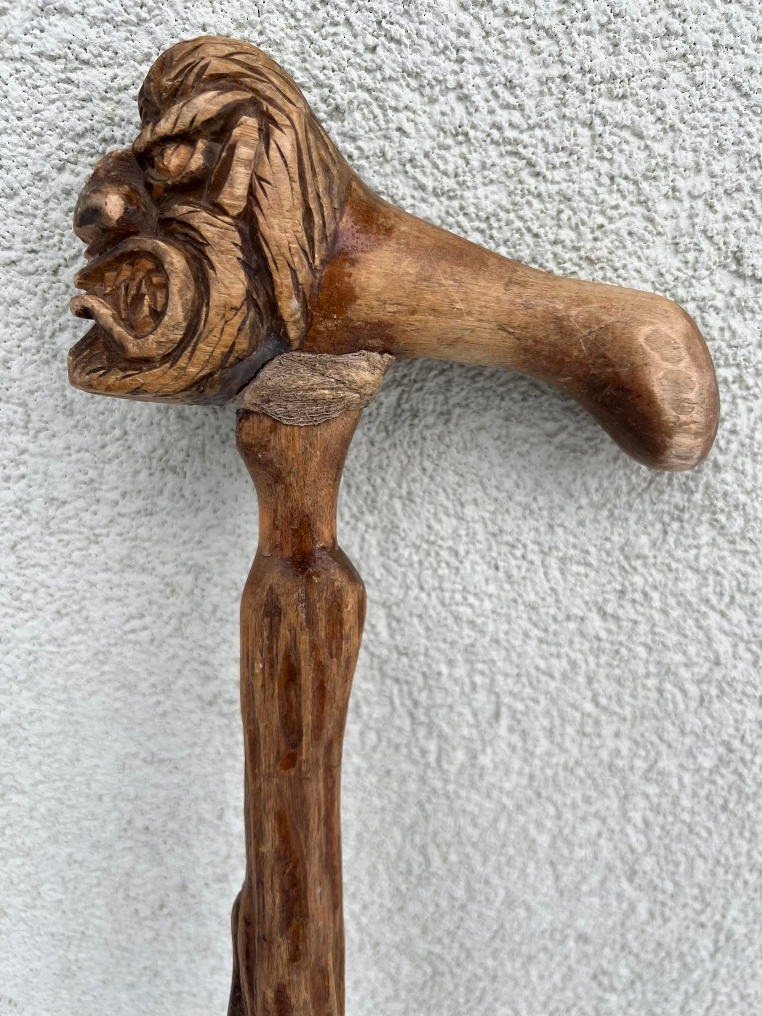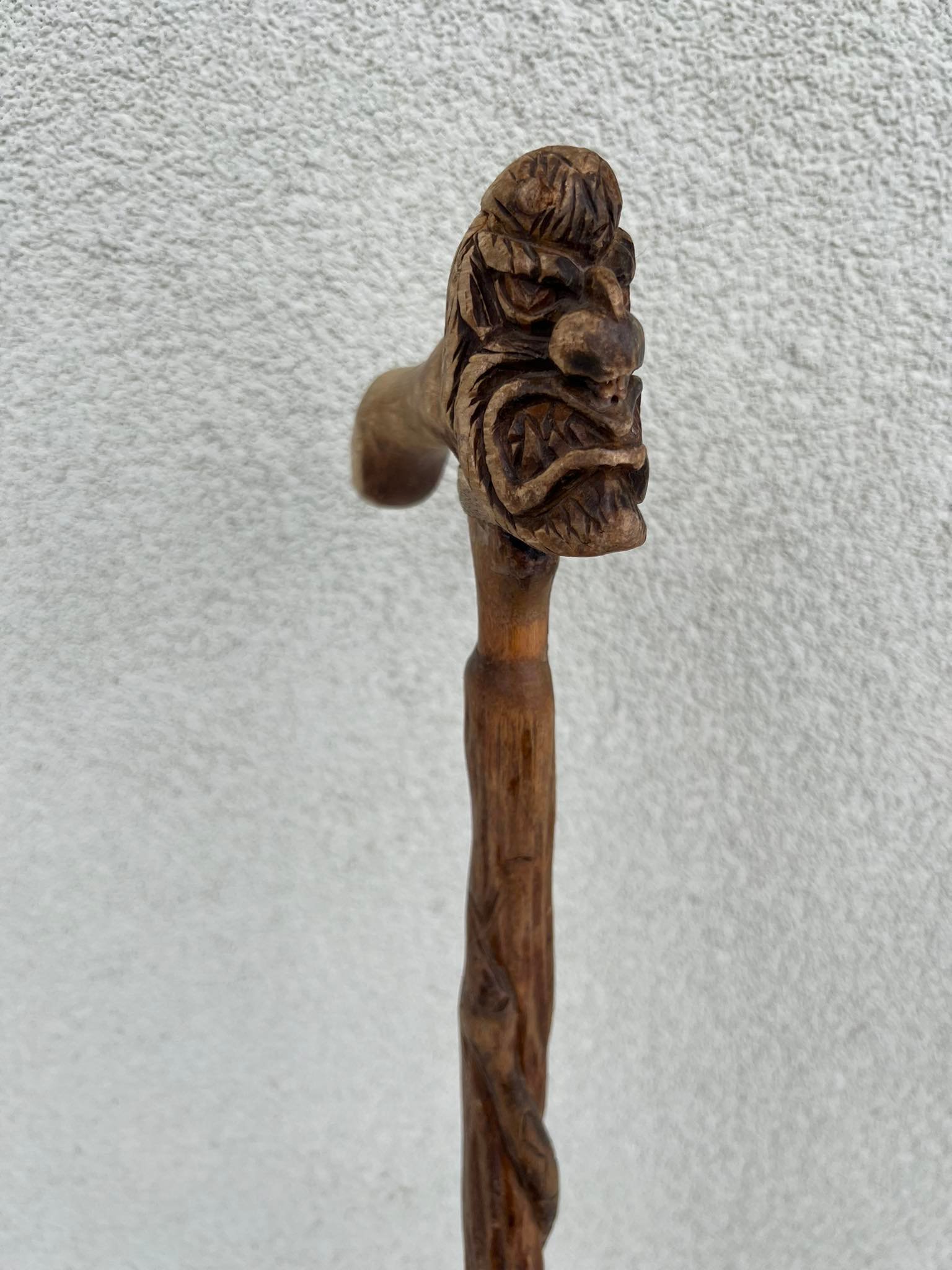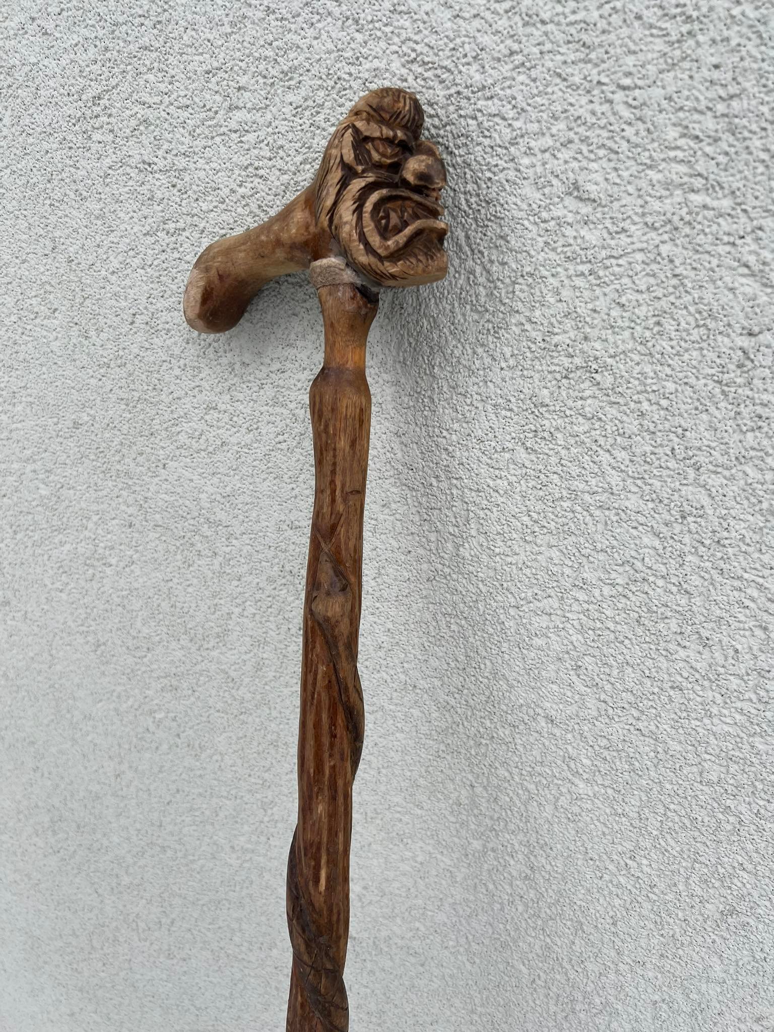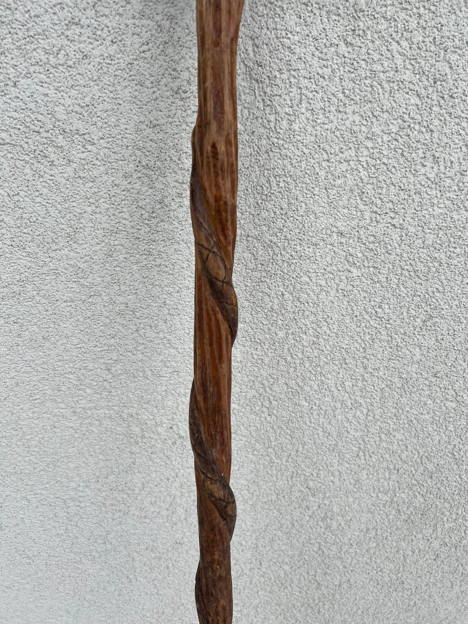 Lazda, lazdelė puošta drožinėtu velniu ir gyvate, lietuviška. Kaina 43