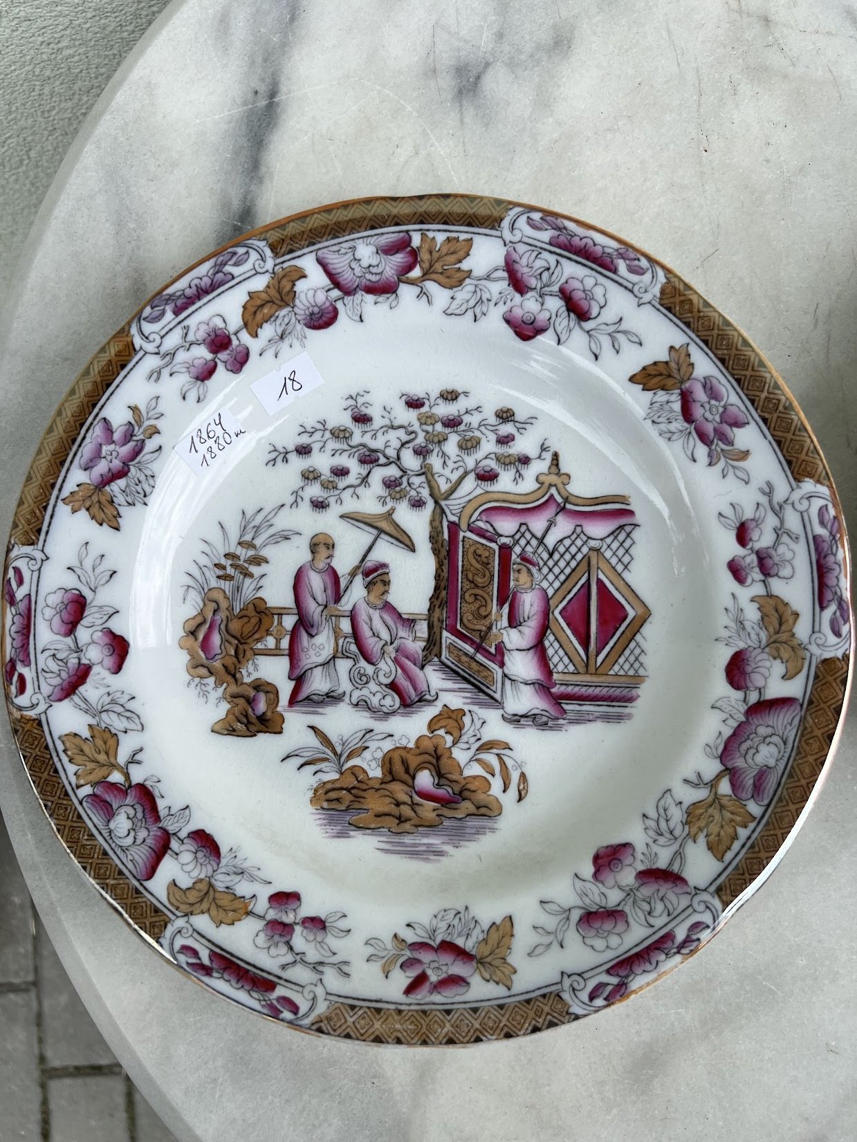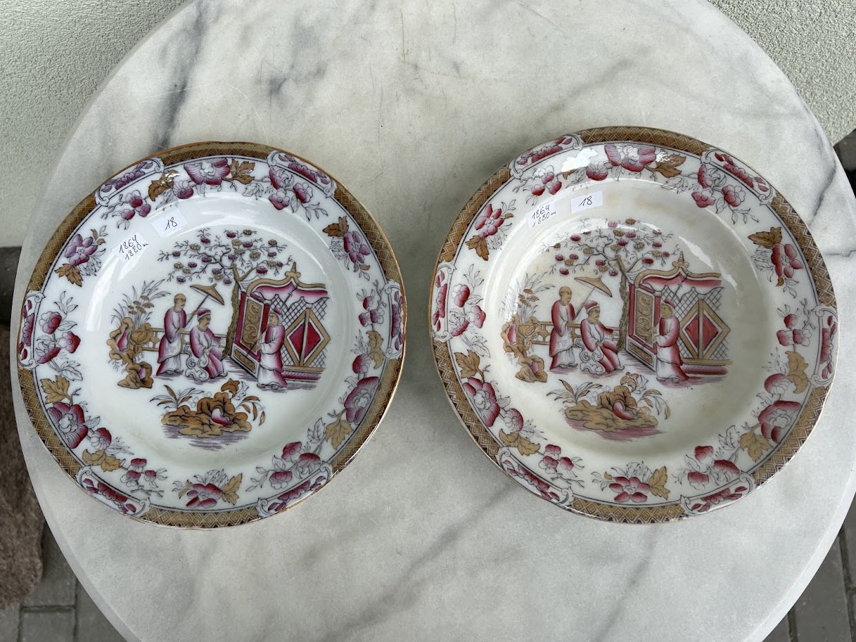 Lėkštė antikvarinė, gili, Celestial Ironstone China, Gustafsberg. 1864–1880 m. Kinijos motyvai. 2 vnt. Kaina po 18