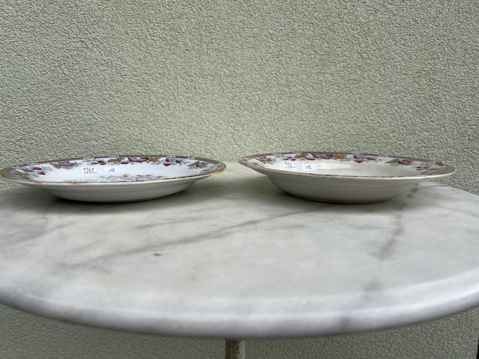 Lėkštė antikvarinė, gili, Celestial Ironstone China, Gustafsberg. 1864–1880 m. 2 vnt. Kinijos motyvai. Skersmuo 25, aukštis 3,5 cm. Kaina po 18
