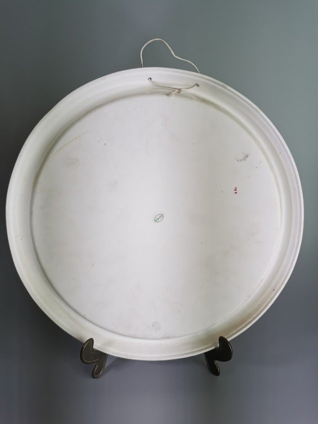 Lėkštė-bareljefas Kaunas, pakabinama, porcelianinė. Pagaminta Kauno Jiesia. Skersmuo 28 cm. Kaina 53