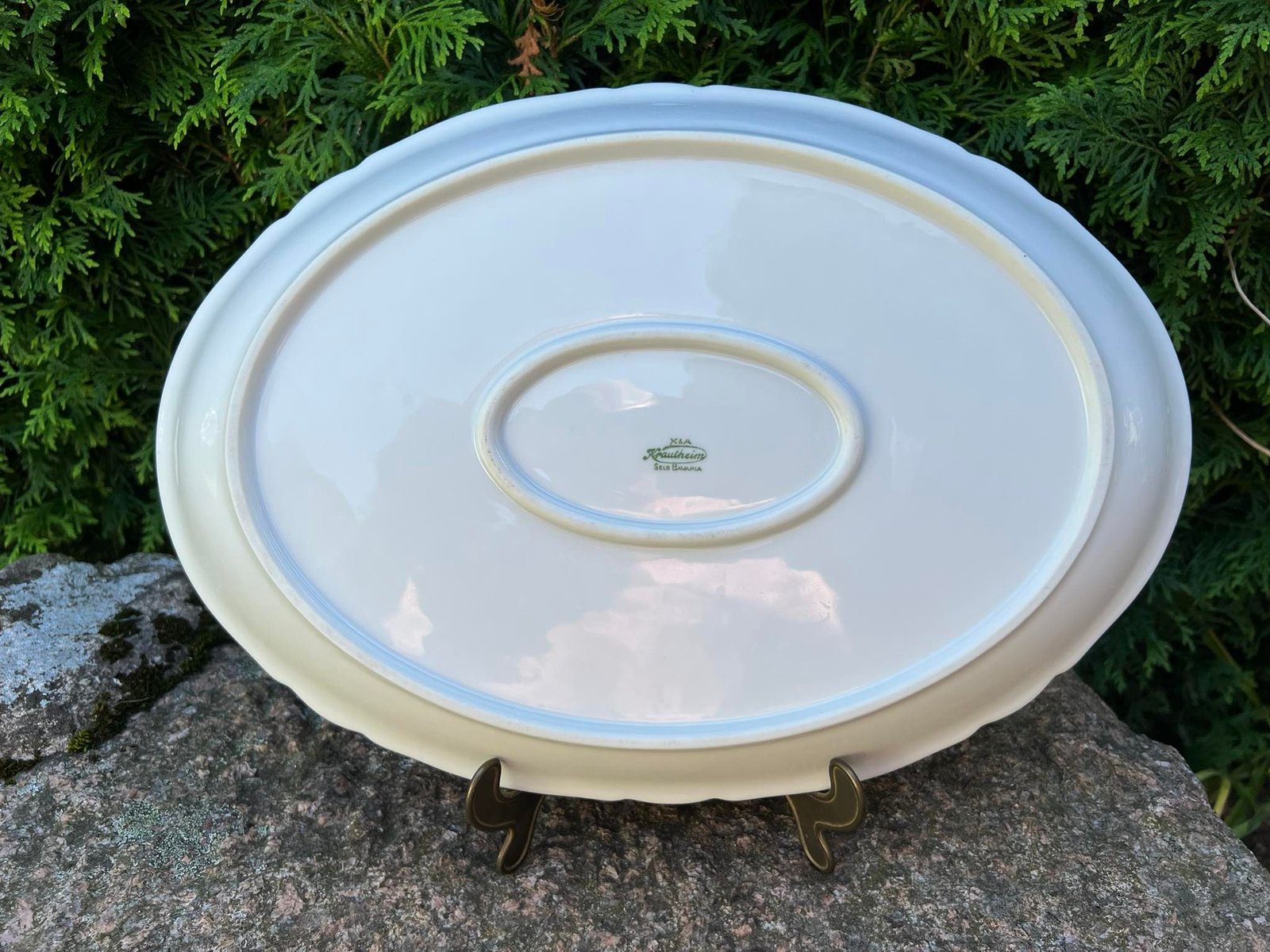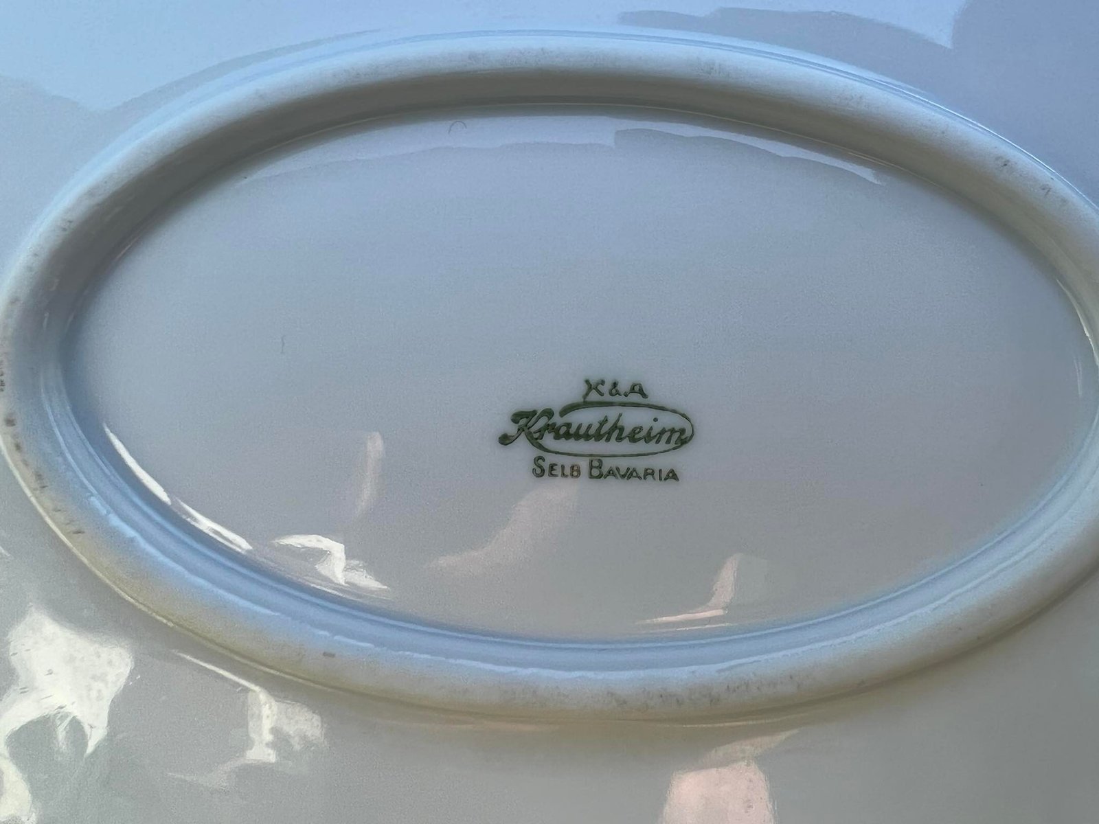 Lėkštė didelė ovali antikvarinė Krautheim Selb-Bavaria. Vokietija. Ilgis 37, plotis 26, aukštis 4 cm. Kaina 22