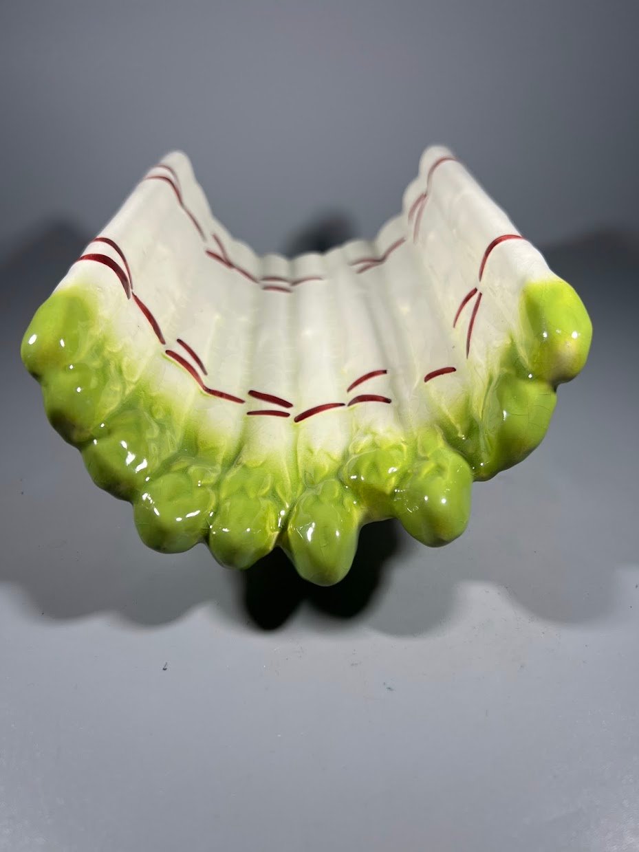 Lėkštė, indas, padėklas šparagų serviravimui, majolika, antikvarinė, prancūziška. Sarreguemines France. 1920 – 1950 m. Aukštis 7, ilgis 21, plotis 13 cm. Kaina 53