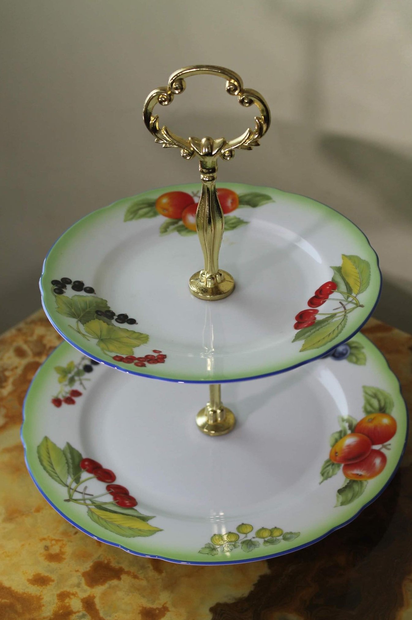 Lėkštė porcelianiė vaisiams, pyragaičiams, dviejų aukštų padėklas, antikvarinis. Kaina 32